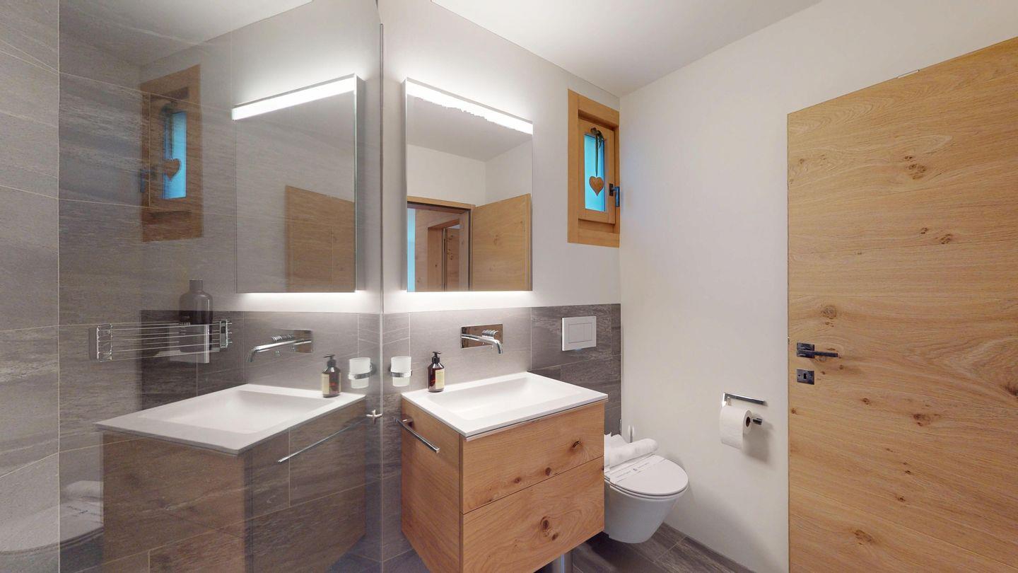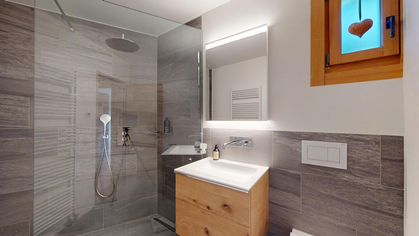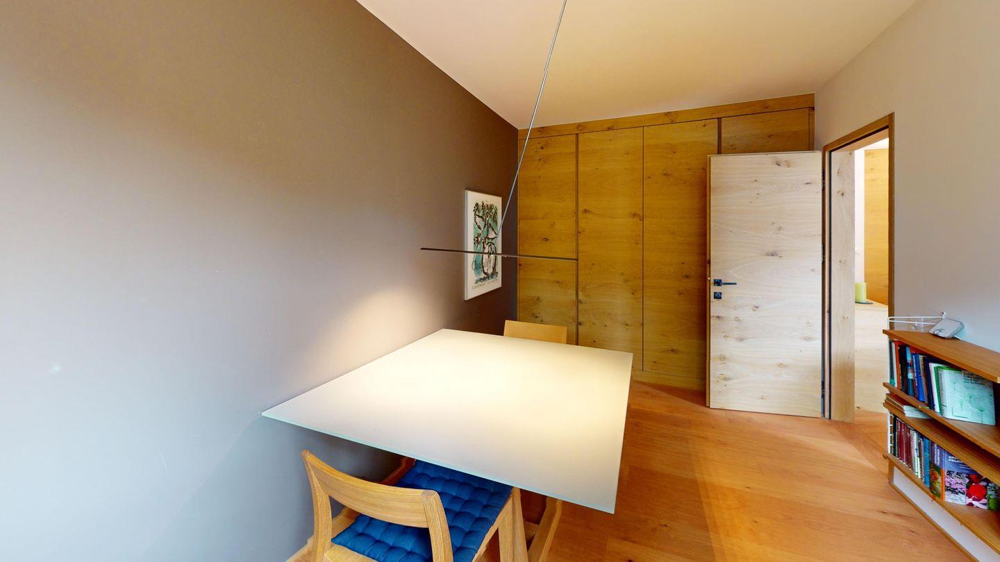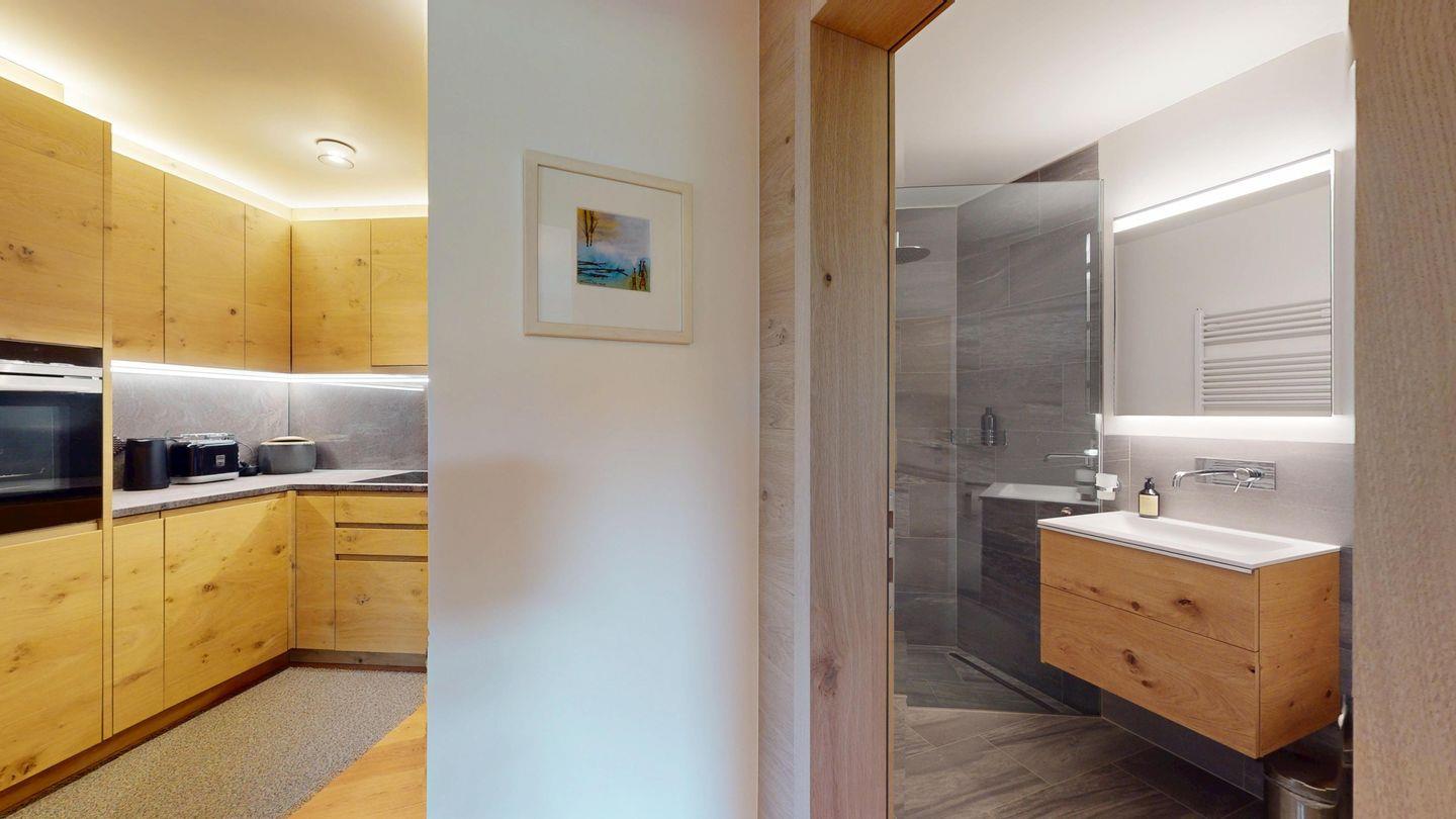 Gemütliche 3½-Zimmerwohnung im 1. Stock. Eingang mit Garderobe. Wohnzimmer mit Cheminée und grosse Terrasse mit Esstisch und Gasgrill. Internet und Fernseher. Schlafzimmer mit Doppelbett (160cm breit). Offene Küche mit Herd, Ofen, Geschirrspüler, Kühlschrank und Chicco d'Oro Kaffeemaschine. Geschlossenes Büro mit Schreibtisch. Badezimmer mit Dusche, WC, Lavabo. Parkplatz in einer Einzelbox. Gemeinschaftliche Waschküche und Skiraum mit zwei Schlitten. Nichtraucherwohnung. Haustiere sind nicht erlaubt.