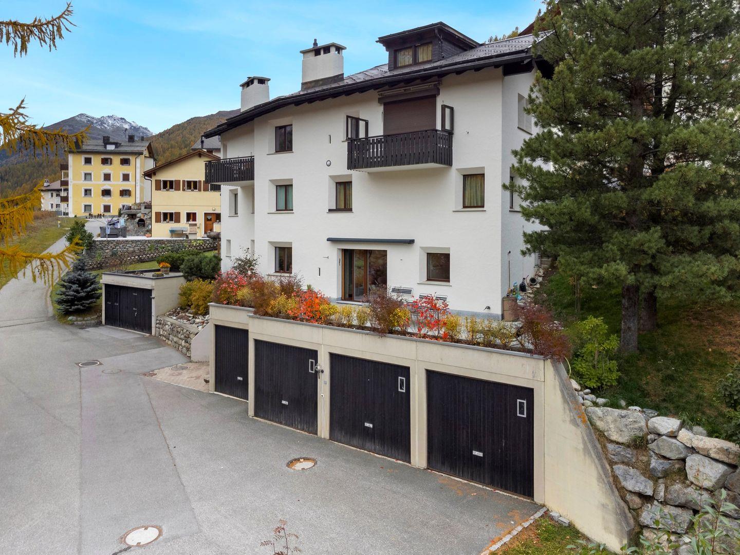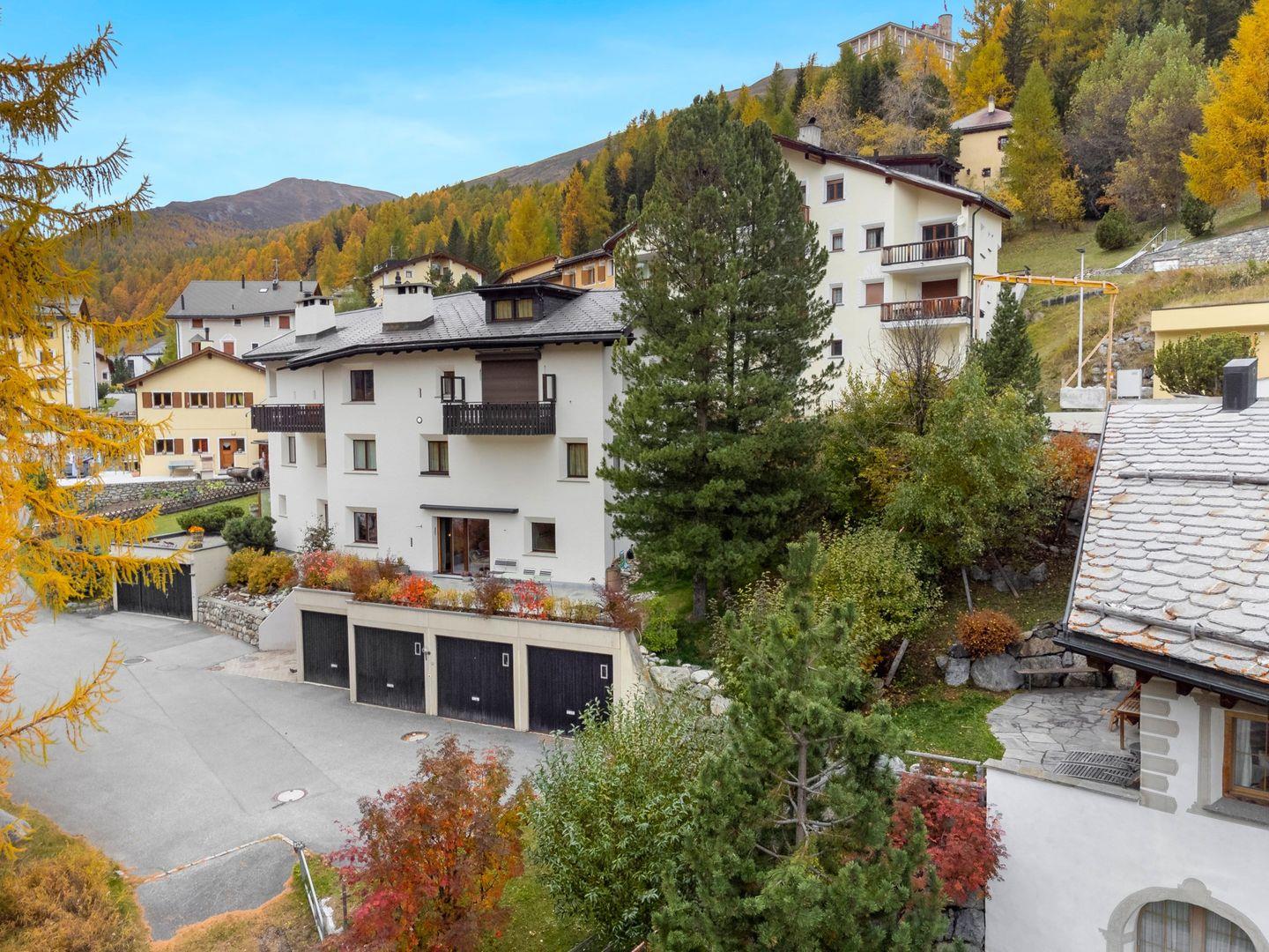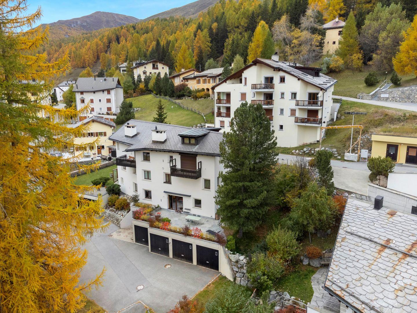 Die Chesa Traval liegt an sonniger, ruhiger Lage, an der Skipiste, mit Blick auf Berge und das Oberengadin. Das Hotel Castell liegt oberhalb des Ferienhauses. Es gibt wunderbare Spazierwege und Restaurants sowie Einkaufsmöglichkeiten, die zu Fuss in ca. 10 Minuten erreichbar sind. In der Wintersaison fährt ein Dorfbus zum Bahnhof und zur Langlaufloipe.