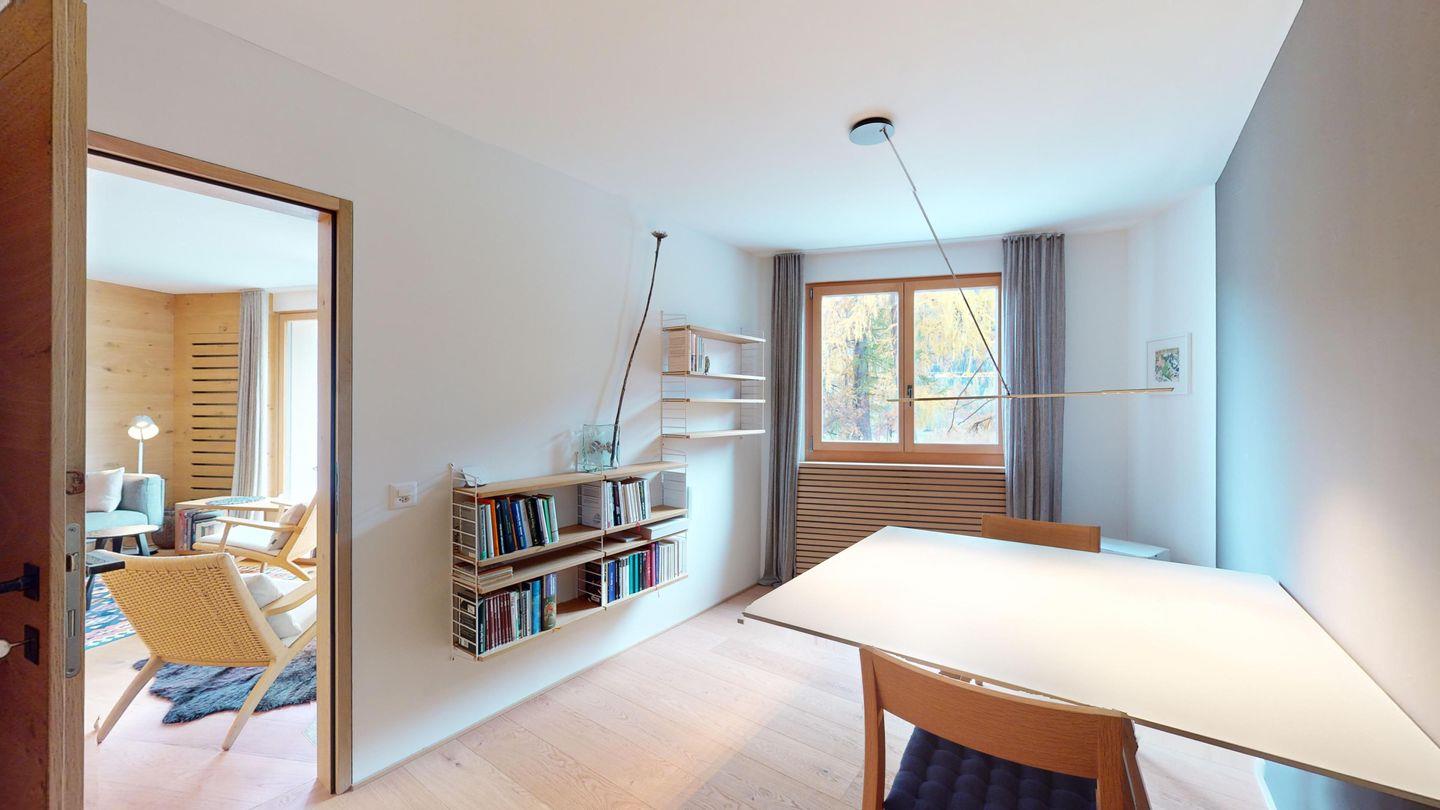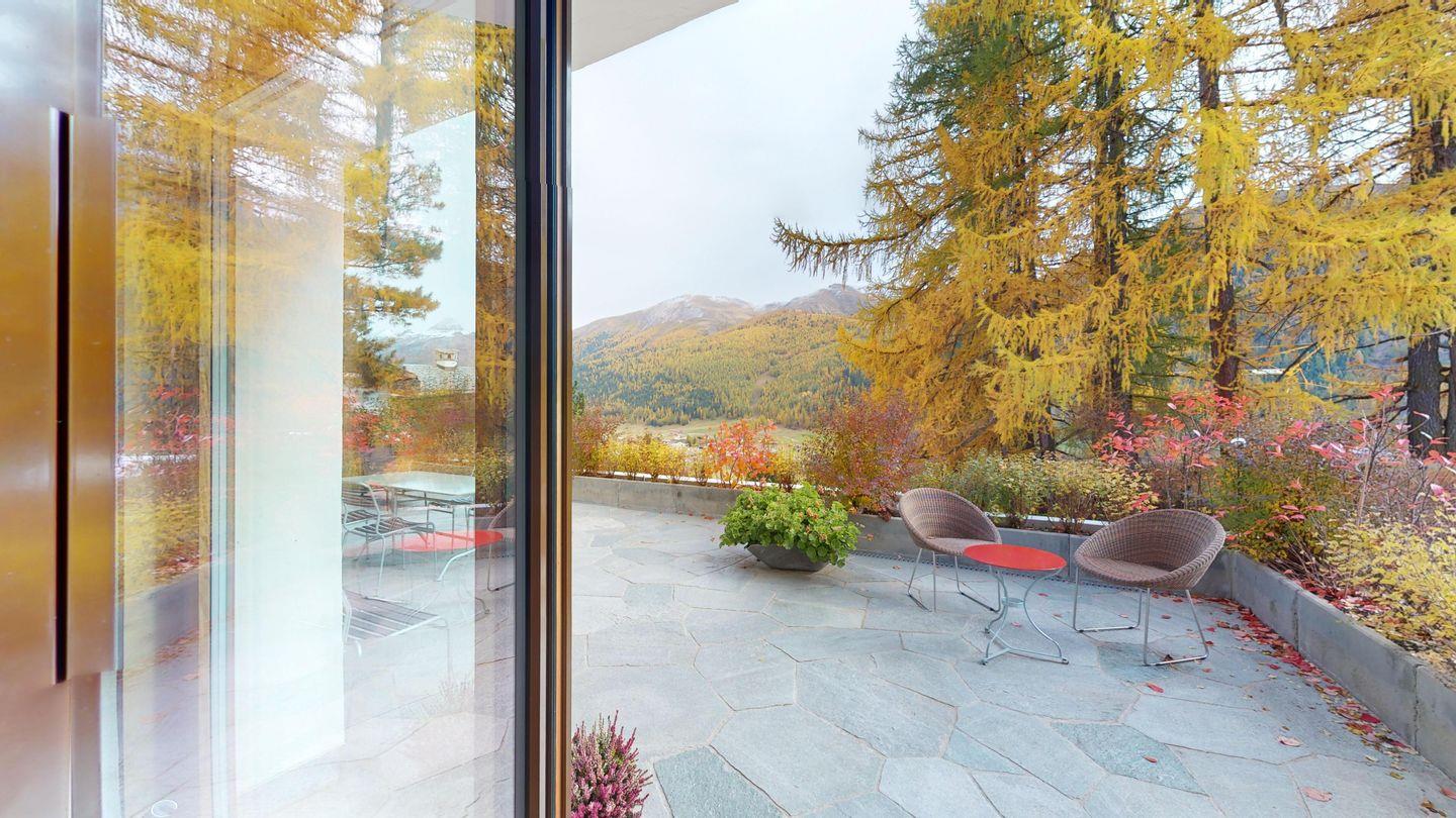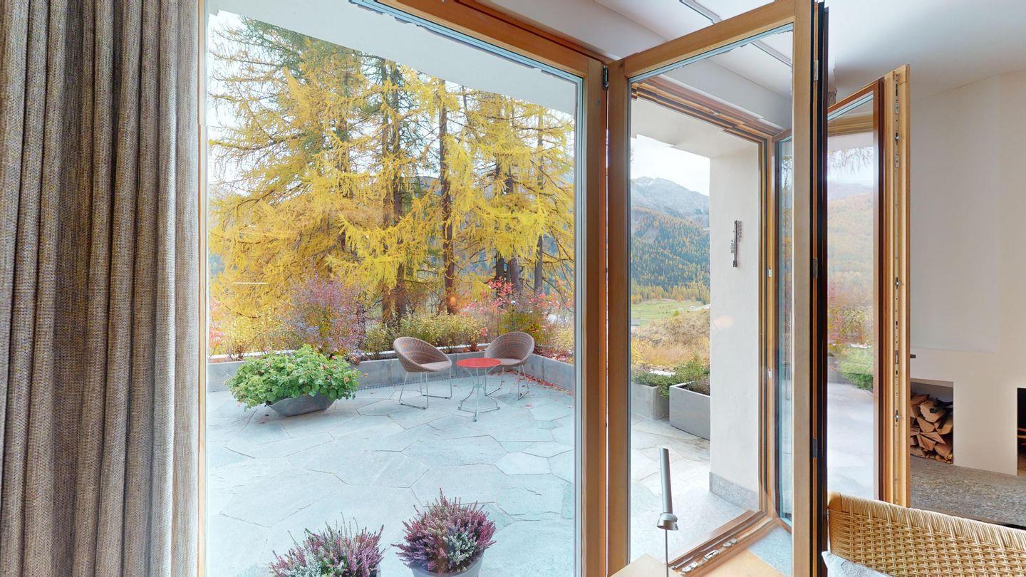 Die Chesa Traval liegt an sonniger, ruhiger Lage, an der Skipiste, mit Blick auf Berge und das Oberengadin. Das Hotel Castell liegt oberhalb des Ferienhauses. Es gibt wunderbare Spazierwege und Restaurants sowie Einkaufsmöglichkeiten, die zu Fuss in ca. 10 Minuten erreichbar sind. In der Wintersaison fährt ein Dorfbus zum Bahnhof und zur Langlaufloipe.