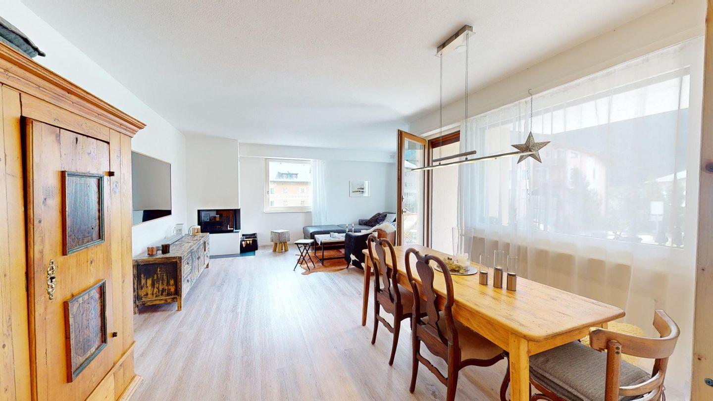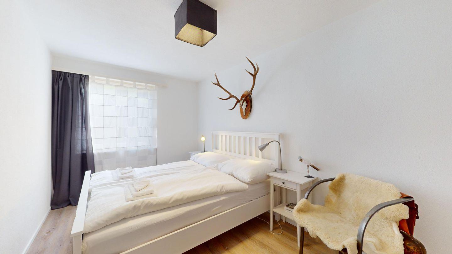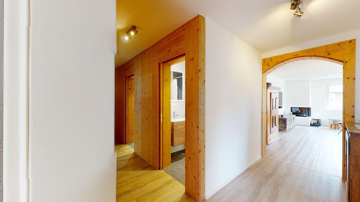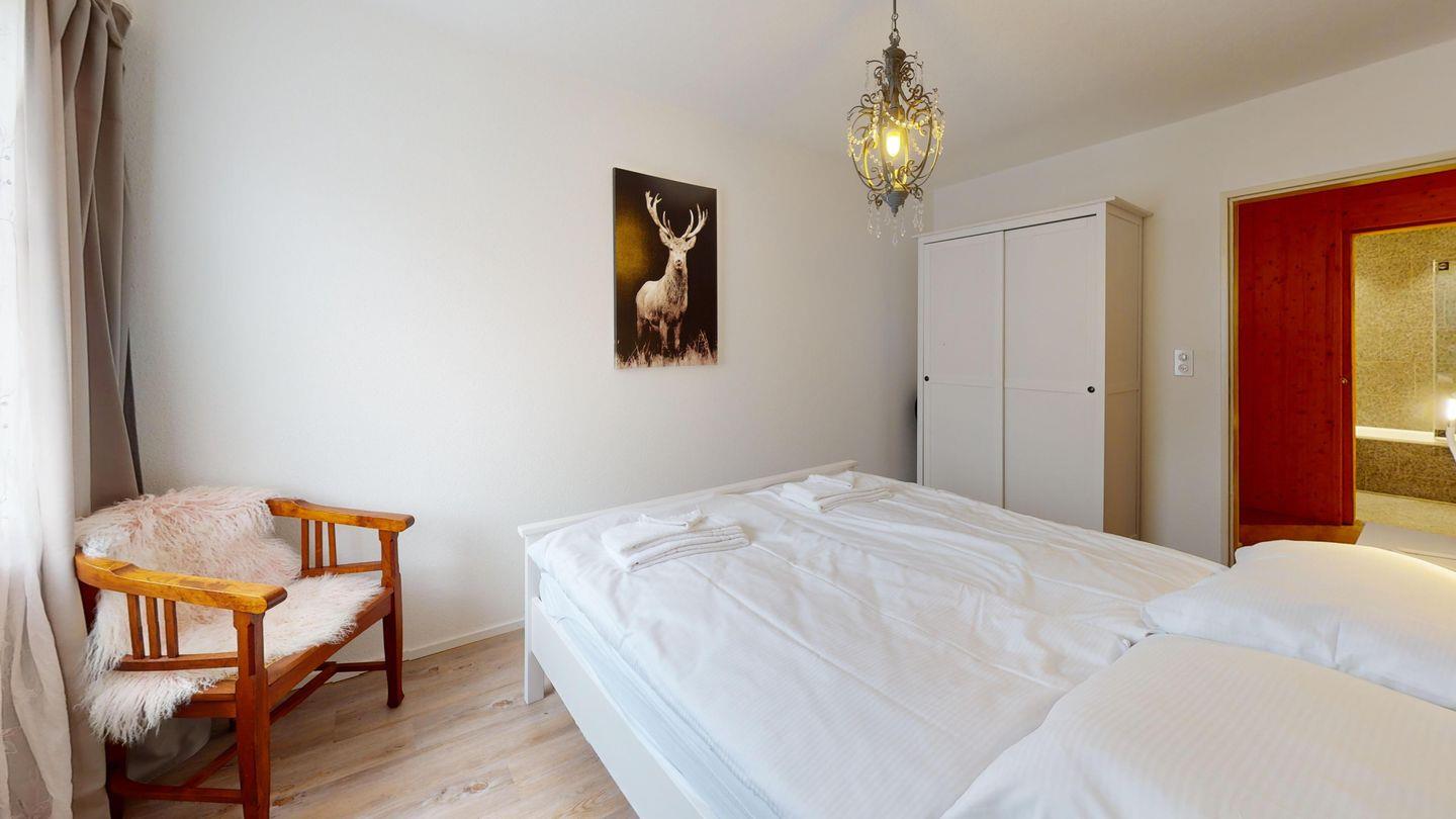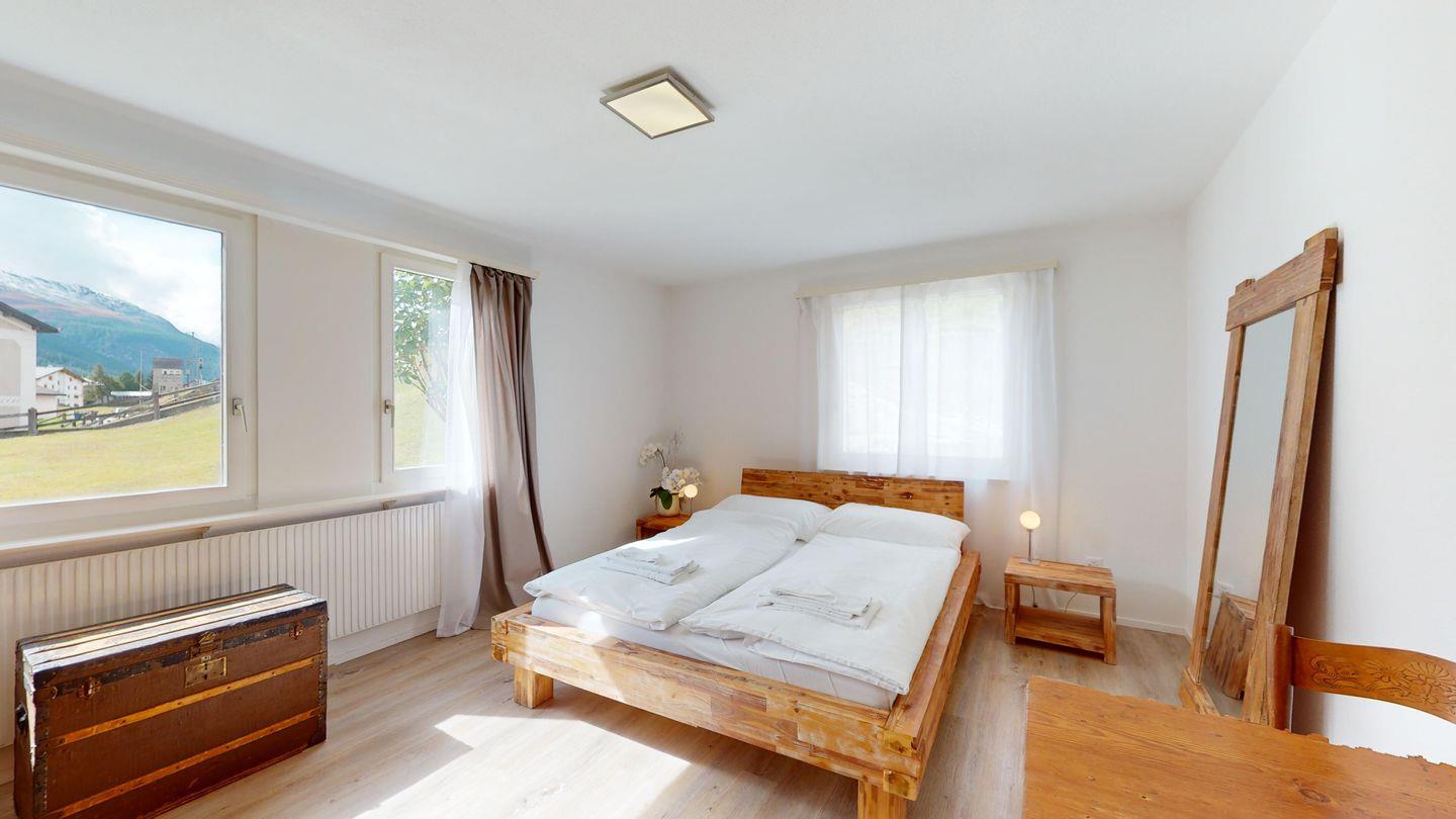 5-Zimmerwohnung im Erdgeschoss. Wohn-/Esszimmer mit Cheminee und direktem Ausgang in den Garten. TV, Internet. Geschlossene Küche mit Backofen, Kühlschrank, Geschirrspüler, Kaffeemaschine Chicco d'Oro, Racletteofen, Fondue-Set. Drei Doppelzimmer und ein Schlafzimmer mit 2 Einzelbetten. Ein Badezimmer mit Dusche/WC/Lavabo. Ein Badezimmer mit Badewanne/WC/Lavabo. Neue, komfortable Einrichtung. Waschküche und Skiraum zur gemeinsamen Benützung im Haus. Reservierter Garagenplatz. Haustiere sind nicht erlaubt.