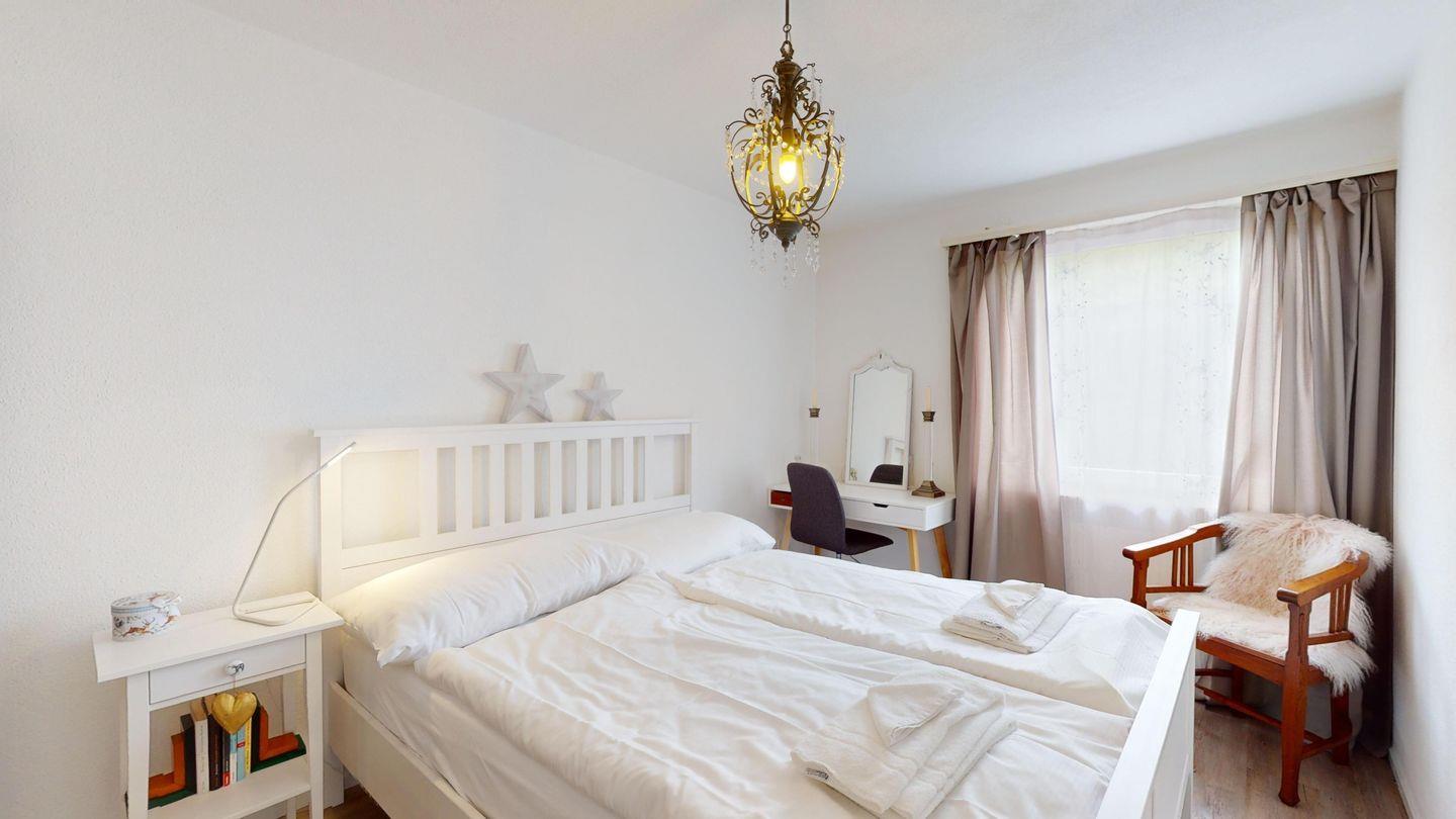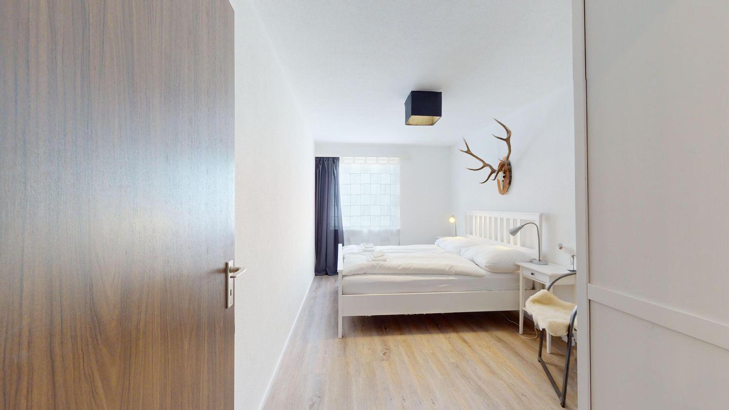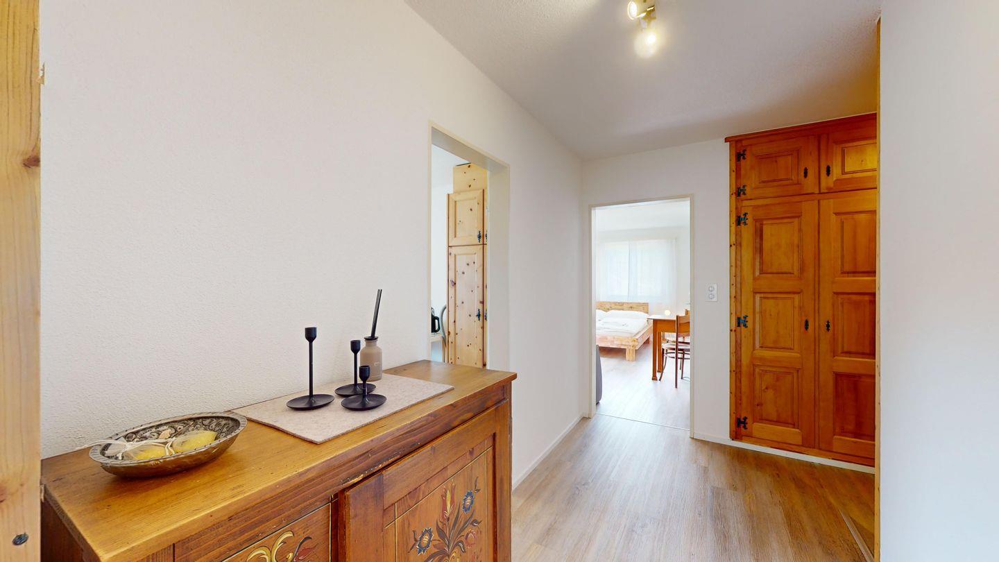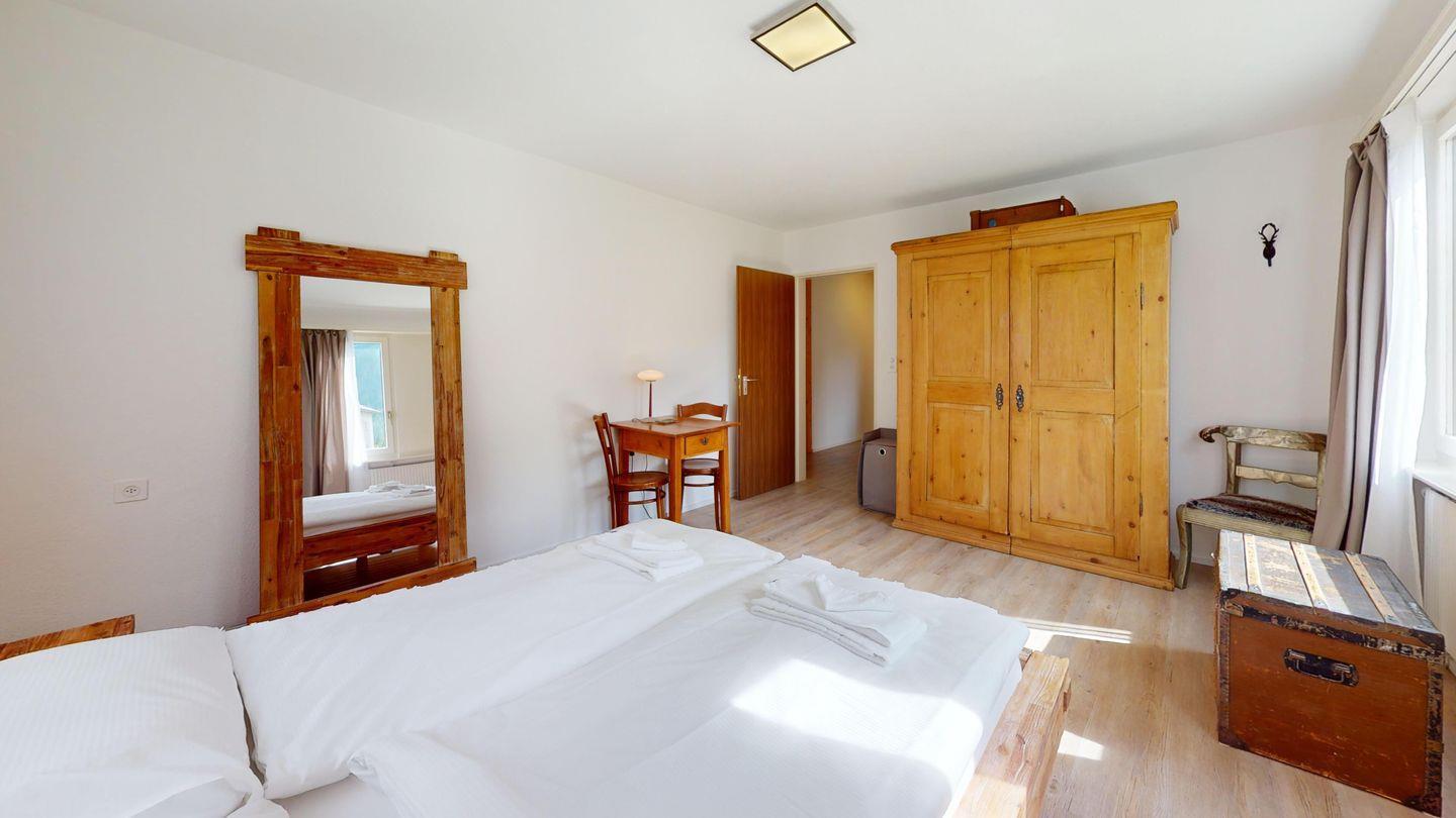 5-Zimmerwohnung im Erdgeschoss. Wohn-/Esszimmer mit Cheminee und direktem Ausgang in den Garten. TV, Internet. Geschlossene Küche mit Backofen, Kühlschrank, Geschirrspüler, Kaffeemaschine Chicco d'Oro, Racletteofen, Fondue-Set. Drei Doppelzimmer und ein Schlafzimmer mit 2 Einzelbetten. Ein Badezimmer mit Dusche/WC/Lavabo. Ein Badezimmer mit Badewanne/WC/Lavabo. Neue, komfortable Einrichtung. Waschküche und Skiraum zur gemeinsamen Benützung im Haus. Reservierter Garagenplatz. Haustiere sind nicht erlaubt.