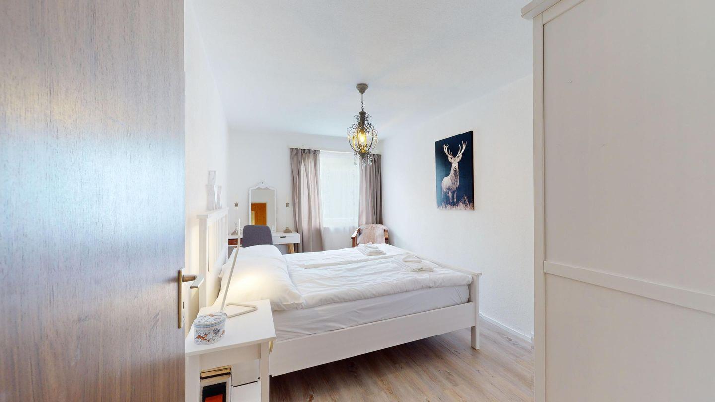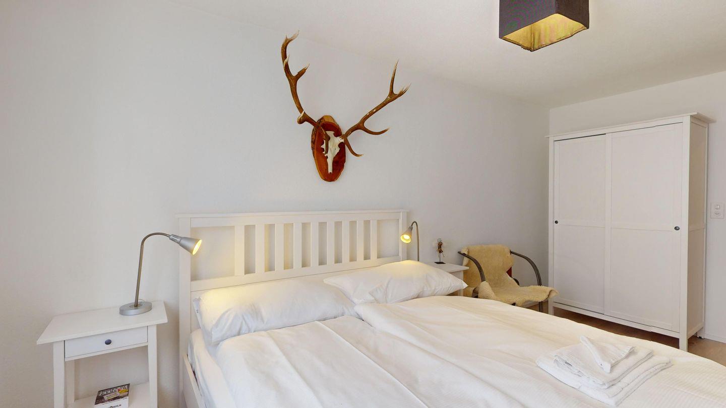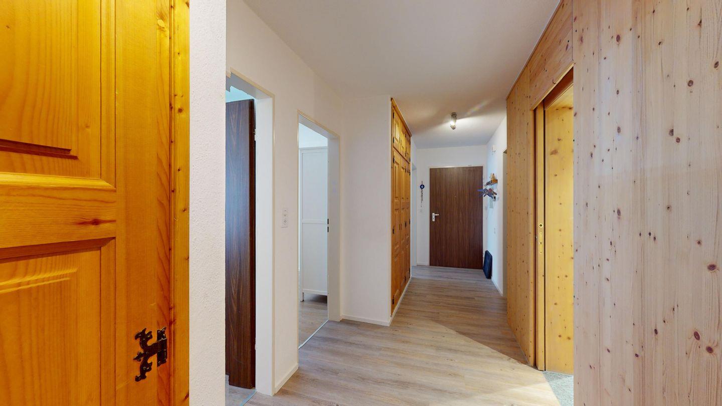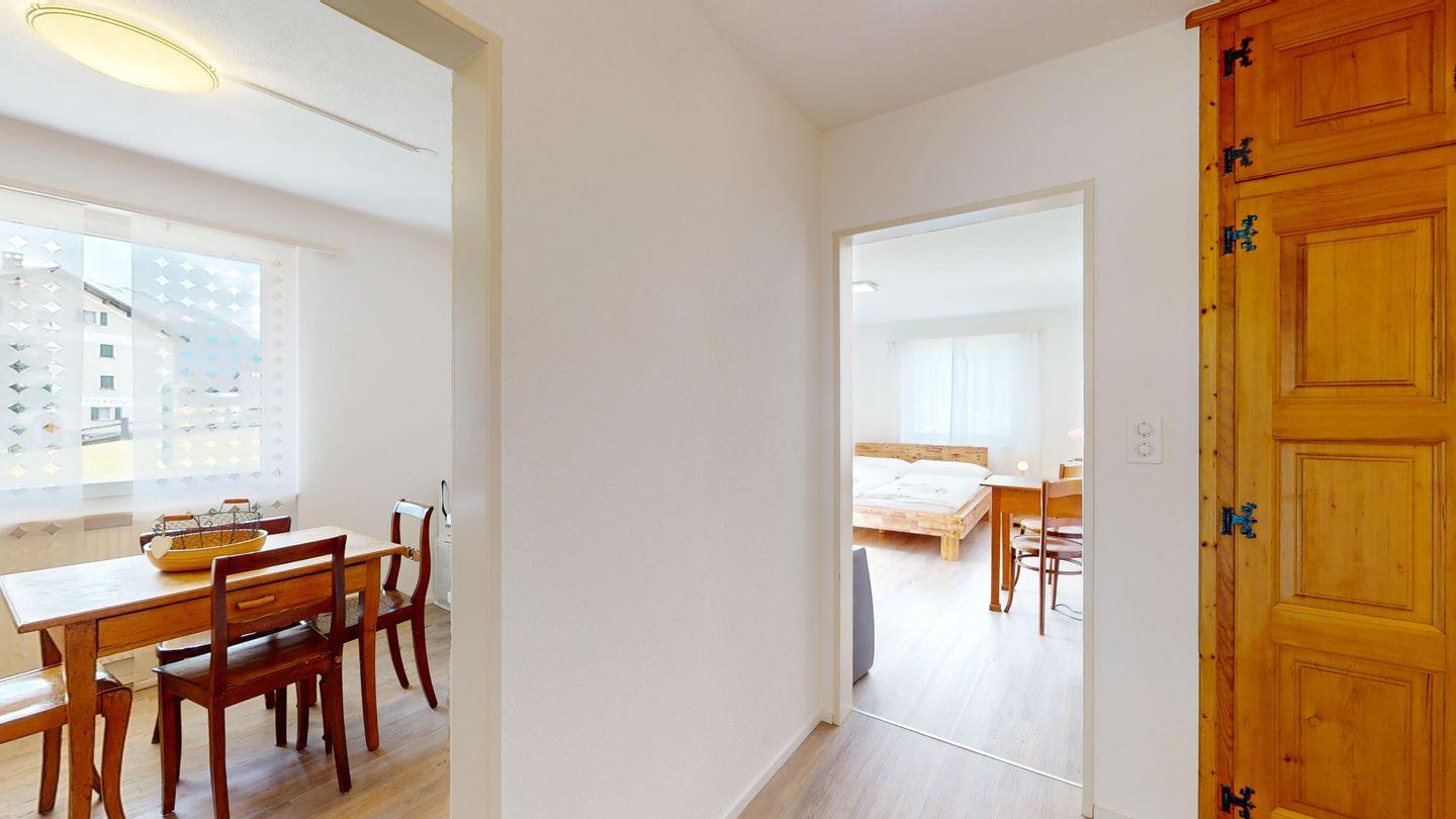 5-Zimmerwohnung im Erdgeschoss. Wohn-/Esszimmer mit Cheminee und direktem Ausgang in den Garten. TV, Internet. Geschlossene Küche mit Backofen, Kühlschrank, Geschirrspüler, Kaffeemaschine Chicco d'Oro, Racletteofen, Fondue-Set. Drei Doppelzimmer und ein Schlafzimmer mit 2 Einzelbetten. Ein Badezimmer mit Dusche/WC/Lavabo. Ein Badezimmer mit Badewanne/WC/Lavabo. Neue, komfortable Einrichtung. Waschküche und Skiraum zur gemeinsamen Benützung im Haus. Reservierter Garagenplatz. Haustiere sind nicht erlaubt.