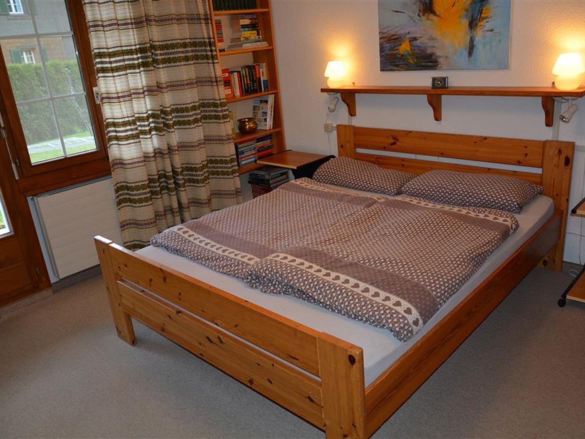 Bedroom with 1 double bed (180x200cm) and 2 cupboards. Bathroom with bathtub/shower, toilet, wash basin. Living room with table and 4 chairs, 2 sofas which convert into conventional beds (90x200cm) and (90x190cm), WiFi. Open-plan kitchen with stove (3 hot plates), oven, coffee machine, mixer and fondue-set.