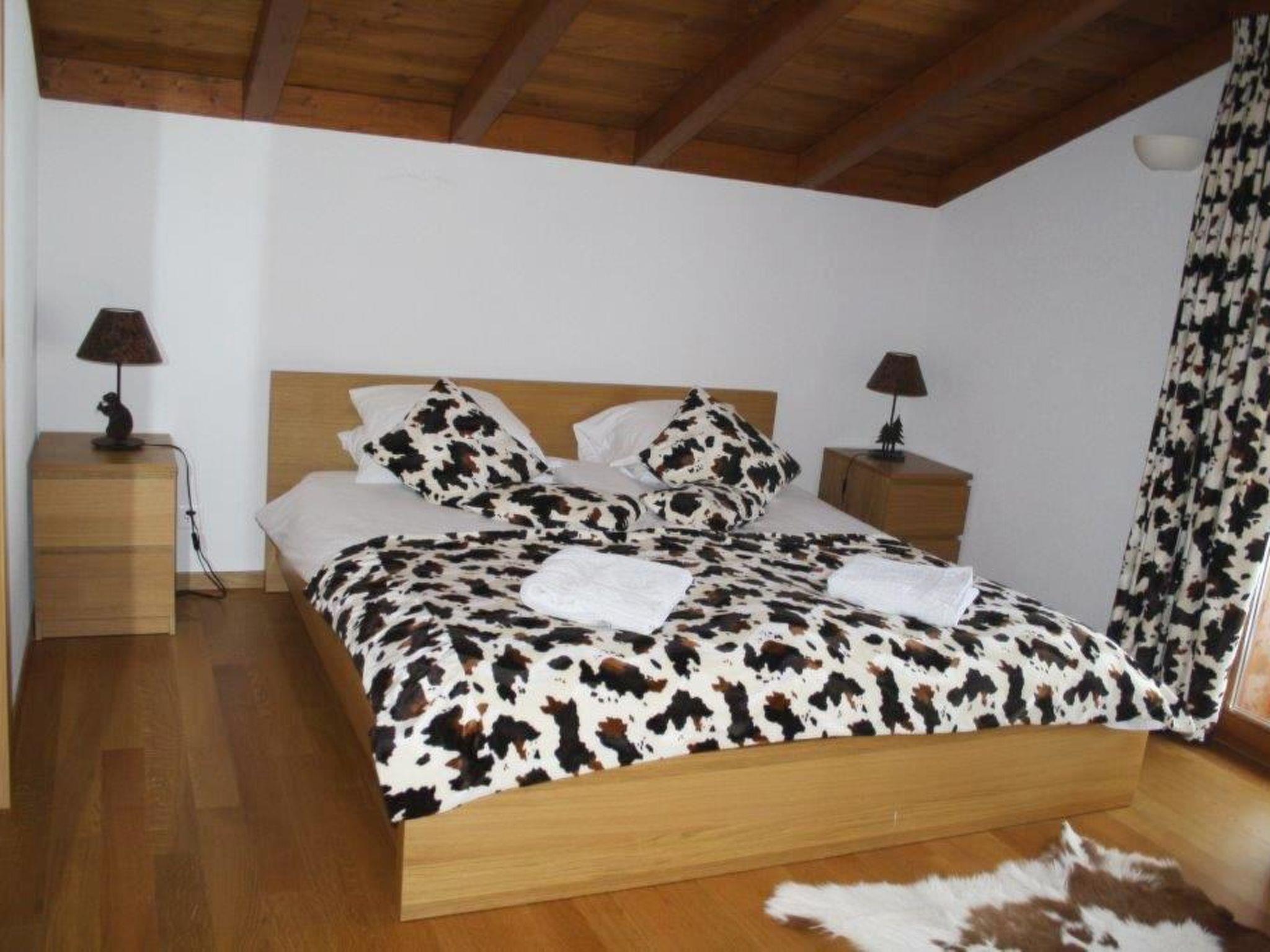 Chalet with 6 rooms (190sqm). Groundfloor: 1 bedroom with two single beds (2x90x200cm) and 1 double bed (2x90x200cm). Shower/toilet, sauna, store room, washing machine and tumble dryer. 1st floor: 1 bedroom with double bed (180x200cm) and shower/toilet. Living room with sofa, dining table, chimney and modern open-plan kitchen (among other things furnished with capsules coffee machine Nespresso, fondue set). Big balcony and terrace. 2nd floor: 1 bedroom with double bed (180x200cm) and shower/toilet. 2 bedrooms with double bed (180x200cm) and bathtub/toilet. Each room has a smoke detector. WiFi. Baby cot (80x120cm). Important note: At a lower occupancy not all bedrooms stay at your disposal. The following bedrooms will be locked: 7 to 8 persons: Ground floor: 1 bedroom with two single beds (2x90x200cm) and 1 double bed (2x90x200cm). Up to 6 persons: Ground floor: 1 bedroom with two single beds (2x90x200cm) and 1 double bed (2x90x200cm) and 1st floor: 1 bedroom with a double bed (180x200cm) and shower/toilet.