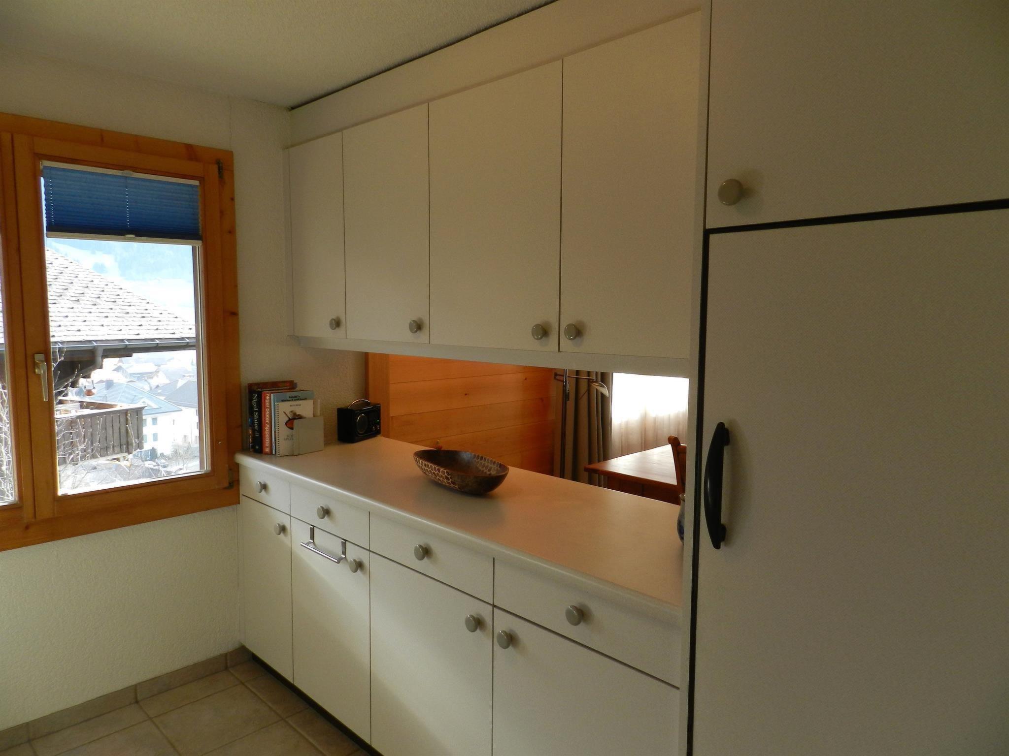 75 m2. More information by the provider: Cosy 3-room apartment (75sqm) on the 1st floor of a multi-family house built in 1987. The balcony offers you a nice view of the Rinderberg and is furnished with 2 chairs and 1 small table. 1 covered parking space is available. Through a staircase the village centre of Zweisimmen (shops, train station and cable car) is easily accessible within 5 minutes walking distance. Ideal starting point for hiking and skiing.