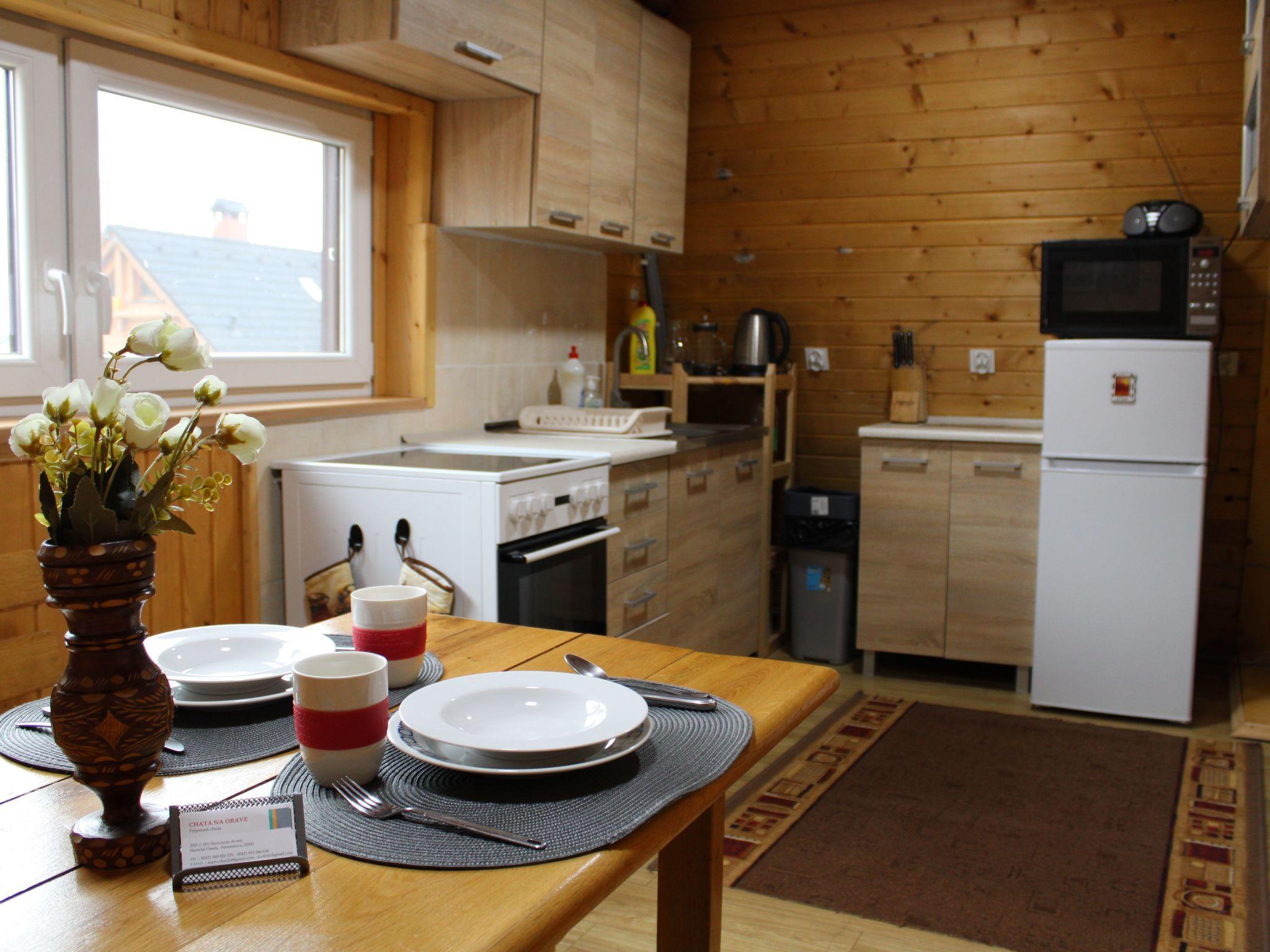 The chalet is situated in an idyllic location, just a few steps from the Orava reservoir, which offers a wide range of water sports. The surrounding landscape of forests, meadows and mountains invites you to hike, explore and linger. The proximity to Námestovo makes it possible to go on cultural and culinary excursions in the region and explore local life.