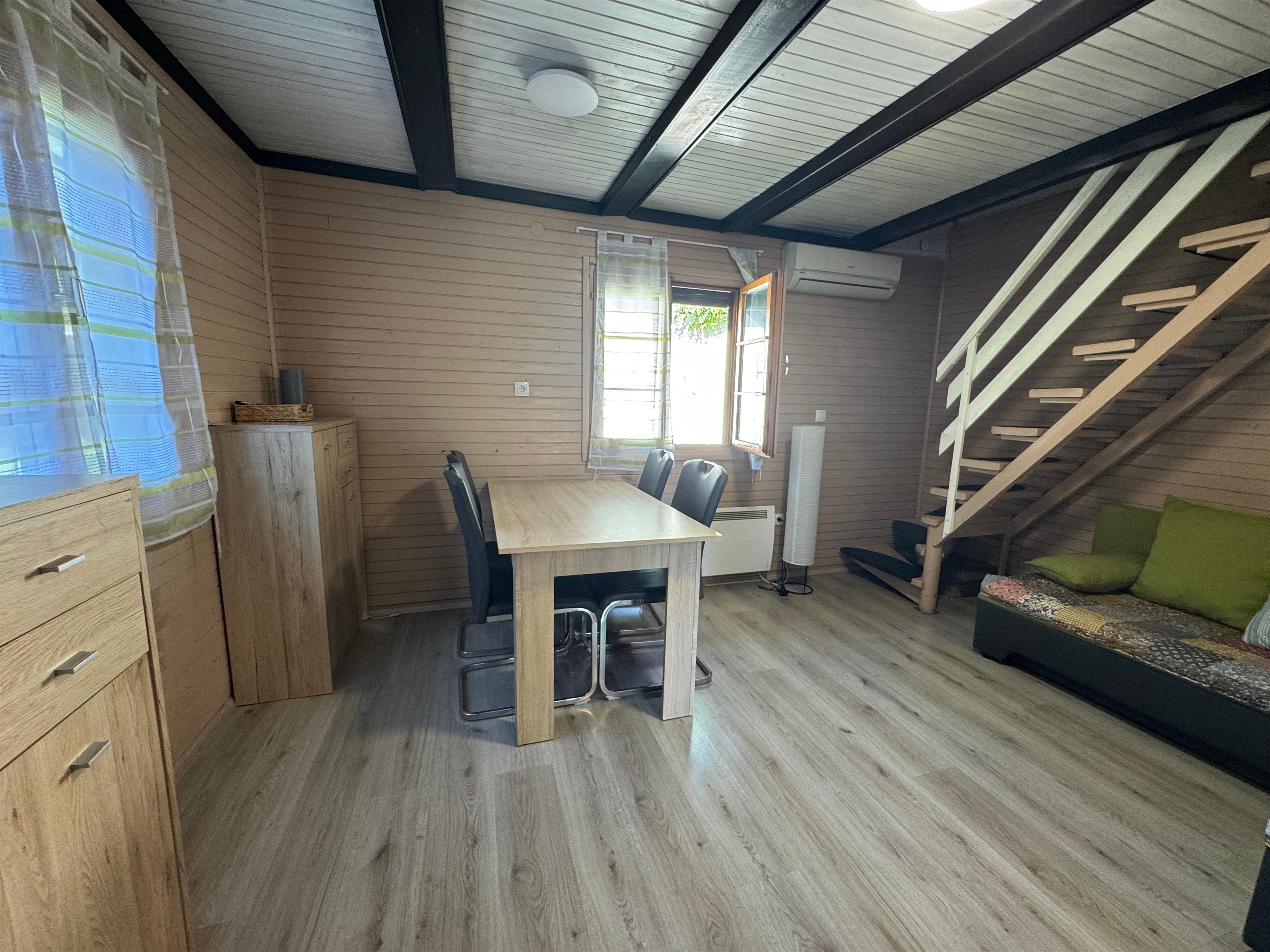 Im Obergeschoss erwartet Sie eine Schlafgalerie mit 4 Betten; im Erdgeschoss befinden sich ein Wohn-/Essbereich, die gut ausgestattete Küche (Kochfeld, Kühlschrank, Mikrowelle) sowie ein neu renoviertes Bad.