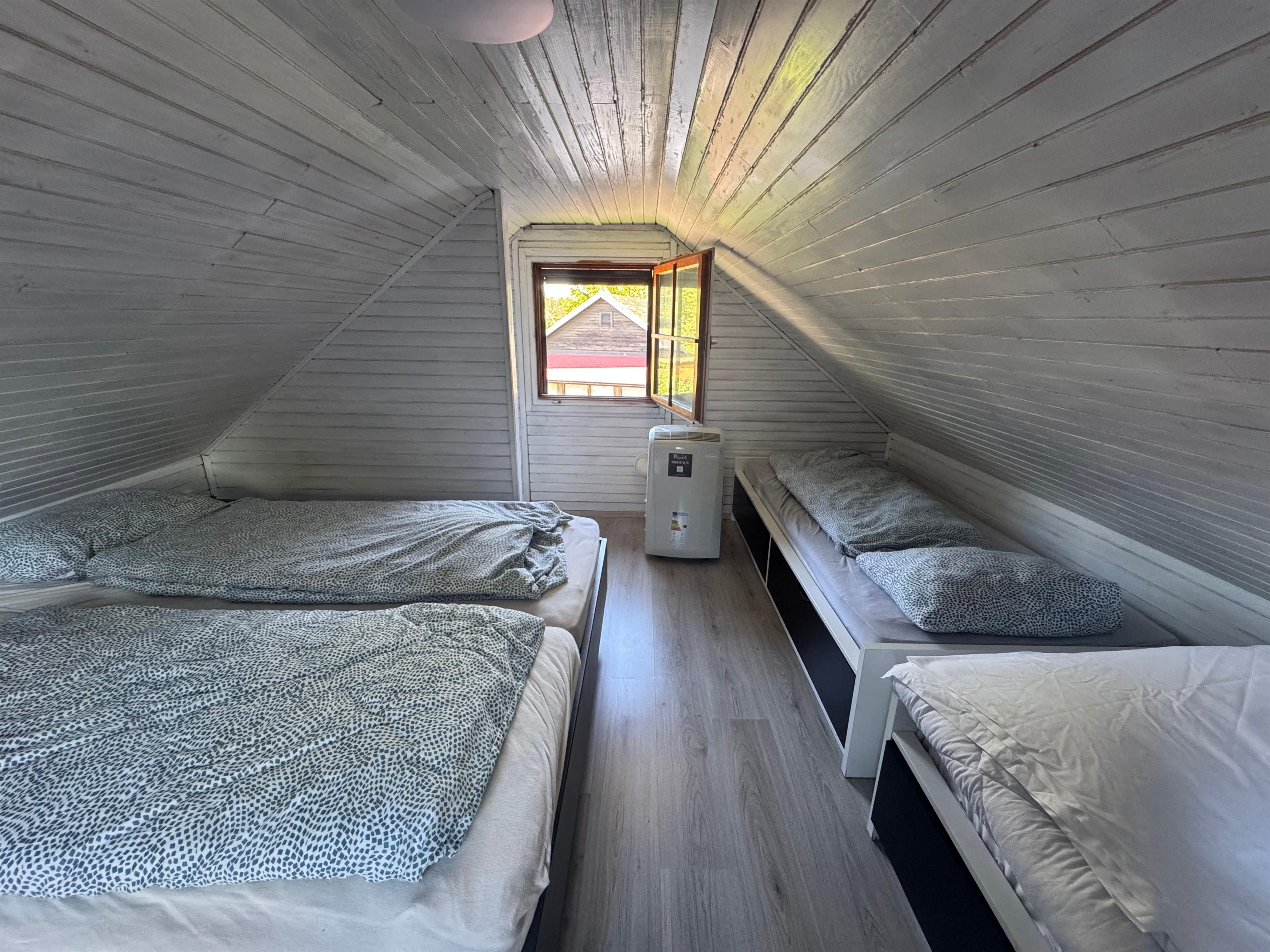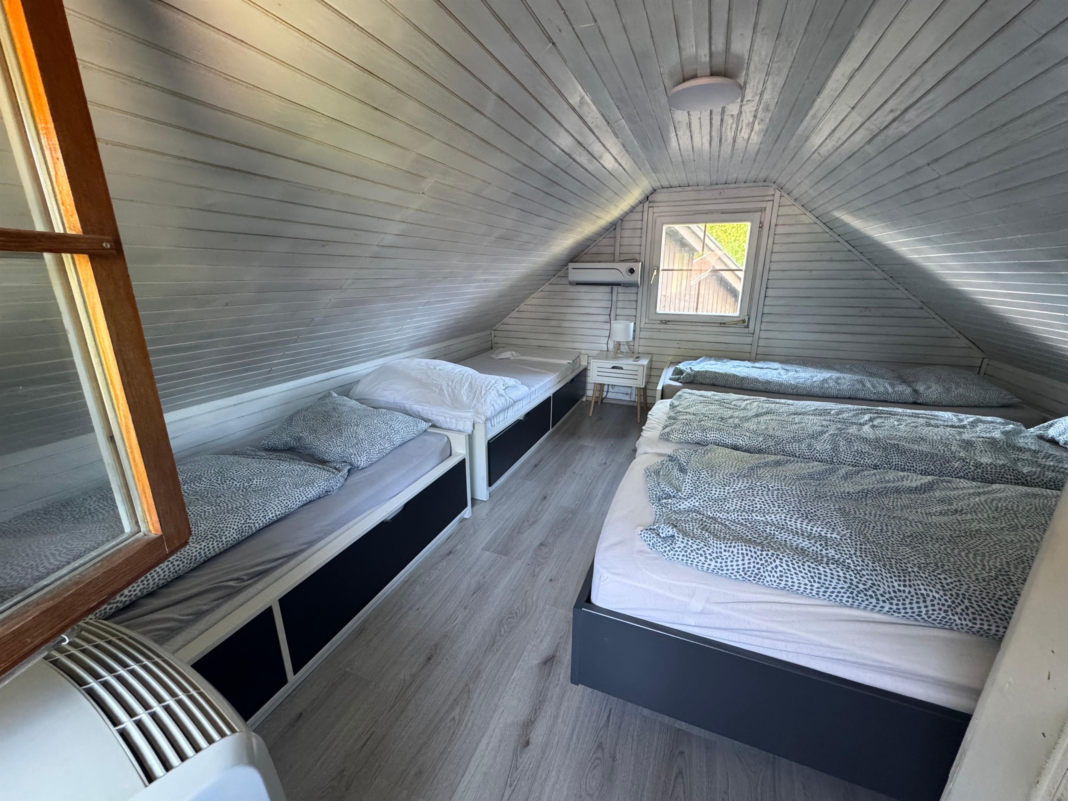 Unser charmantes Ferienhaus bietet auf etwa 50 Quadratmetern alles, was Sie für einen erholsamen Aufenthalt benötigen. Im Obergeschoss finden Sie fünf komfortable Schlafplätze, ideal für Familien oder kleine Gruppen. Das neu renovierte Badezimmer sorgt für zusätzlichen Komfort.
