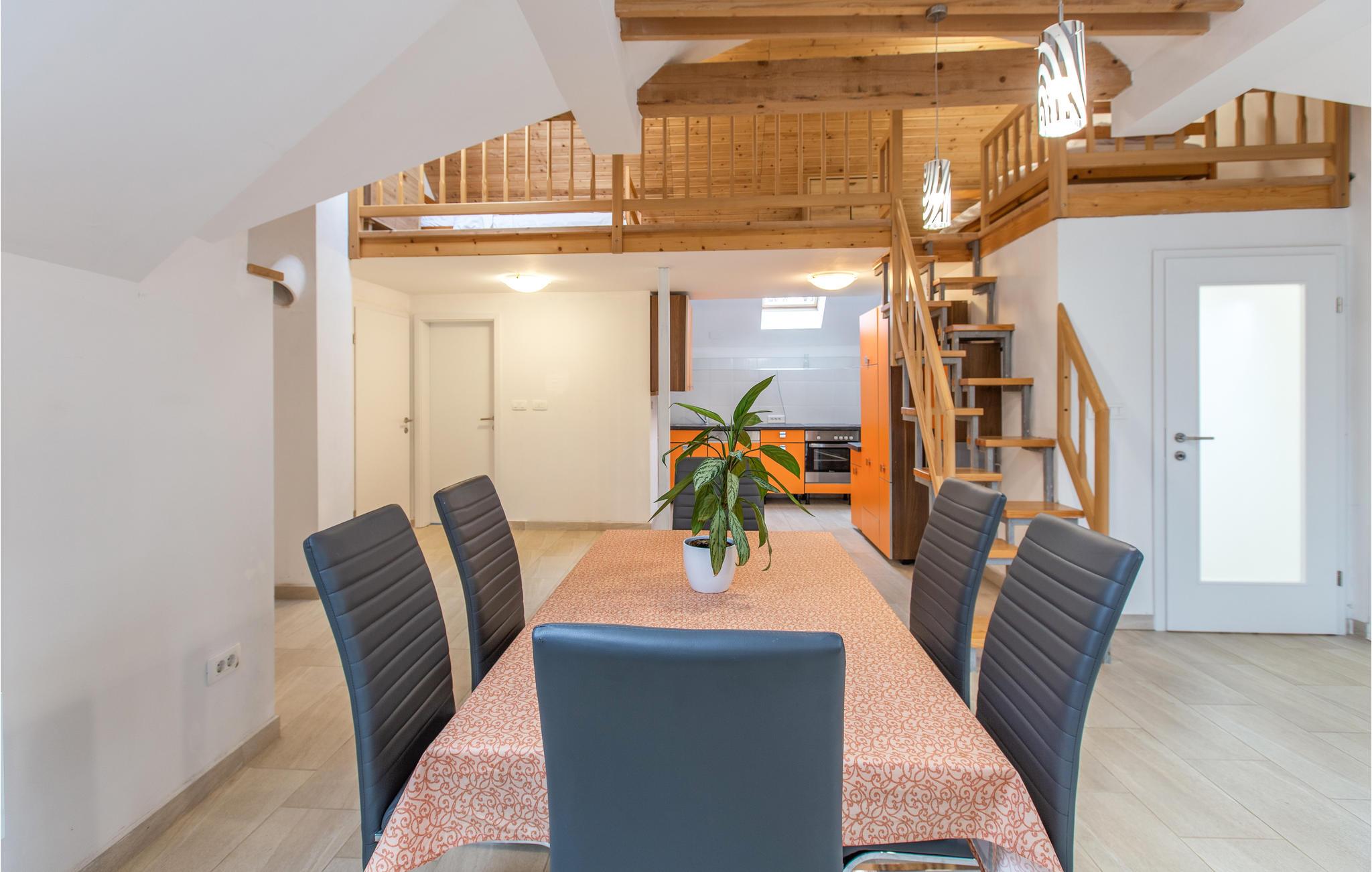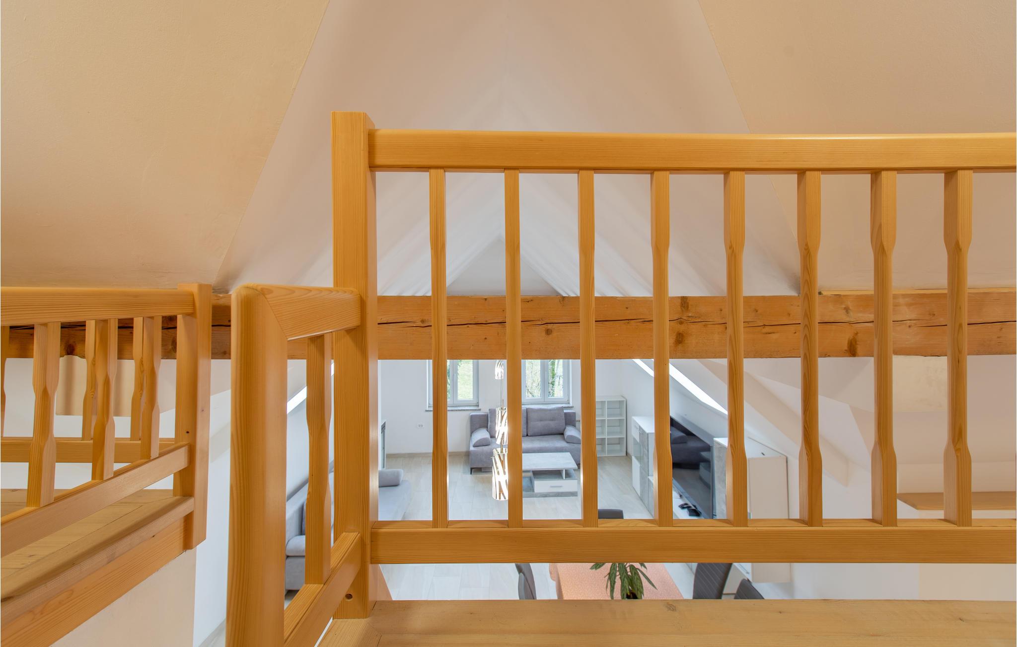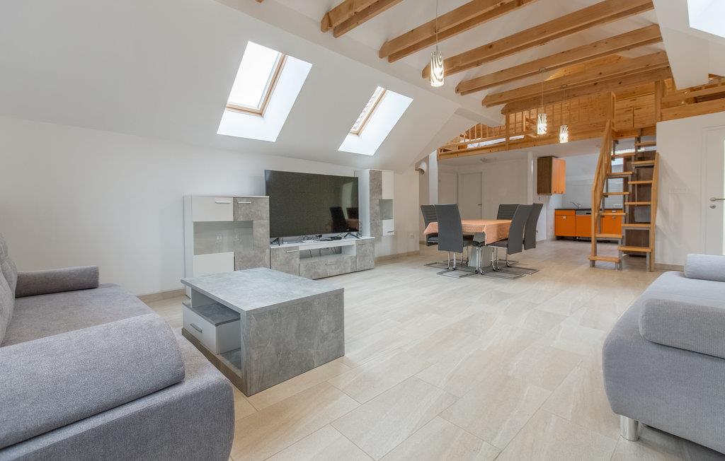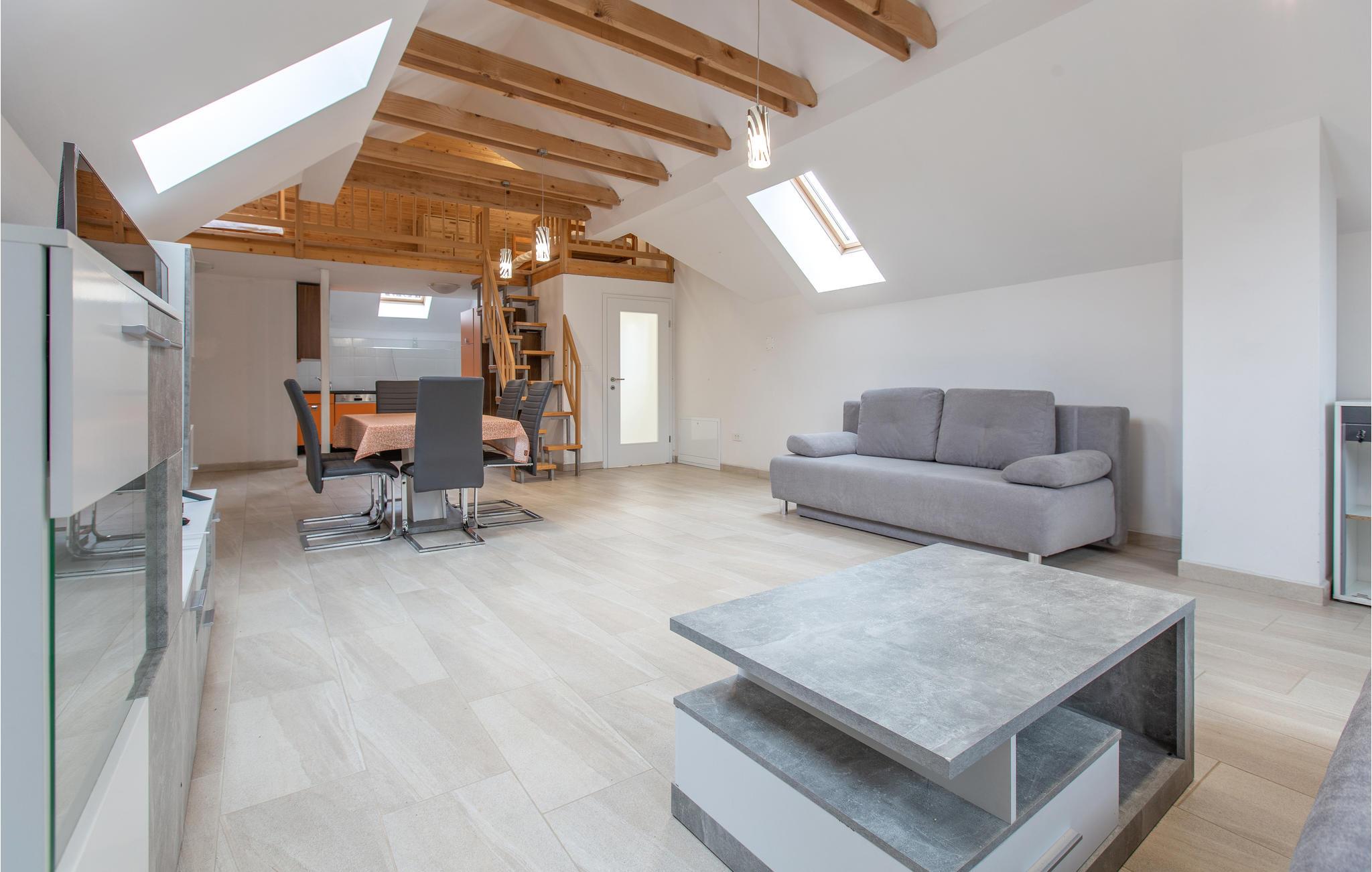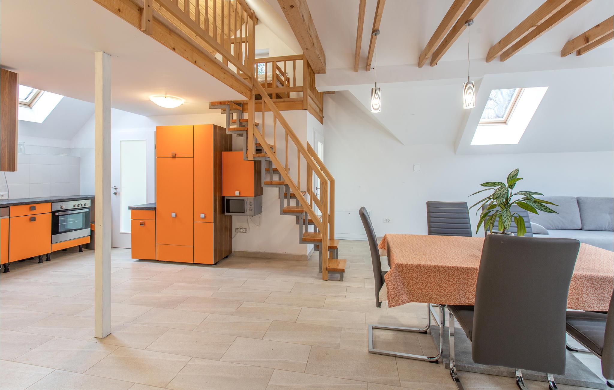 Slå jer ned i de lyse rum, med den hjemlige indretning, som har et varmt udtryk takket være masser af træelementer og gør lejligheden til det optimale sted at tilbringe en hyggelig pause tæt på naturen. Efter dagens aktiviteter kan I finde jer godt til rette i stuen, som lægger op til at slappe af i de komfortable sofaer.