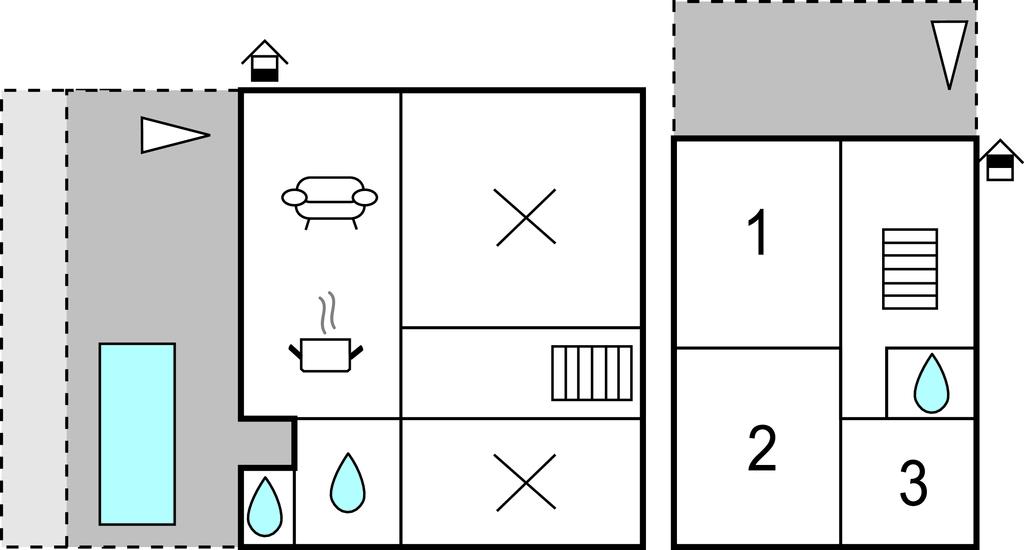 Soveværelse (nr. 1) - 1 Soveplads. (Enkeltseng(e)). 2 Sovepladser. (Dobbeltseng(e)).