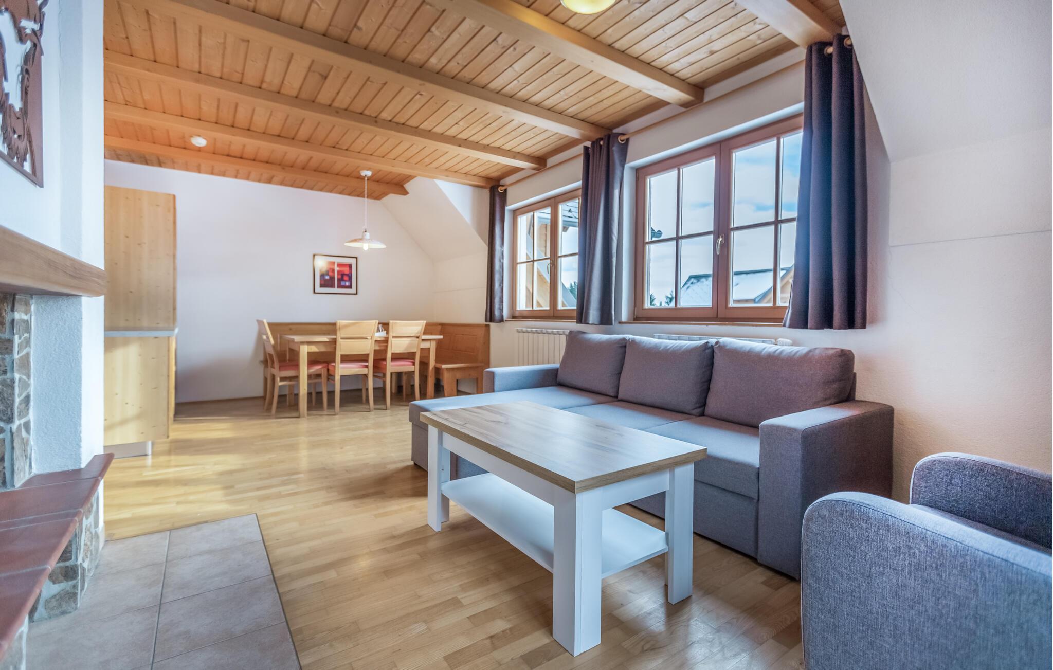 Velkommen til denne charmerende ferielejlighed i Hocko Pohorje, ideel til familier der ønsker en mindeværdig ferie med både afslapning og aktiviteter. Lejligheden tilbyder en hyggelig atmosfære og adgang til en fælles indendørs pool året rundt. Børnene vil elske de mange sjove aktiviteter som gynge, rutsjebane, vippe, fodboldmål og volleyballnet.
