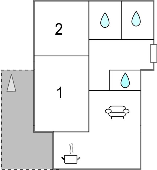 Opholdsstue/køkken 30m2 - 1 Soveplads. (Sofa, madras eller lignende). 1 Soveplads. (Madras).