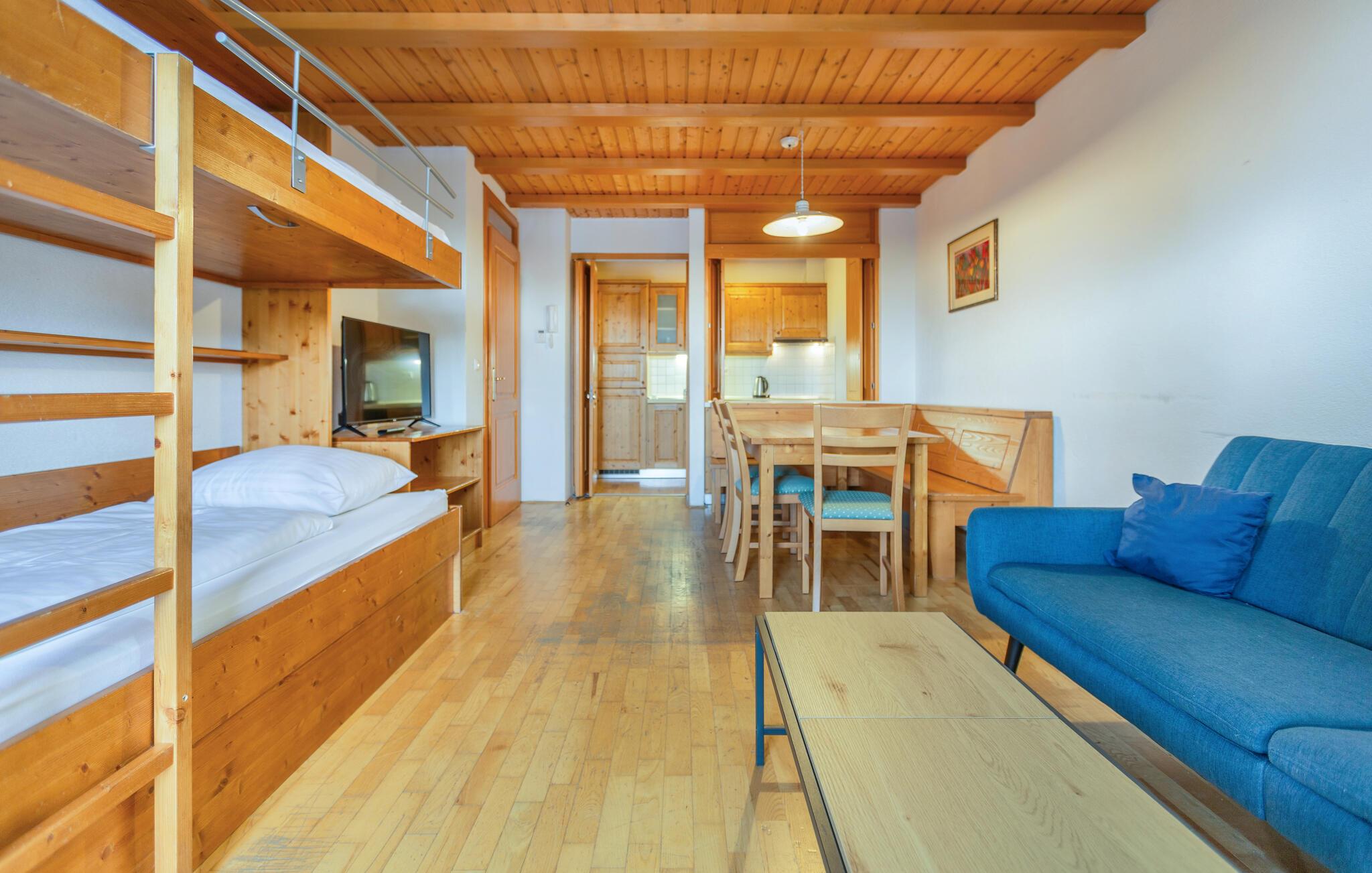 Slå jer ned i de attraktive rum med den hjemlige indretning, som har et varmt udtryk med masser af træelementer. Lejligheden er det optimale sted til en hyggelig pause og er ideel til en ferie med børn. Uanset vejret kan I bade i poolen, der deles med andre gæster, og finde jer godt til rette i stuen efter dagens aktiviteter.