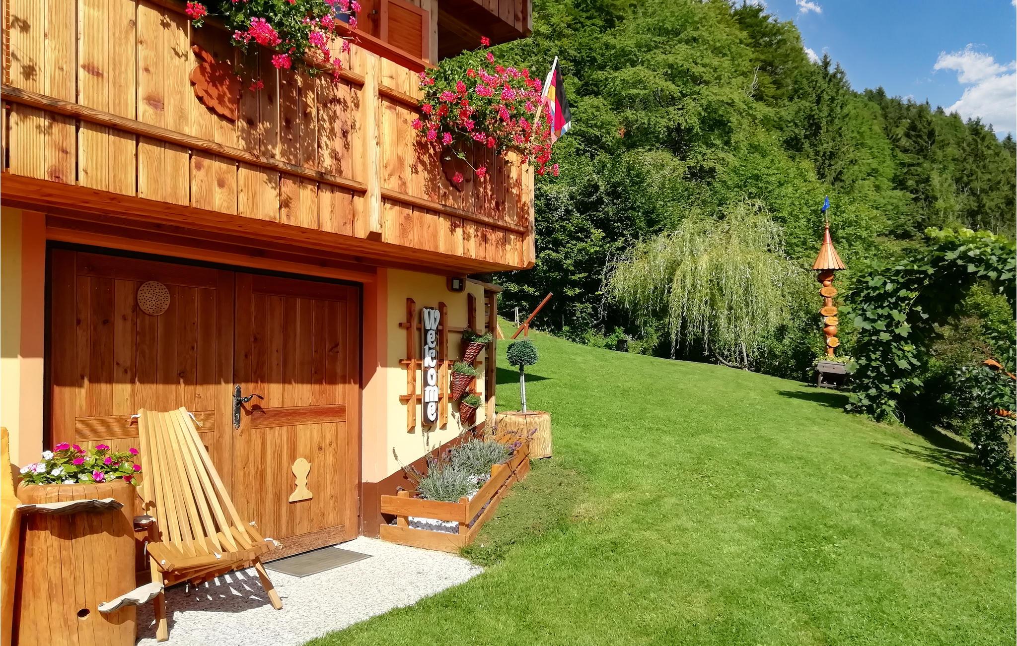 Dette smukke feriehus ligger midt i den uberørte natur, omgivet af duftende enge og skove. I stueetagen er der en stue, et køkken, et badeværelse og et soveværelse. En stejl trappe fører op til første sal, hvor der er endnu et soveværelse med en privat altan. Herfra har I en vidunderlig panoramaudsigt over de omkringliggende bakker og dalen. I gården er der et indhegnet område, hvor I kan lade børnene lege uden bekymringer. Her er også havemøbler og grill til rådighed. Der er en grøntsagshave ved siden af huset, hvor I kan få friske grøntsager afhængigt af sæsonen. Tag børnene med til gården i nærheden og hils på dyrene. Den maleriske natur indbyder til vandre- og cykelture, og I kan fiske i Savinafloden. Overalt venter storslåede naturoplevelser hvad end i udforsker dalene mellem de mægtige bjergtoppe, eller slapper af i et af de mange kurbade.
