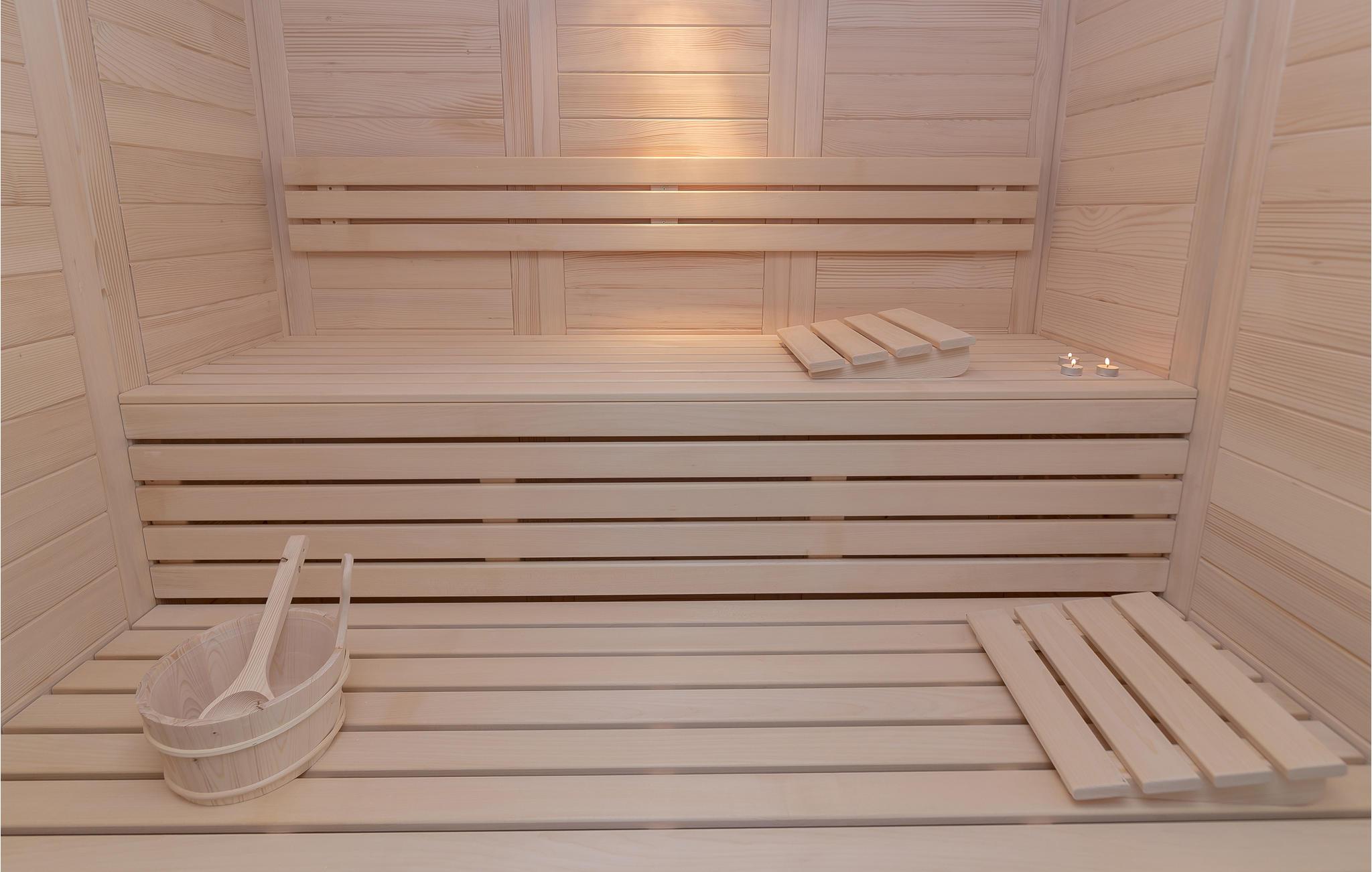 Om aftenen kan I grille på den åbne terrasse, mens børnene leger på grunden. Ud over poolen er der også sauna i huset, og så er det skønt med udendørspejsen, som sørger for en hyggelig stemning, når I puster ud med et glas vin om aftenen.