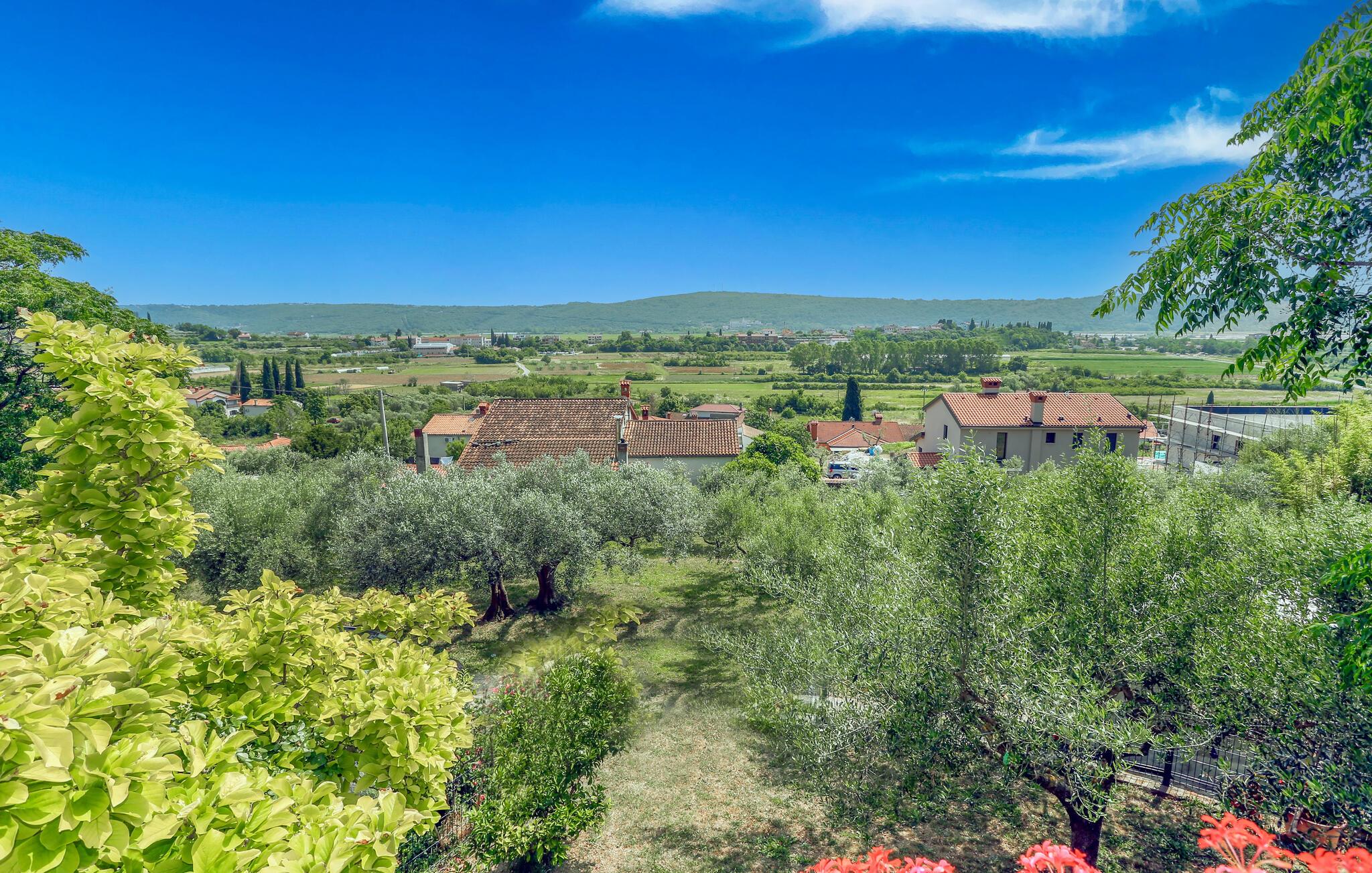Nyd en middelhavsferie i denne ferielejlighed med vidtstrakt udsigt helt til havet. Tilbring en afslappende ferie i denne ferielejlighed med en smuk kombination af landlig ro og middelhavslivsstil. I en lille by nær den slovenske adriaterhavskyst venter et feriehus på jer med privatliv og panoramaudsigt. Sæt jer til rette i de kærligt designede stuer med naturstensvægge, varme farver og komfortable møbler. Brug det åbne køkken med adgang til terrassen som centrum for fælleslivet, ideelt til en lang morgenmad eller fælles madlavning om aftenen. Slap af i det kombinerede opholds- og soveværelse med sofa, pejs og tv, eller træk jer tilbage med en bog. Gå ud på den overdækkede terrasse, hvor skyggefulde siddepladser inviterer jer til at nyde måltider udendørs. Haven med middelhavsplanter tilbyder masser af plads til afslapning, leg eller solbadning. Poolområdet med udsigt over Adriaterhavet fuldender tilbuddet, ideelt til at nyde de varmere måneder fuldt ud. Udforsk jeres feriedestination Parecag og oplev Secovlje-saltpanderne. Tag en tur til Strunjan naturreservat eller slentr gennem Pirans smalle gader. Stranden ligger kun få minutters kørsel væk, ligesom det børnevenlige Portorož med sine caféer, restauranter og maritime præg.