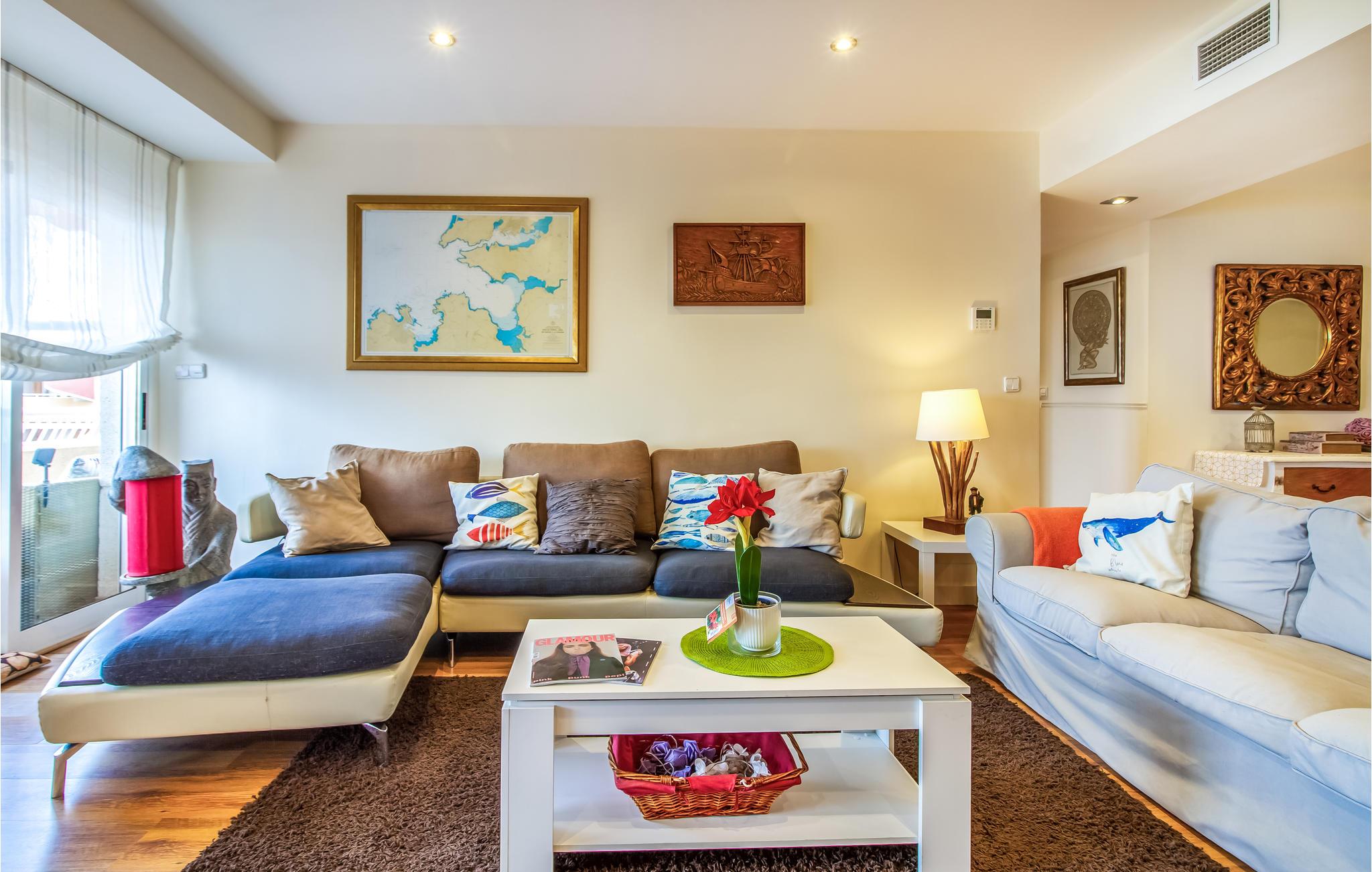Denne skønne ferielejlighed på 1. sal er velegnet til en familie eller to vennepar. Lejligheden er godt indrettet til, at man kan trække sig tilbage til soveværelserne og samles i stuen. Med til boligen hører den store terrasse, hvor I kan nyde en fantastisk udsigt til havet og bugten. Her kan I desuden sætte jer med dagens måltider og slappe af, når I vender hjem fra en masse spændende oplevelser.