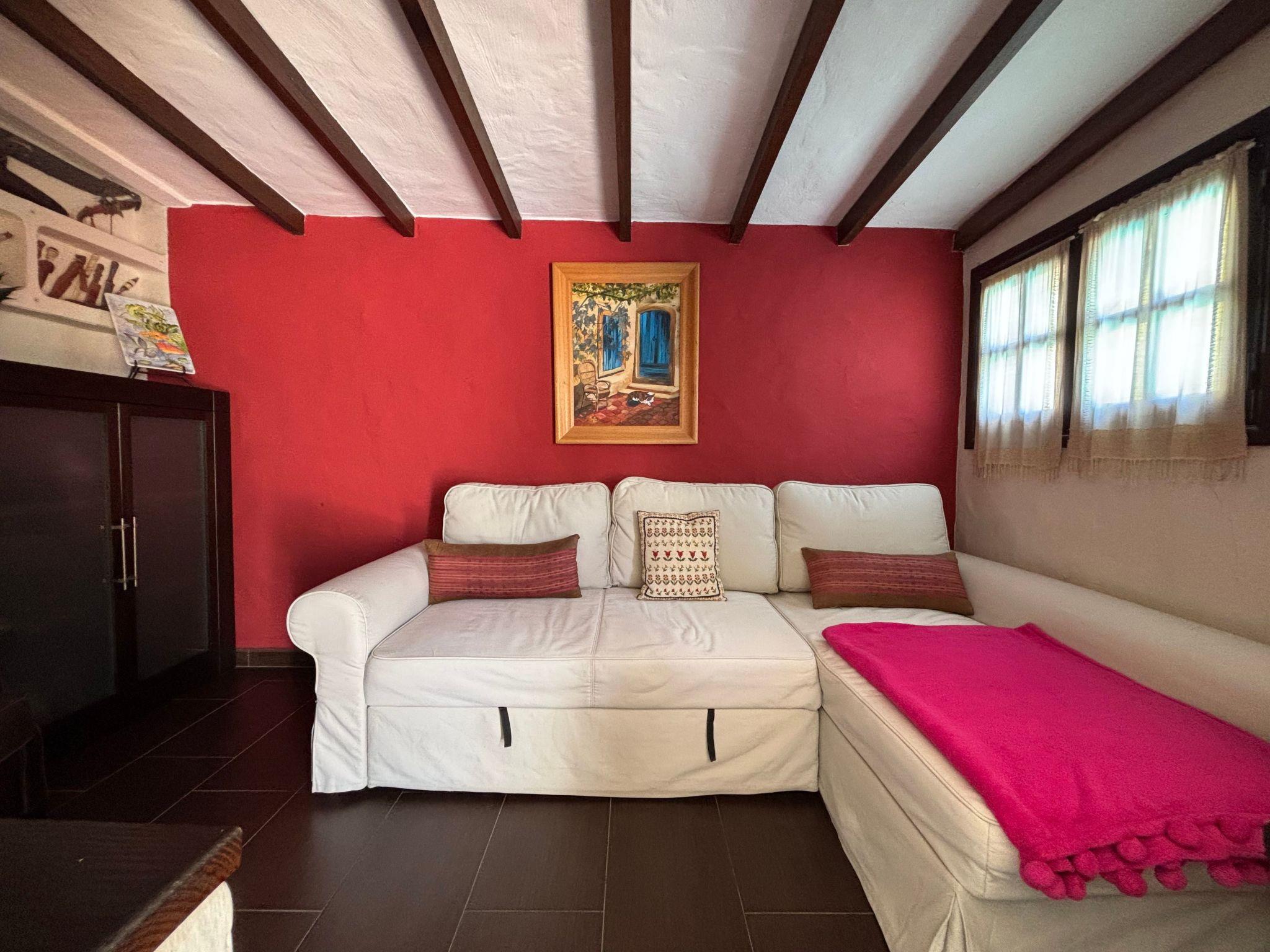 Outdoors, Los Veroles reveals a true paradise that invites you to enjoy the exceptional climate of the island. The outdoor area has a swimming pool heated by solar panels, a solarium equipped with comfortable sunbeds, and a barbecue area. The garden, designed to offer privacy and security by means of high walls, offers different corners ideal for relaxing and unwinding.