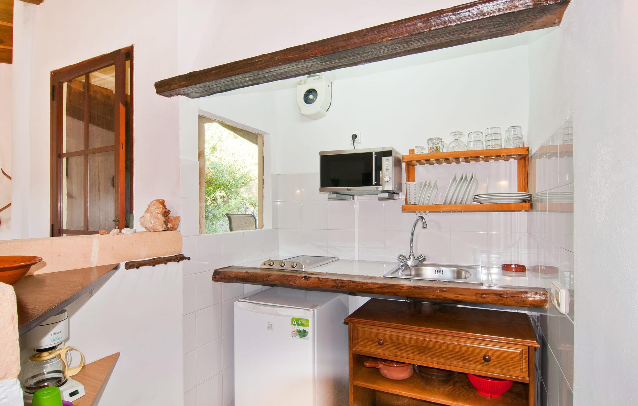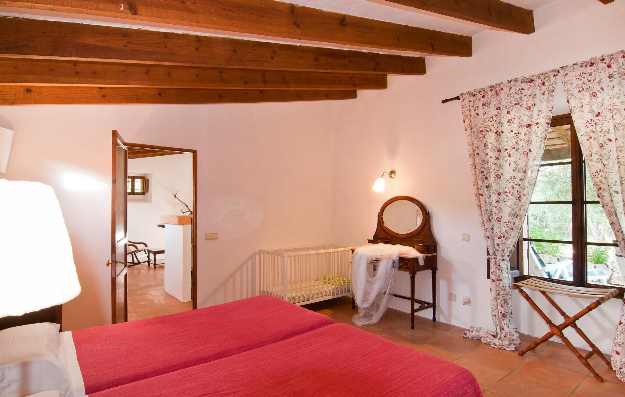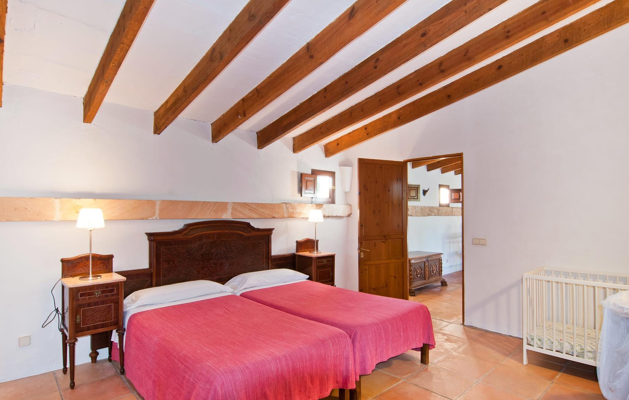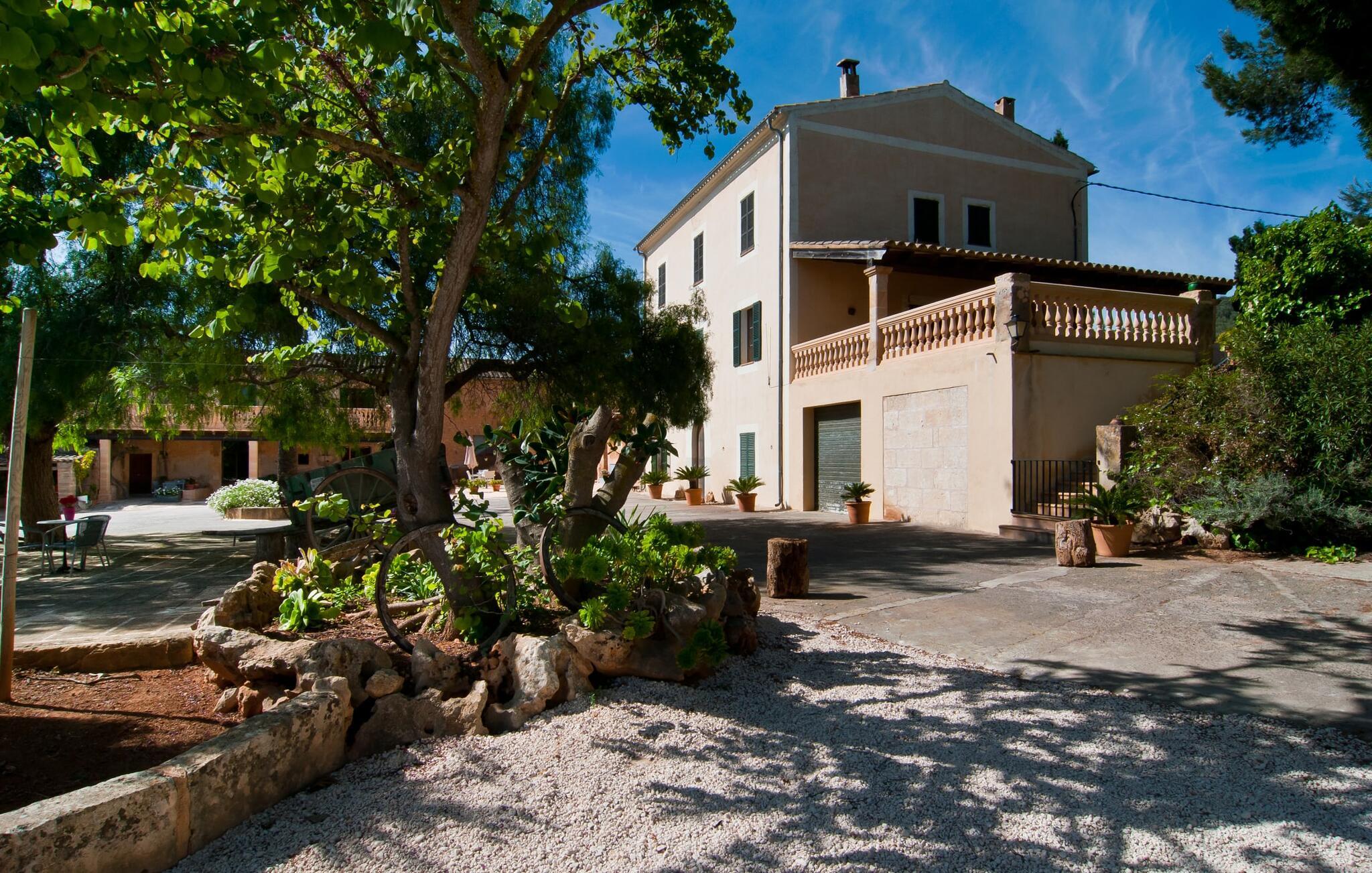 Den imponerende ejendom "Son Sureda" med sine 1.500.000 m² er blevet tilpasset feriegæster, unge og gamle efter 500 års landbrug, vindyrkning og husdyravl. Navnene på de elleve ferielejligheder, som er fordelt rundt om hovedhuset, borgmesterhuset og udhusene med et eller to dobbeltværelser, indikerer stadig deres tidligere anvendelse. På jeres ture rundt om de gamle mure vil I opdage mange gamle hestevogne og spændende landbrugsudstyr. På jeres egne små terrasser i stueetagen eller med udsigt kan I nyde jeres privatliv og få mulighed for at lære andre feriegæster at kende ved de mange borde og stole eller ved den fælles grill i den store indre gårdhave. I kan starte jeres Mallorca-morgen i den imponerende hvælving (de tidligere hestestalde) eller udenfor på det åbne område med en overdådig, ø-typisk morgenmad, som I kan bestille. To pools med liggestole og en udendørs bruser, et soppebassin, legepladsen med gynger, sandkasse, klatrestativ og fodboldbane samt hønsegårde sørger for afslapning for solorejsende og par samt en bondegårdsferie for familier. Vi er sikre på, at der er en lejlighed, der passer lige til jer. Måske er det "Es Figueral", den lille, rustikke casita bag den gamle vandcisterne, ca. 100 m fra hovedhuset. Her har I et naturstensrum på ejendommen helt for jer selv. For virkelig at få en fornemmelse af jeres studie, skal I sørge for at kigge efter de tre meget gamle figentræer med samme navn på ejendommen. jeres "Son Sureda"-imperium ville bestå af et dobbeltværelse med to 0,90 x 2 m senge, et moderne badeværelse med badekar (og en glasparti til brusebad) og en rustik stue/spisestue med åben pejs, gyngestole og et lille Spisebord. På dage, hvor I ønsker at blive på ejendommen hele dagen, kan I tilberede snacks, salater og små måltider i minikøkkenet med køleskab, to keramiske kogeplader og mikroovn. Terrassen, der er udstyret med en sovesofa og liggestole, er omgivet af træer, der giver en kølig brise selv på varme dage. Det skal I helt klart udnytte og tage et pusterum med en spændende bog i ny og næ. Og der er en række værdifulde destinationer: byliv eller havbrise? Fra jeres villa kan I nemt udforske de forskellige sider af øen. Godt 15 km væk venter strandene på soltilbedere, surfere og familier. Den omfattende Son Serra de Marina og den næsten to kilometer lange sandstrand mod Colònia de Sant Pere tilbyder plads nok til at sprede mere end blot et håndklæde. Hvis I vil nyde de blå nuancer fra oven, så tag til Betlem og klatre de 5 km til den lille Ermita. Naturligvis er mere krævende ruter til vandrestøvler og mountainbikes også mulige. Ma-3322, som er delvist hørbar afhængig af vindretningen, tager jer til byen Manacor for en spontan tur til den historiske bymidte eller for at shoppe på vitaminmarkedet. Hvis I vil besøge katedralen i Palma, skal I blot efterlade jeres bil på togstationen og tage bussen eller toget. Sommerhus på landet med masser af natur til villagæsterne. Føl jer hjemme på agroturismo-ejendommen "Son Sureda", der ligger mellem fåregræsgange og vinmarker, som har elleve lejligheder og studiolejligheder med egen forplejning (her den separate "Es Figueral"), en stor U-formet gårdhave og flere pools. Manacor, en af øens metropoler, ligger kun 9 km væk. Det er ideelt til shopping på det daglige frugt- og grøntmarked, til udflugter og til en afslappet middag på en restaurant. Og på Badia d'Alcúdia, i retning mod Son Serra de Marina og Colònia de Sant Pere, kan I stadig finde et par strande, der endnu ikke er overfyldte.