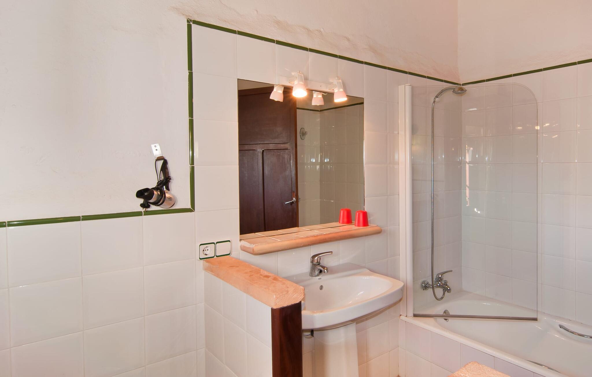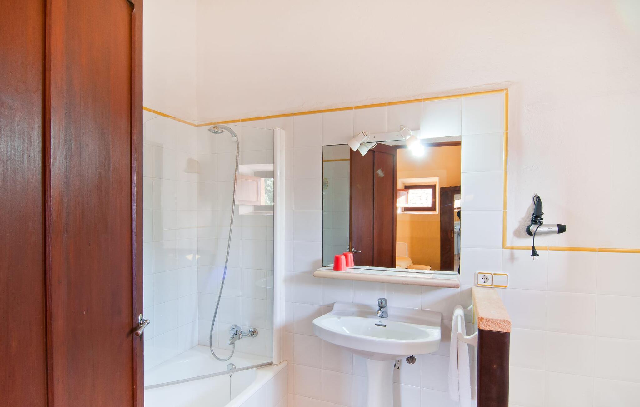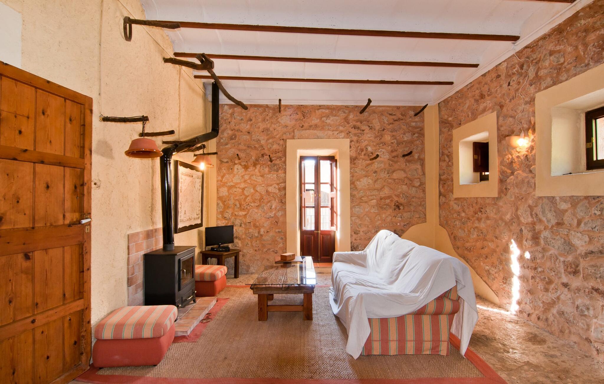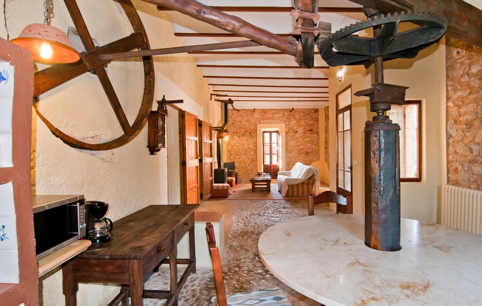 Den imponerende "Son Sureda" ejendom med sine 1.500.000 m² er blevet tilpasset til feriegæster, unge og gamle efter 500 års landbrug, vindyrkning og husdyravl. Navnene på de elleve ferielejligheder, som er fordelt rundt om hovedhuset, borgmesterhuset og udhusene med et eller to dobbeltværelser, indikerer stadig deres tidligere anvendelse. På jeres ture rundt om de gamle mure vil I opdage mange gamle hestevogne og spændende landbrugsudstyr. På jeres egne små terrasser i stueetagen eller med udsigt kan I nyde jeres privatliv og få mulighed for at lære andre feriegæster at kende ved de mange borde og stole eller ved den fælles grill i den store indre gårdhave. I kan starte jeres Mallorca-morgen i den imponerende hvælving (de tidligere hestestalde) eller udenfor på det åbne område med en overdådig, ø-typisk morgenmad, som I kan bestille. To pools med liggestole og udendørs bruser, et soppebassin, en legeplads med gynger, sandkasse, klatrestativ, fodboldbane og hønsegårde sikrer afslapning for enlige rejsende og par samt for familier på bondegårdsferie. Vi er sikre på, at der er en lejlighed, der passer lige til jer. Måske er det denne lejlighed med sin unikke historie. “Es Moli”, “kornmøllen”, er fuldstændig bevaret i dagens stue og fungerer som et unikt bord. Et æsel eller et muldyr løb her i cirkler og vendte møllestenene. Kornet blev opbevaret i soveværelserne. Begge dobbeltværelser har eget badeværelse med bruseniche. Den hyggelige stue er udstyret med sofa, fjernsyn og rustik pejs, som giver en særlig atmosfære og varme, når der er behov for det. På dage, hvor I ønsker at blive på ejendommen hele dagen, kan I tilberede snacks, salater og små måltider i tekøkkenet med køleskab, to keramiske kogeplader, mikroovn og kaffemaskine. Udover bord, stole og parasol har terrassen en lille dør, så I har fuldstændig privatliv. Samtidig kan I se poolen og jeres børn plaske rundt i den. Forkæl jer selv med en pause med en god bog i ny og næ. Og der er en række værdifulde destinationer: byliv eller havbrise? Fra jeres villa kan I nemt udforske de forskellige sider af øen. Godt 15 km væk venter strandene på soltilbedere, surfere og familier. Den rummelige Son Serra de Marina og den næsten to kilometer lange sandstrand mod Colònia de Sant Pere tilbyder plads nok til at sprede mere end blot et håndklæde. Hvis I vil nyde de blå nuancer fra oven, så tag til Betlem og klatre de 5 km til den lille Ermita. Naturligvis er mere krævende ruter til vandrestøvler og mountainbikes også mulige. Ma-3322, som er delvist hørbar afhængig af vindretningen, tager jer til byen Manacor for en spontan tur til den historiske bymidte eller for at shoppe på vitaminmarkedet. Hvis I vil besøge katedralen i Palma, skal I blot efterlade jeres bil på togstationen og tage bussen eller toget. Sommerhus på landet med masser af natur til villagæsterne. Føl jer hjemme på agroturismoen "Son Sureda", der ligger mellem fåregræsgange og vinmarker, som har elleve lejligheder og studiolejligheder med egen forplejning, en stor U-formet gårdhave og flere pools. Manacor, en af øens metropoler, ligger kun 9 km væk. Det er ideelt til shopping på det daglige frugt- og grøntmarked, til udflugter og til en afslappet middag på en restaurant. Og på Badia d'Alcúdia, i retning mod Son Serra de Marina og Colònia de Sant Pere, kan I stadig finde et par strande, der endnu ikke er overfyldte.