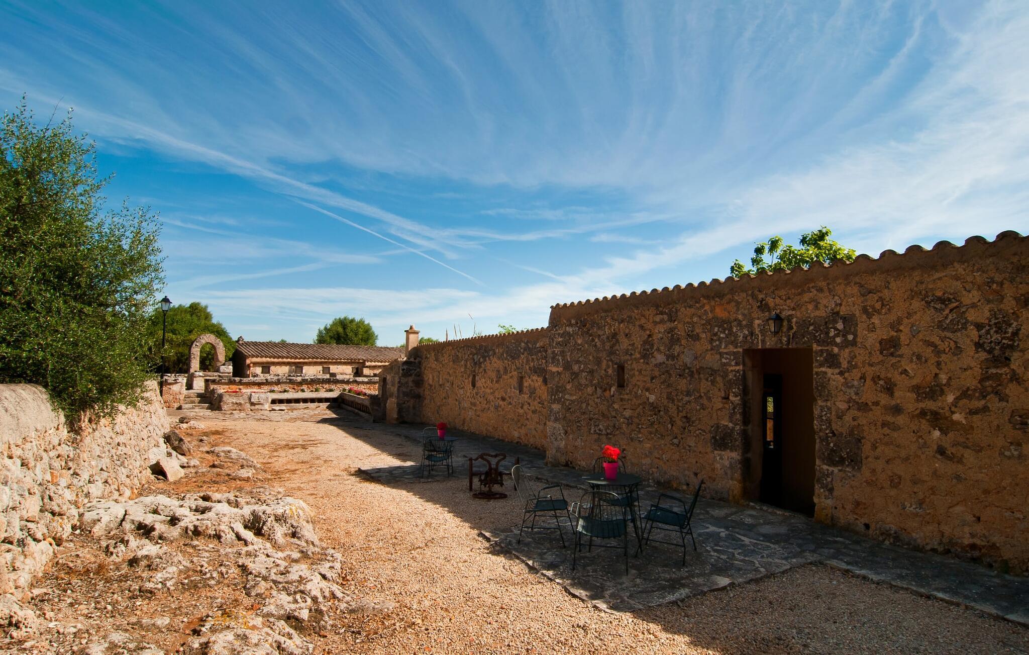 Den imponerende "Son Sureda" ejendom med sine 1.500.000 m² er blevet tilpasset til feriegæster, unge og gamle efter 500 års landbrug, vindyrkning og husdyravl. Navnene på de elleve ferielejligheder, som er fordelt rundt om hovedhuset, borgmesterhuset og udhusene med et eller to dobbeltværelser, indikerer stadig deres tidligere anvendelse. På jeres ture rundt om de gamle mure vil I opdage mange gamle hestevogne og spændende landbrugsudstyr. På jeres egne små terrasser i stueetagen eller med udsigt kan I nyde jeres privatliv og få mulighed for at lære andre feriegæster at kende ved de mange borde og stole eller ved den fælles grill i den store indre gårdhave. I kan starte jeres Mallorca-morgen i den imponerende hvælving (de tidligere hestestalde) eller udenfor på det åbne område med en overdådig, ø-typisk morgenmad, som I kan bestille. To pools med liggestole og udendørs bruser, et soppebassin, en legeplads med gynger, sandkasse, klatrestativ, fodboldbane og hønsegårde sikrer afslapning for enlige rejsende og par samt for familier på bondegårdsferie. Vi er sikre på, at der er en lejlighed, der passer lige til jer. Måske er det "Sa Porquera", som engang var avlsstation for ejendommens pattegrise. Kort før fødslen blev moderdyrene bragt ind i denne stald for at hjælpe dem og smågrisene. Svinehyrden boede lige ved siden af i "Es Porque" og kunne derfor hurtigt være der, når der var brug for ham. Smågrisens fodertrug af sten kan stadig ses på terrassen i dag. jeres "Son Sureda" kongerige ville bestå af et soveområde med to 0,9 x 2 m senge, et badeværelse med bruser og en stue med typiske mallorcanske gyngestole og et lille spisebord. På dage, hvor I ønsker at blive på ejendommen hele dagen, kan I tilberede snacks, salater og små måltider i tekøkkenet med køleskab, to keramiske kogeplader, mikroovn og kaffemaskine. Fra terrassen har I en smuk udsigt over det grønne og kan slappe helt af ved bordet eller på en af de komfortable liggestole. Forkæl jer selv med en pause med en god bog i ny og næ. Og der er en række værdifulde destinationer: byliv eller havbrise? Fra jeres villa kan I nemt udforske de forskellige sider af øen. Godt 15 km væk venter strandene på soltilbedere, surfere og familier. Den rummelige Son Serra de Marina og den næsten to kilometer lange sandstrand mod Colònia de Sant Pere tilbyder plads nok til at sprede mere end blot et håndklæde. Hvis I vil nyde de blå nuancer fra oven, så tag til Betlem og klatre de 5 km til den lille Ermita. Naturligvis er mere krævende ruter til vandrestøvler og mountainbikes også mulige. Ma-3322, som er delvist hørbar afhængig af vindretningen, tager jer til byen Manacor for en spontan tur til den historiske bymidte eller for at shoppe på vitaminmarkedet. Hvis I vil besøge katedralen i Palma, skal I blot efterlade jeres bil på togstationen og tage bussen eller toget. Sommerhus på landet med masser af natur til villagæsterne. Føl jer hjemme på agroturismo-ejendommen "Son Sureda", beliggende mellem fåregræsgange og vinmarker, som har elleve lejligheder og studiolejligheder med egen forplejning, en stor U-formet gårdhave og flere pools. Manacor, en af øens metropoler, ligger kun 9 km væk. Det er ideelt til shopping på det daglige frugt- og grøntmarked, til udflugter og til en afslappet middag på en restaurant. Og på Badia d'Alcúdia, i retning mod Son Serra de Marina og Colònia de Sant Pere, kan I stadig finde et par strande, der endnu ikke er overfyldte.