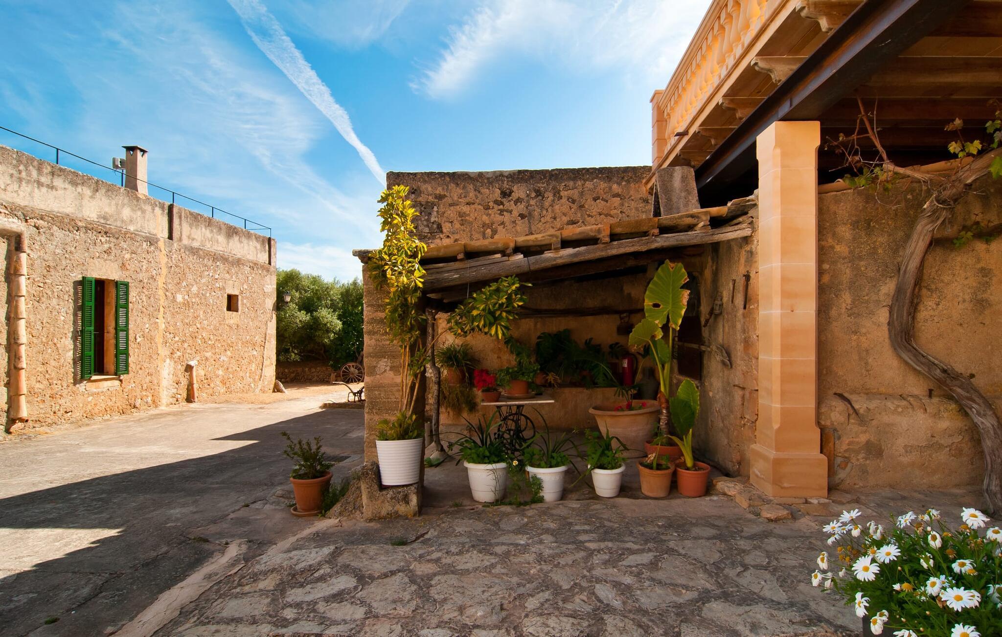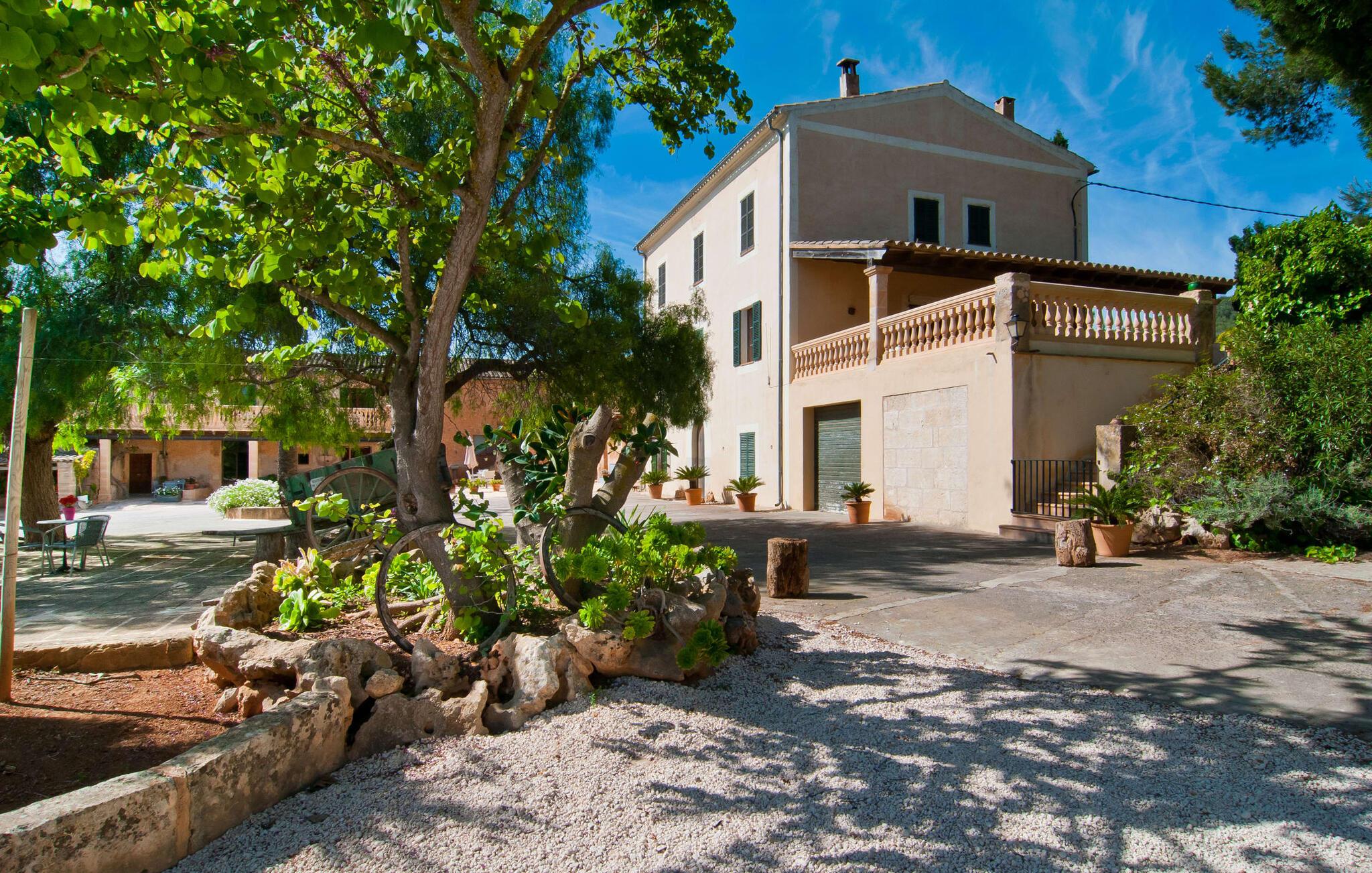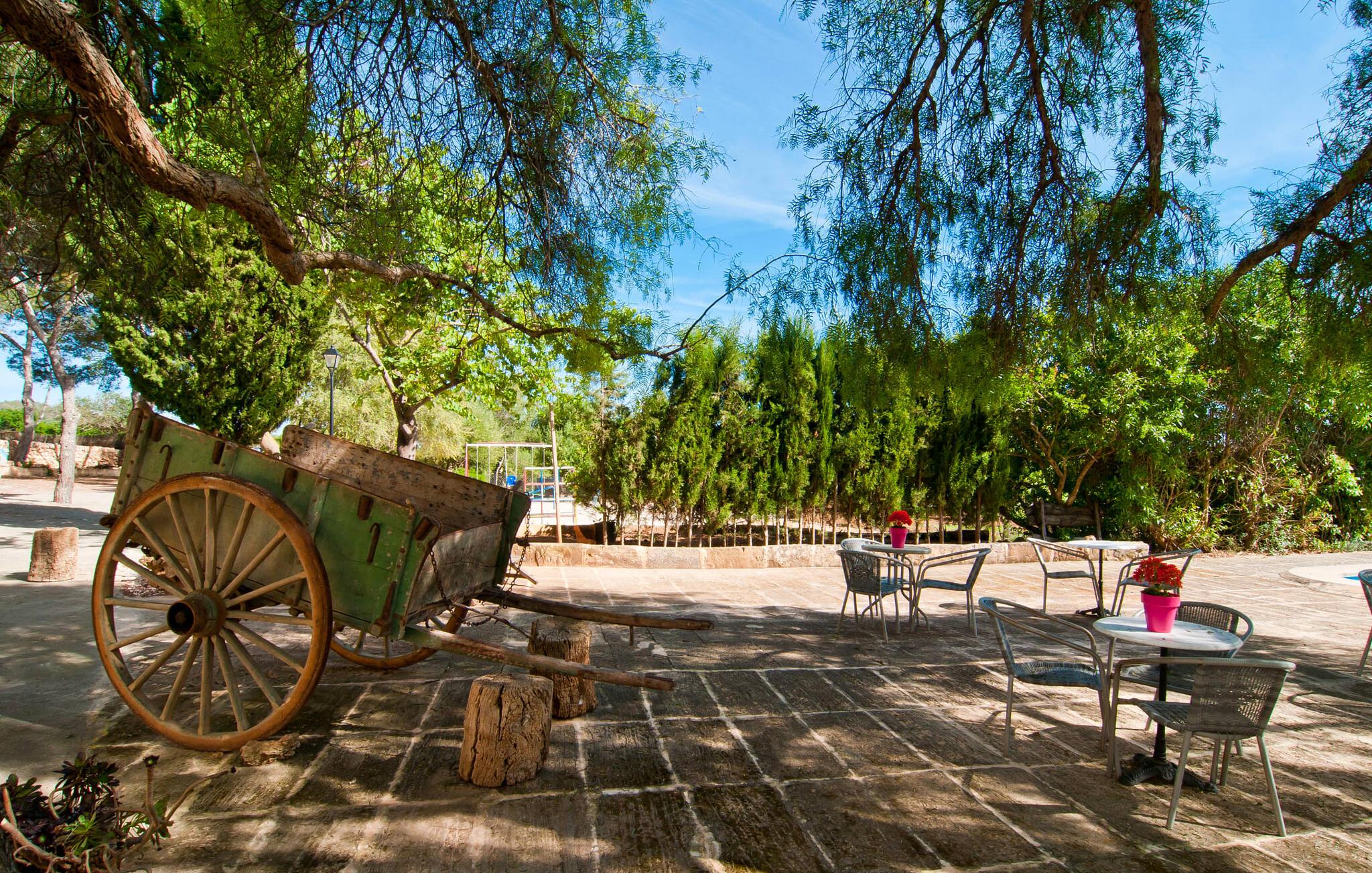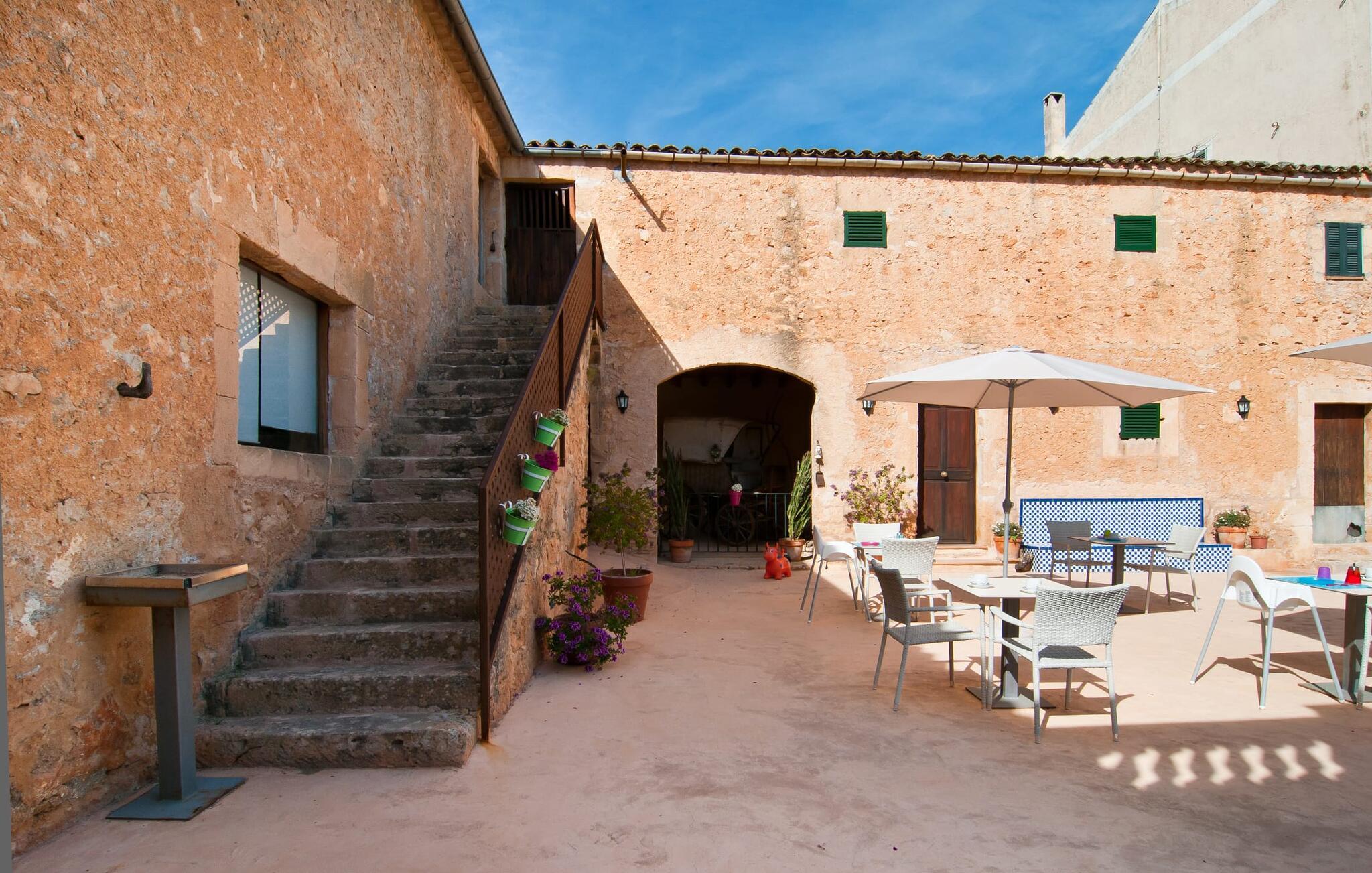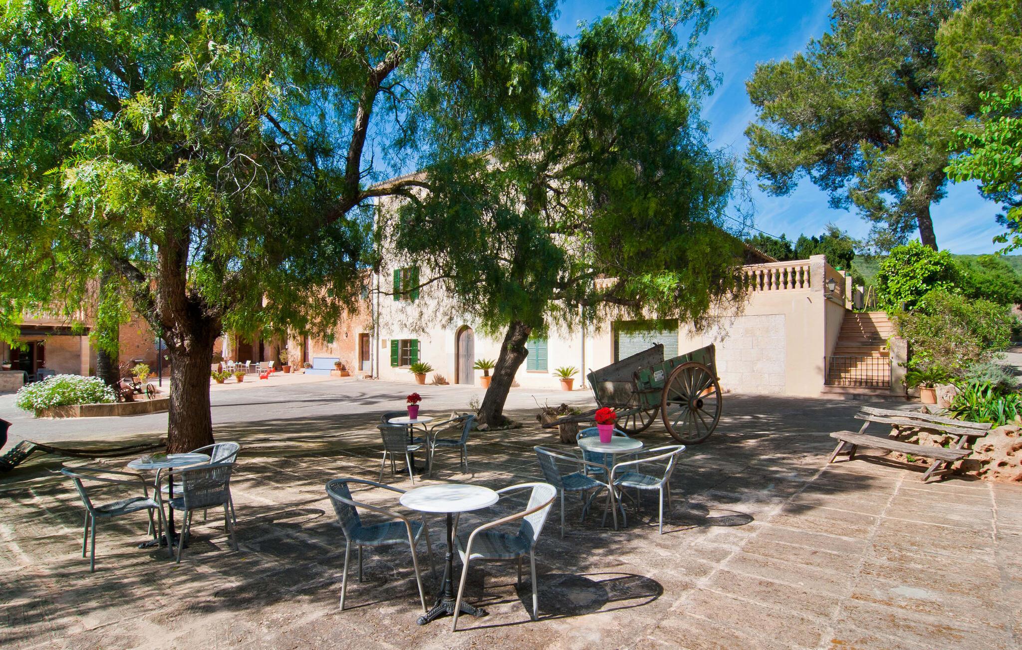 Den imponerende ejendom "Son Sureda" med sine 1.500.000 m² er blevet tilpasset feriegæster, unge og gamle efter 500 års landbrug, vindyrkning og husdyravl. Navnene på de elleve ferielejligheder, som er fordelt rundt om hovedhuset, borgmesterhuset og udhusene med et eller to dobbeltværelser, indikerer stadig deres tidligere anvendelse. På jeres ture rundt om de gamle mure vil I opdage mange gamle hestevogne og spændende landbrugsudstyr. På jeres egne små terrasser i stueetagen eller med udsigt kan I nyde jeres privatliv og få mulighed for at lære andre feriegæster at kende ved de mange borde og stole eller ved den fælles grill i den store indre gårdhave. I kan starte jeres Mallorca-morgen i den imponerende hvælving (de tidligere hestestalde) eller udenfor på det åbne område med en overdådig, ø-typisk morgenmad, som I kan bestille. To pools med liggestole og udendørs bruser, et soppebassin, en legeplads med gynger, sandkasse, klatrestativ, fodboldbane og hønsegårde sikrer afslapning for enlige rejsende og par samt for familier på bondegårdsferie. Vi er sikre på, at der er en lejlighed, der passer lige til jer. Måske er det "Samagatai", som kan oversættes til "gemmested", fordi badeværelset i denne lejlighed tidligere havde en lille forbindelsesdør, der førte til nabohuset. Melet var gemt her og blev hemmeligt malet i møllen om natten. jeres "Son Sureda"-rige ville bestå af et soveområde med to 0,90 x 2 m senge (og direkte adgang til tagterrassen), et badeværelse med bruser og en hyggelig stue med indbydende lænestole og et lille spisebord. På dage, hvor I ønsker at blive på ejendommen hele dagen, kan I tilberede snacks, salater og småretter i minikøkkenet med køleskab, to keramiske kogeplader, mikroovn og kaffemaskine. Fra balkonen (med bord, stole og parasol) har I en fantastisk udsigt over den indre gårdhave og kan muligvis se jeres børn lege der. Forkæl jer selv med en pause med en god bog i ny og næ. Og der er en række værdifulde destinationer: byliv eller havbrise? Fra jeres villa kan I nemt udforske de forskellige sider af øen. Godt 15 km væk venter strandene på soltilbedere, surfere og familier. Den rummelige Son Serra de Marina og den næsten to kilometer lange sandstrand mod Colònia de Sant Pere tilbyder plads nok til at sprede mere end blot et håndklæde. Hvis I vil nyde de blå nuancer fra oven, så tag til Betlem og klatre de 5 km til den lille Ermita. Naturligvis er mere krævende ruter til vandrestøvler og mountainbikes også mulige. Ma-3322, som er delvist hørbar afhængig af vindretningen, tager jer til byen Manacor for en spontan tur til den historiske bymidte eller for at shoppe på vitaminmarkedet. Hvis I vil besøge katedralen i Palma, skal I blot efterlade jeres bil på togstationen og tage bussen eller toget. Sommerhus på landet med masser af natur til villagæsterne. Føl jer hjemme på agroturismoen "Son Sureda", der ligger mellem fåregræsgange og vinmarker, som har elleve lejligheder og studiolejligheder med egen forplejning, en stor U-formet gårdhave og flere pools. Manacor, en af øens metropoler, ligger kun 9 km væk. Det er ideelt til shopping på det daglige frugt- og grøntmarked, til udflugter og til en afslappet middag på en restaurant. Og på Badia d'Alcúdia, i retning mod Son Serra de Marina og Colònia de Sant Pere, kan I stadig finde et par strande, der endnu ikke er overfyldte.