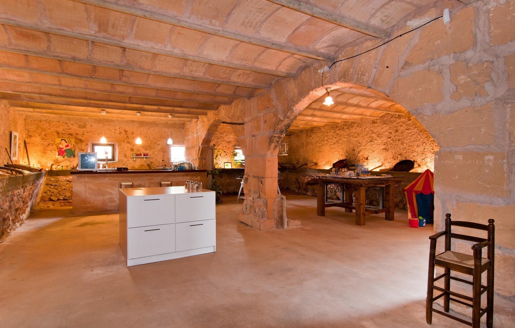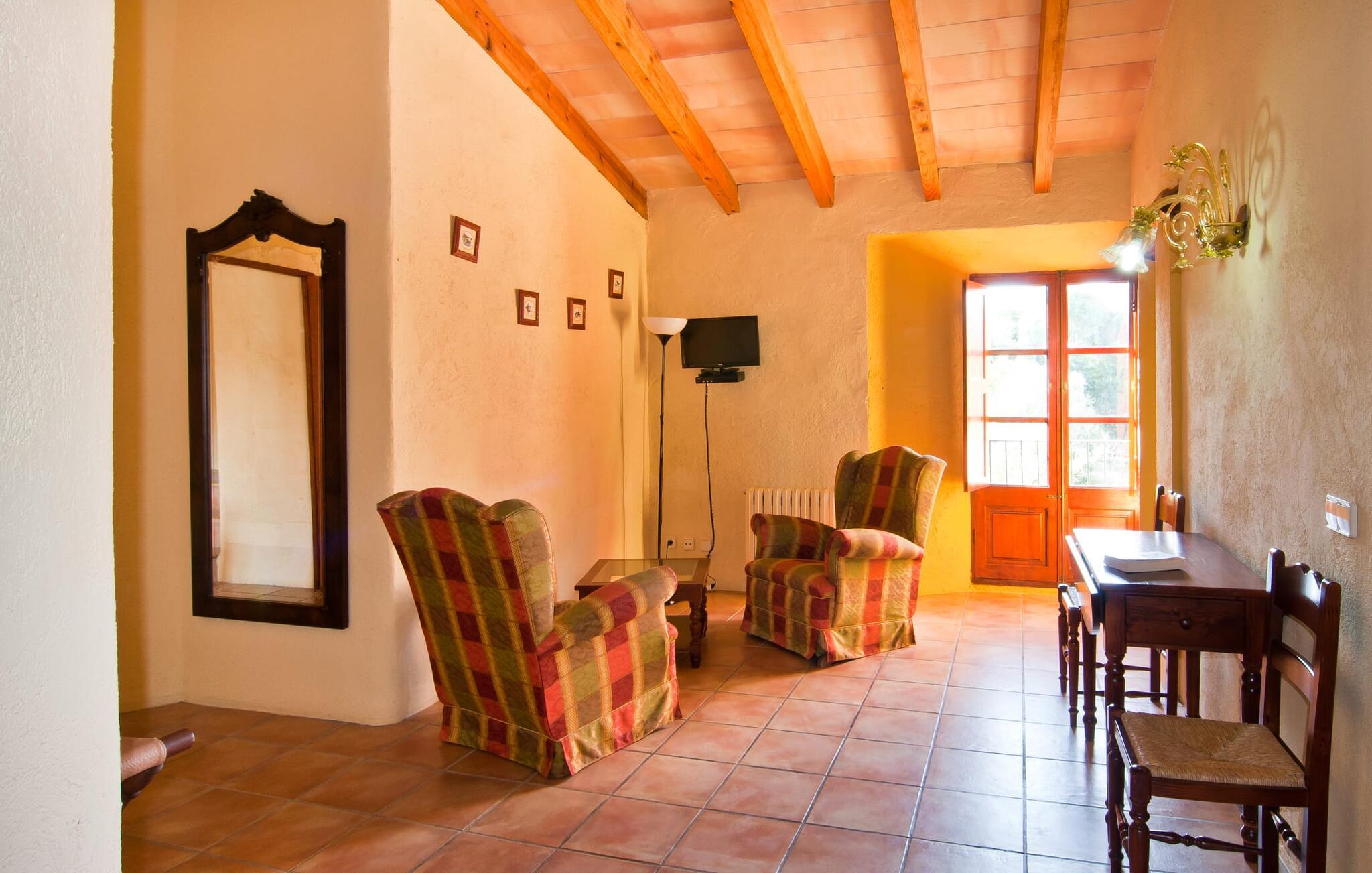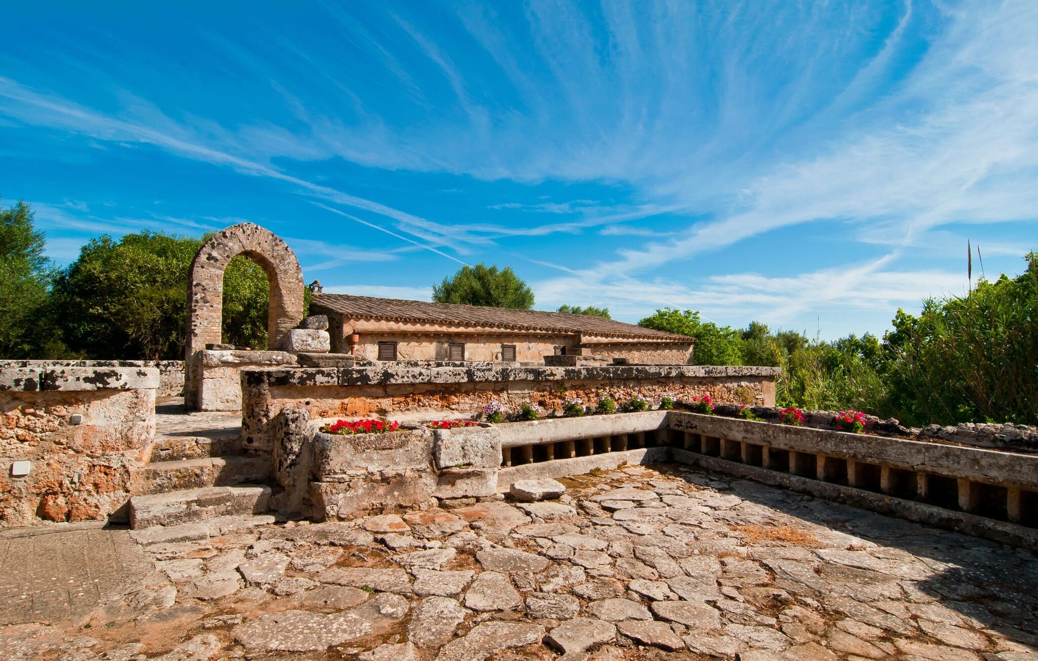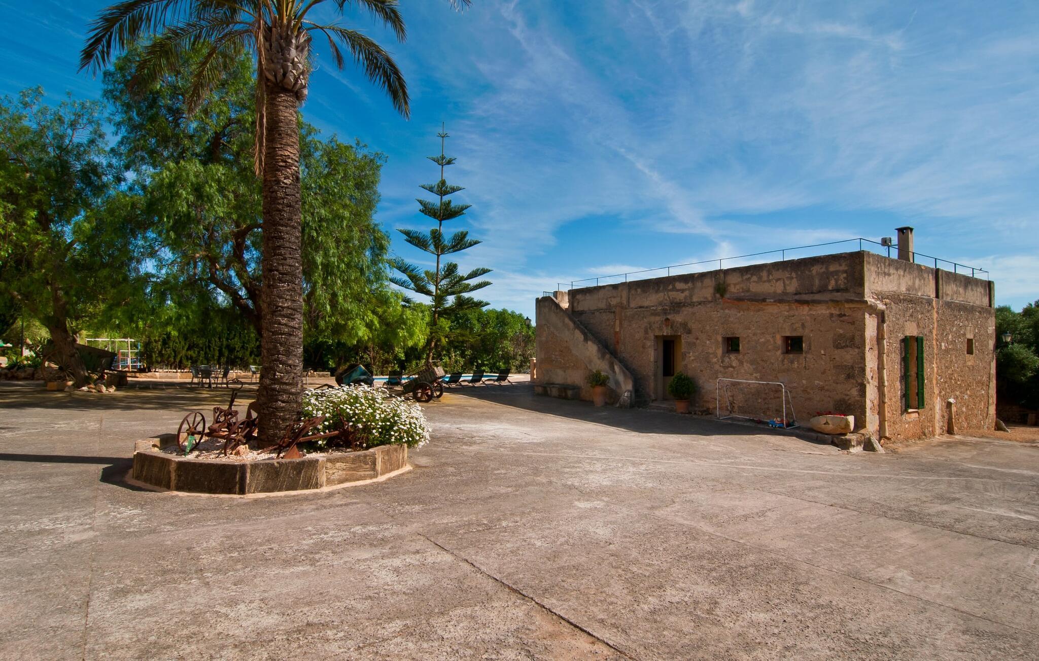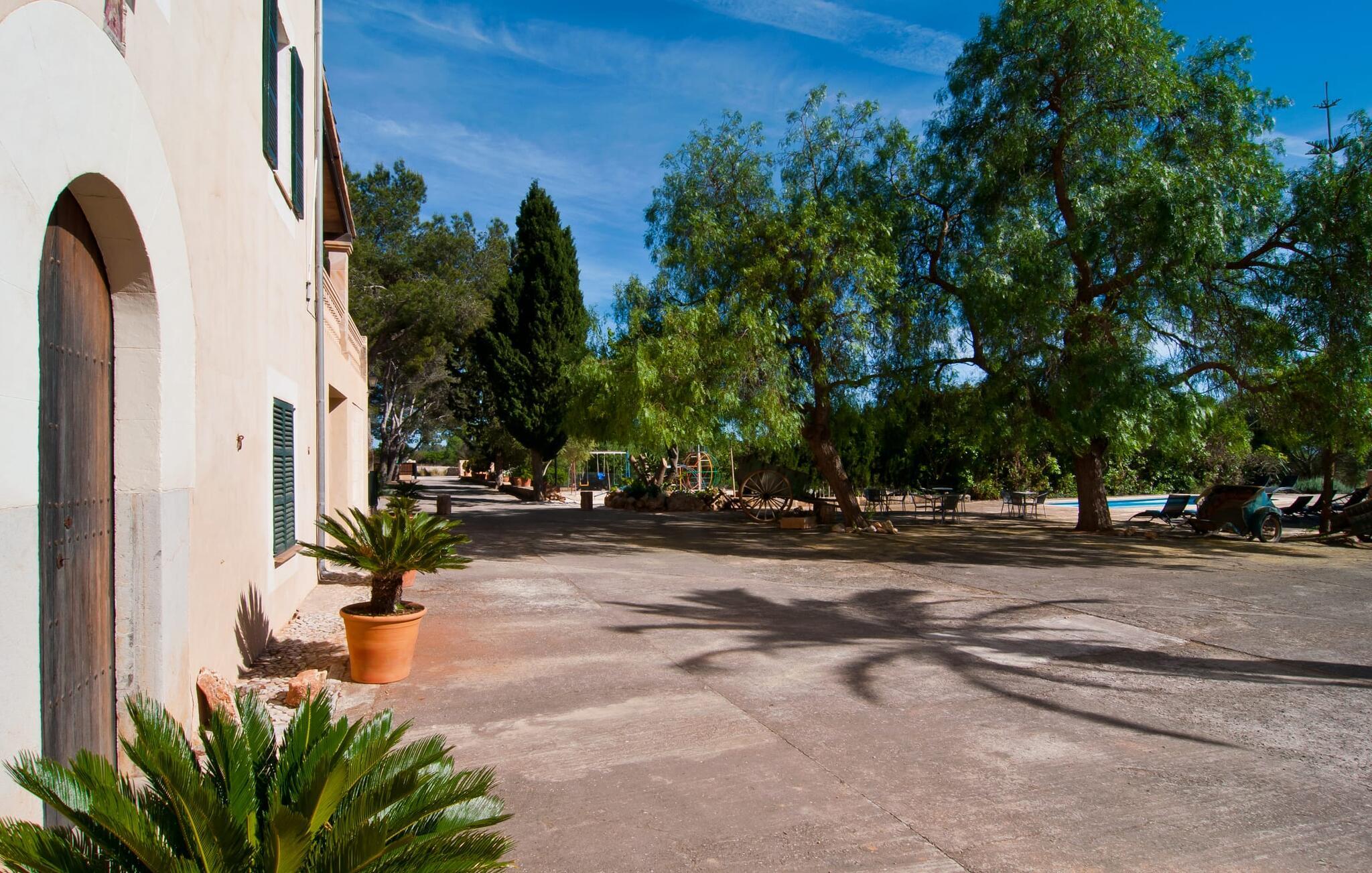 Den imponerende ejendom "Son Sureda" med sine 1.500.000 m² er blevet tilpasset feriegæster, unge og gamle efter 500 års landbrug, vindyrkning og husdyravl. Navnene på de elleve ferielejligheder, som er fordelt rundt om hovedhuset, borgmesterhuset og udhusene med et eller to dobbeltværelser, indikerer stadig deres tidligere anvendelse. På jeres ture rundt om de gamle mure vil I opdage mange gamle hestevogne og spændende landbrugsudstyr. På jeres egne små terrasser i stueetagen eller med udsigt kan I nyde jeres privatliv og få mulighed for at lære andre feriegæster at kende ved de mange borde og stole eller ved den fælles grill i den store indre gårdhave. I kan starte jeres Mallorca-morgen i den imponerende hvælving (de tidligere hestestalde) eller udenfor på det åbne område med en overdådig, ø-typisk morgenmad, som I kan bestille. To pools med liggestole og udendørs bruser, et soppebassin, en legeplads med gynger, sandkasse, klatrestativ, fodboldbane og hønsegårde sikrer afslapning for enlige rejsende og par samt for familier på bondegårdsferie. Vi er sikre på, at der er en lejlighed, der passer lige til jer. Måske er det "Samagatai", som kan oversættes til "gemmested", fordi badeværelset i denne lejlighed tidligere havde en lille forbindelsesdør, der førte til nabohuset. Melet var gemt her og blev hemmeligt malet i møllen om natten. jeres "Son Sureda"-rige ville bestå af et soveområde med to 0,90 x 2 m senge (og direkte adgang til tagterrassen), et badeværelse med bruser og en hyggelig stue med indbydende lænestole og et lille spisebord. På dage, hvor I ønsker at blive på ejendommen hele dagen, kan I tilberede snacks, salater og småretter i minikøkkenet med køleskab, to keramiske kogeplader, mikroovn og kaffemaskine. Fra balkonen (med bord, stole og parasol) har I en fantastisk udsigt over den indre gårdhave og kan muligvis se jeres børn lege der. Forkæl jer selv med en pause med en god bog i ny og næ. Og der er en række værdifulde destinationer: byliv eller havbrise? Fra jeres villa kan I nemt udforske de forskellige sider af øen. Godt 15 km væk venter strandene på soltilbedere, surfere og familier. Den rummelige Son Serra de Marina og den næsten to kilometer lange sandstrand mod Colònia de Sant Pere tilbyder plads nok til at sprede mere end blot et håndklæde. Hvis I vil nyde de blå nuancer fra oven, så tag til Betlem og klatre de 5 km til den lille Ermita. Naturligvis er mere krævende ruter til vandrestøvler og mountainbikes også mulige. Ma-3322, som er delvist hørbar afhængig af vindretningen, tager jer til byen Manacor for en spontan tur til den historiske bymidte eller for at shoppe på vitaminmarkedet. Hvis I vil besøge katedralen i Palma, skal I blot efterlade jeres bil på togstationen og tage bussen eller toget. Sommerhus på landet med masser af natur til villagæsterne. Føl jer hjemme på agroturismoen "Son Sureda", der ligger mellem fåregræsgange og vinmarker, som har elleve lejligheder og studiolejligheder med egen forplejning, en stor U-formet gårdhave og flere pools. Manacor, en af øens metropoler, ligger kun 9 km væk. Det er ideelt til shopping på det daglige frugt- og grøntmarked, til udflugter og til en afslappet middag på en restaurant. Og på Badia d'Alcúdia, i retning mod Son Serra de Marina og Colònia de Sant Pere, kan I stadig finde et par strande, der endnu ikke er overfyldte.