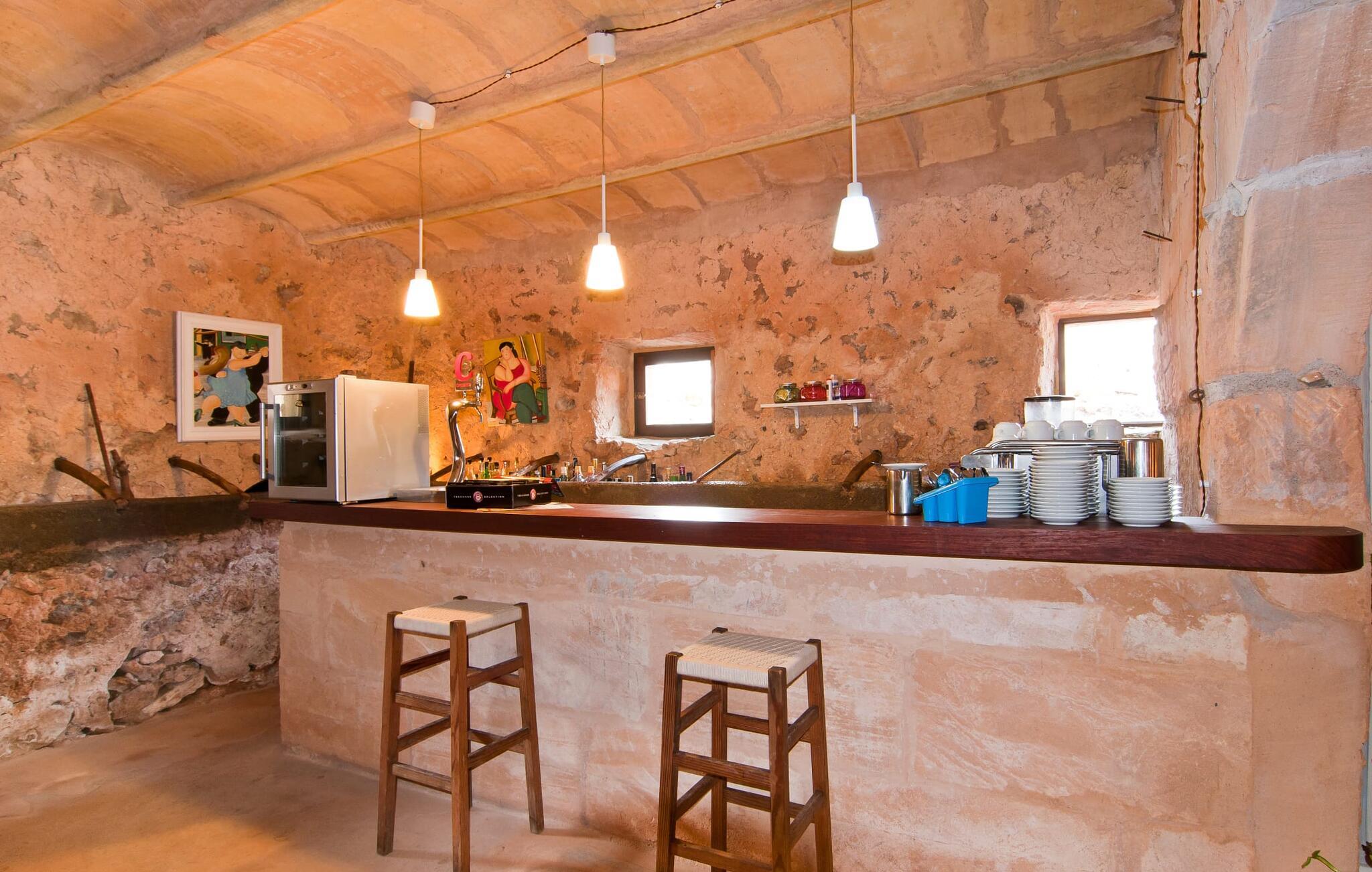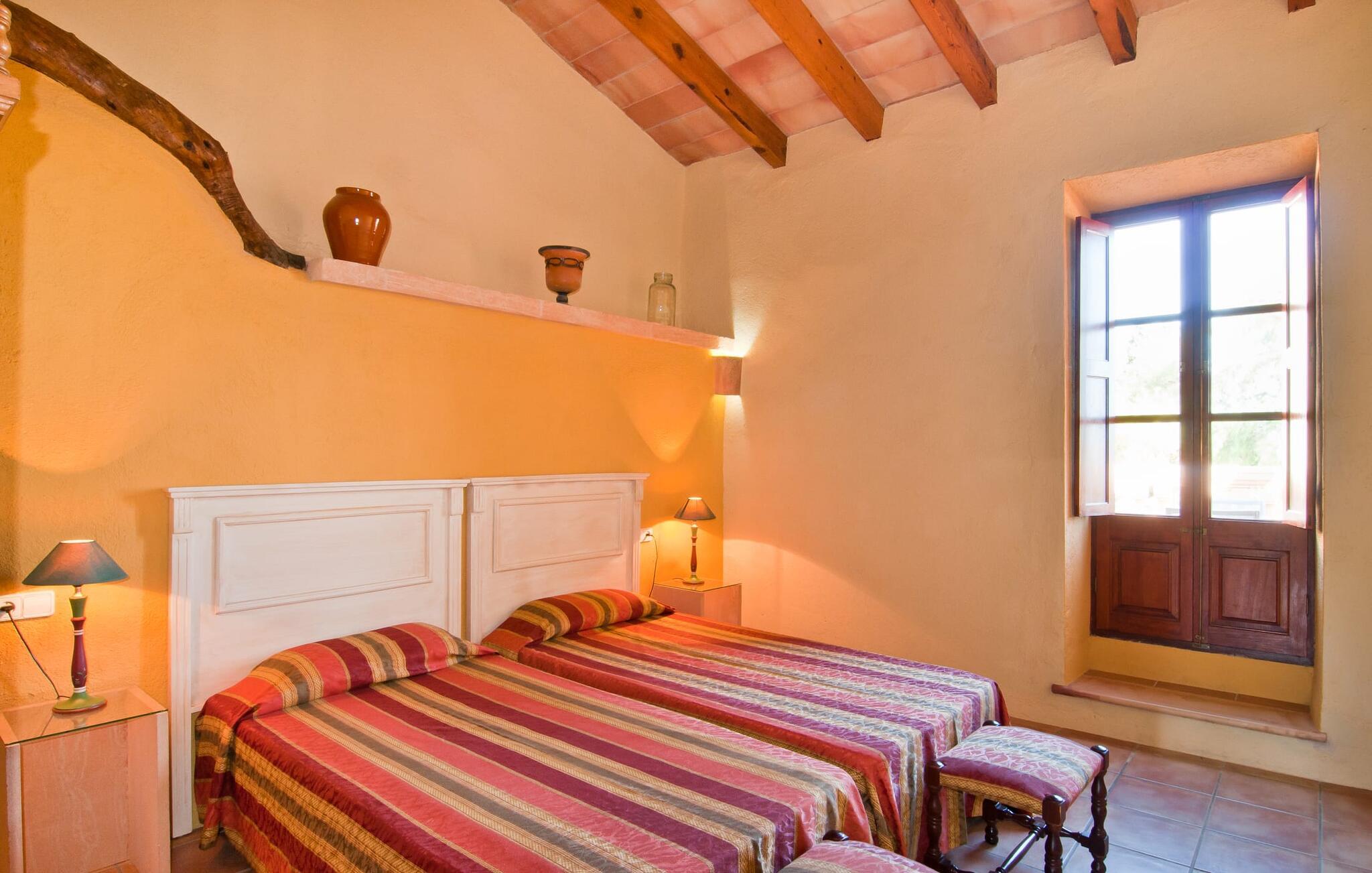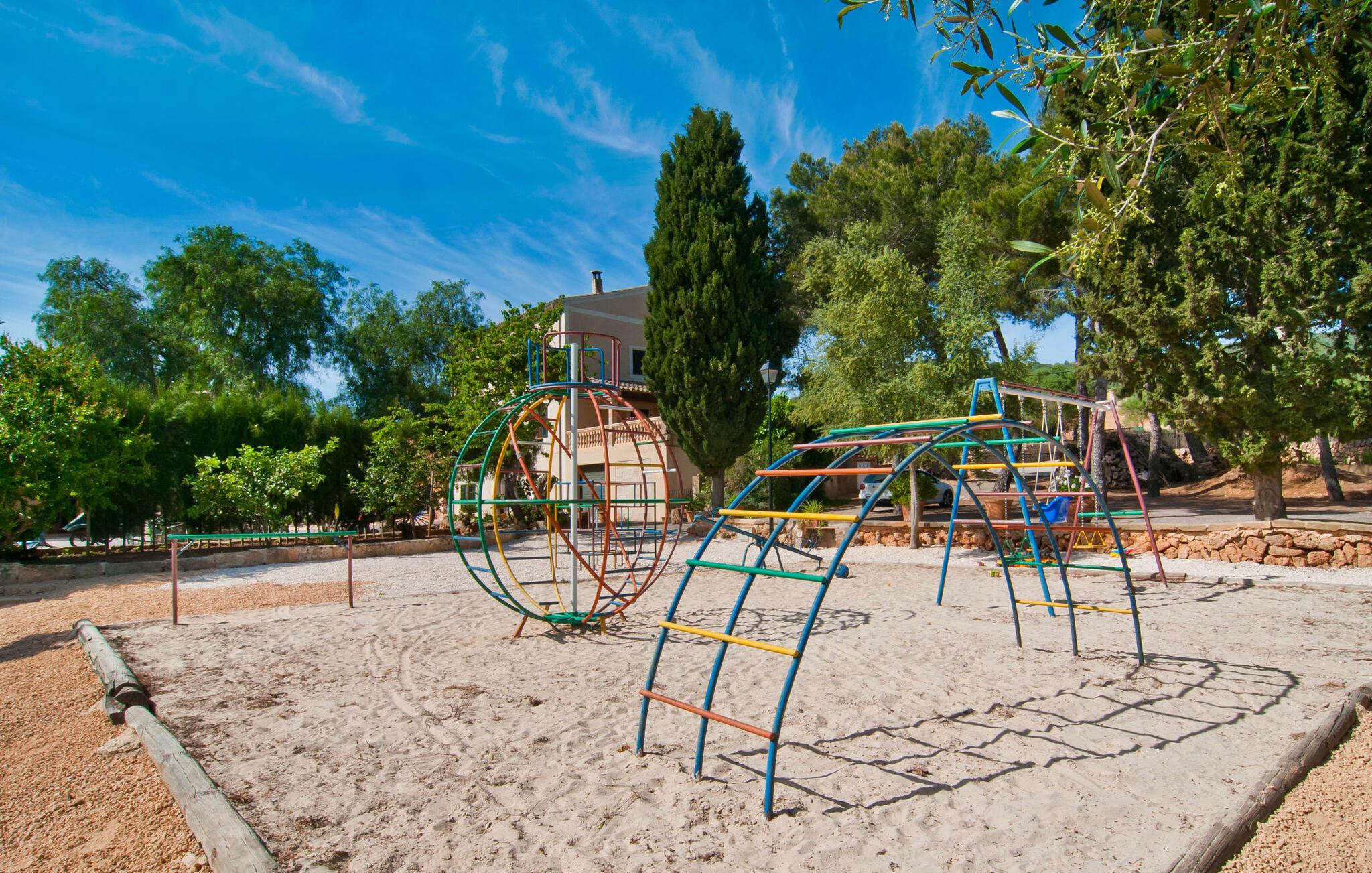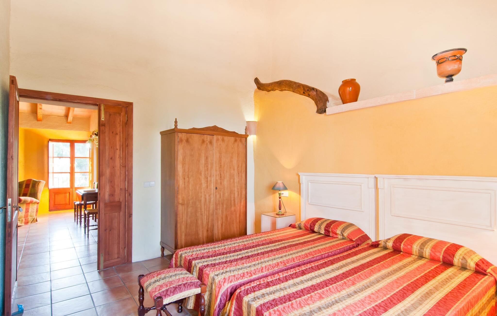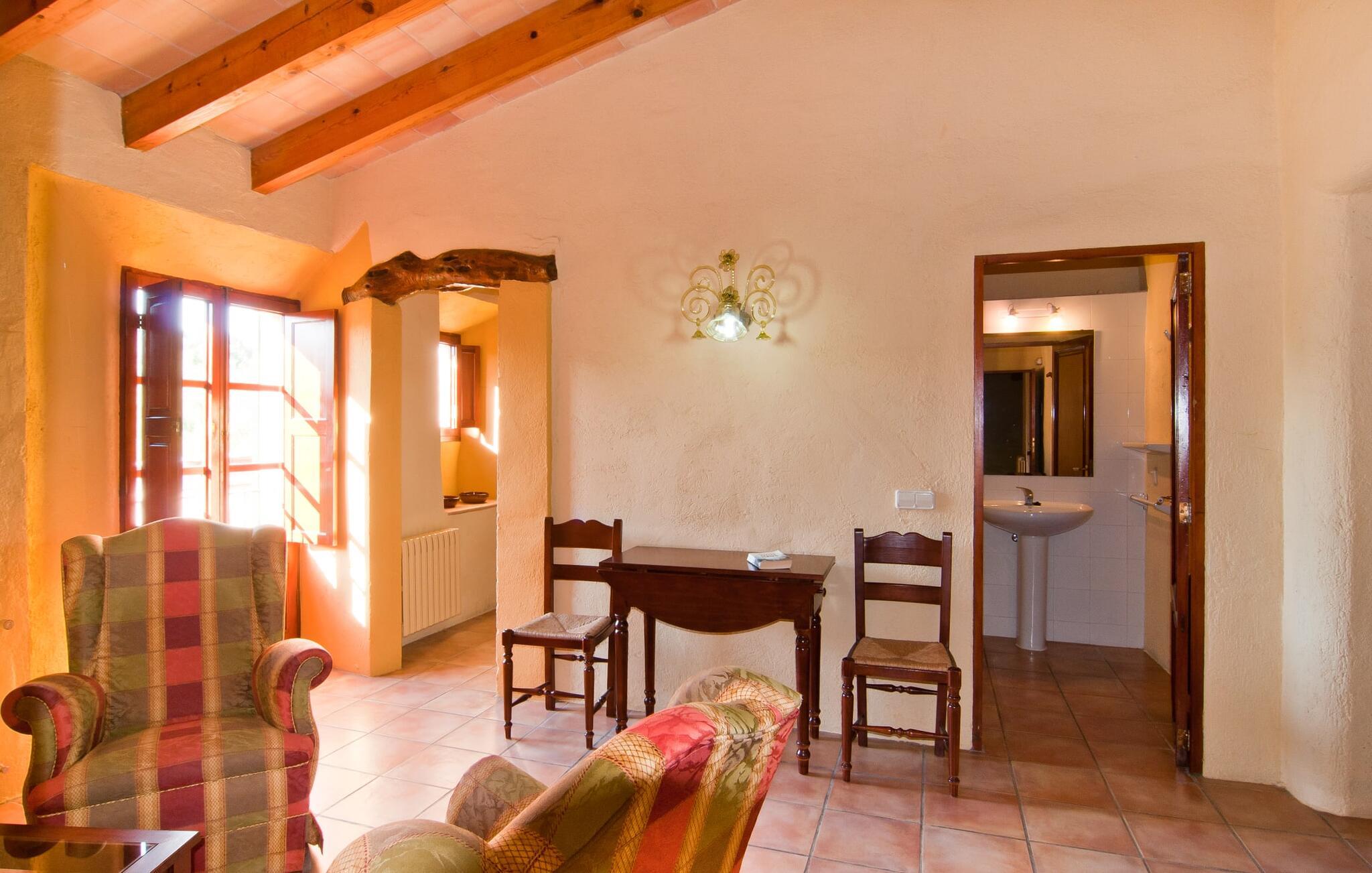 Den imponerende ejendom "Son Sureda" med sine 1.500.000 m² er blevet tilpasset feriegæster, unge og gamle efter 500 års landbrug, vindyrkning og husdyravl. Navnene på de elleve ferielejligheder, som er fordelt rundt om hovedhuset, borgmesterhuset og udhusene med et eller to dobbeltværelser, indikerer stadig deres tidligere anvendelse. På jeres ture rundt om de gamle mure vil I opdage mange gamle hestevogne og spændende landbrugsudstyr. På jeres egne små terrasser i stueetagen eller med udsigt kan I nyde jeres privatliv og få mulighed for at lære andre feriegæster at kende ved de mange borde og stole eller ved den fælles grill i den store indre gårdhave. I kan starte jeres Mallorca-morgen i den imponerende hvælving (de tidligere hestestalde) eller udenfor på det åbne område med en overdådig, ø-typisk morgenmad, som I kan bestille. To pools med liggestole og udendørs bruser, et soppebassin, en legeplads med gynger, sandkasse, klatrestativ, fodboldbane og hønsegårde sikrer afslapning for enlige rejsende og par samt for familier på bondegårdsferie. Vi er sikre på, at der er en lejlighed, der passer lige til jer. Måske er det "Samagatai", som kan oversættes til "gemmested", fordi badeværelset i denne lejlighed tidligere havde en lille forbindelsesdør, der førte til nabohuset. Melet var gemt her og blev hemmeligt malet i møllen om natten. jeres "Son Sureda"-rige ville bestå af et soveområde med to 0,90 x 2 m senge (og direkte adgang til tagterrassen), et badeværelse med bruser og en hyggelig stue med indbydende lænestole og et lille spisebord. På dage, hvor I ønsker at blive på ejendommen hele dagen, kan I tilberede snacks, salater og småretter i minikøkkenet med køleskab, to keramiske kogeplader, mikroovn og kaffemaskine. Fra balkonen (med bord, stole og parasol) har I en fantastisk udsigt over den indre gårdhave og kan muligvis se jeres børn lege der. Forkæl jer selv med en pause med en god bog i ny og næ. Og der er en række værdifulde destinationer: byliv eller havbrise? Fra jeres villa kan I nemt udforske de forskellige sider af øen. Godt 15 km væk venter strandene på soltilbedere, surfere og familier. Den rummelige Son Serra de Marina og den næsten to kilometer lange sandstrand mod Colònia de Sant Pere tilbyder plads nok til at sprede mere end blot et håndklæde. Hvis I vil nyde de blå nuancer fra oven, så tag til Betlem og klatre de 5 km til den lille Ermita. Naturligvis er mere krævende ruter til vandrestøvler og mountainbikes også mulige. Ma-3322, som er delvist hørbar afhængig af vindretningen, tager jer til byen Manacor for en spontan tur til den historiske bymidte eller for at shoppe på vitaminmarkedet. Hvis I vil besøge katedralen i Palma, skal I blot efterlade jeres bil på togstationen og tage bussen eller toget. Sommerhus på landet med masser af natur til villagæsterne. Føl jer hjemme på agroturismoen "Son Sureda", der ligger mellem fåregræsgange og vinmarker, som har elleve lejligheder og studiolejligheder med egen forplejning, en stor U-formet gårdhave og flere pools. Manacor, en af øens metropoler, ligger kun 9 km væk. Det er ideelt til shopping på det daglige frugt- og grøntmarked, til udflugter og til en afslappet middag på en restaurant. Og på Badia d'Alcúdia, i retning mod Son Serra de Marina og Colònia de Sant Pere, kan I stadig finde et par strande, der endnu ikke er overfyldte.