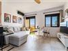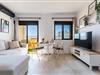 På 1. etage: (åbent køkken(spisebord, elkedel, brødrister, kaffemaskine, ovn, mikrobølgeovn, køleskab, vaskemaskine), stue / spisestue(Fjernsyn, spisebord, sofahjørne, balkon, klimaanlæg), soveværelse(dobbeltseng), badeværelse(bruser, håndvask, toilet, føntørrer)) have, swimmingpool(deles med andre gæster)