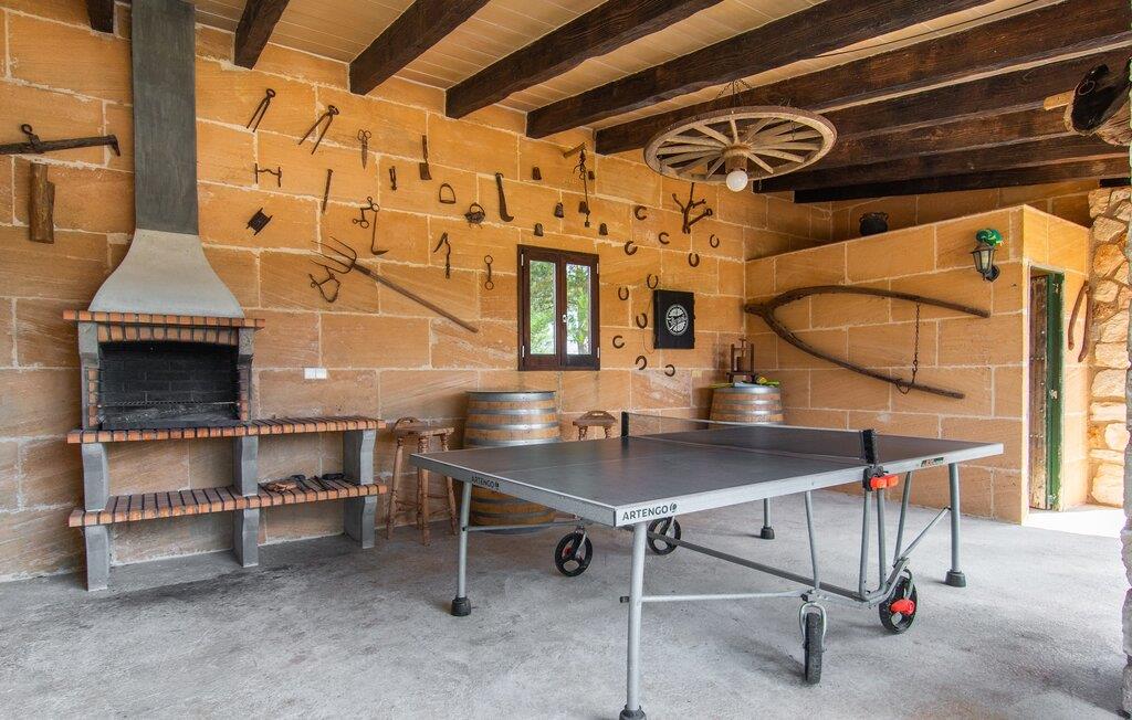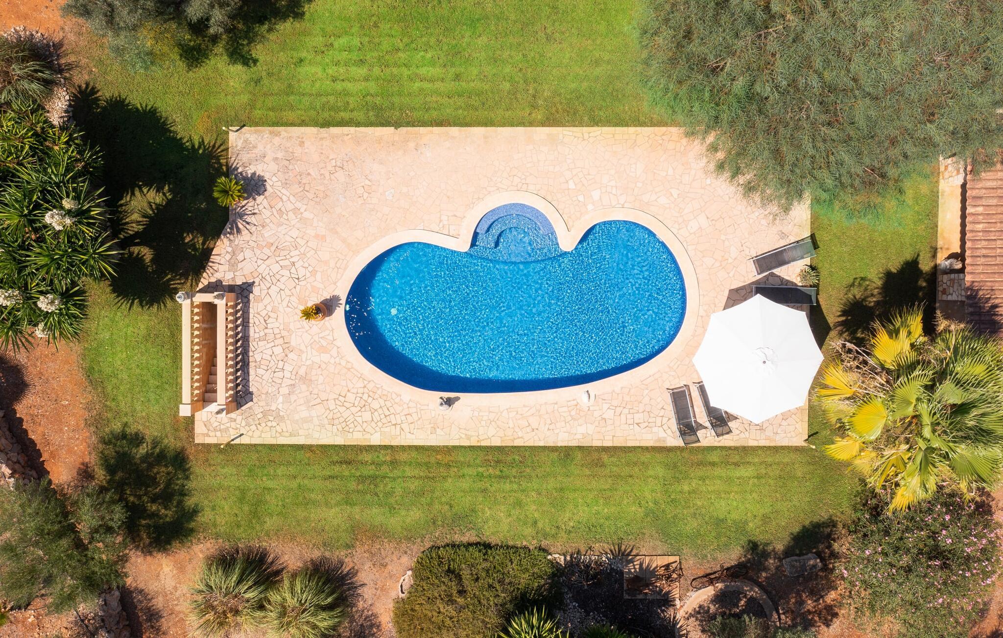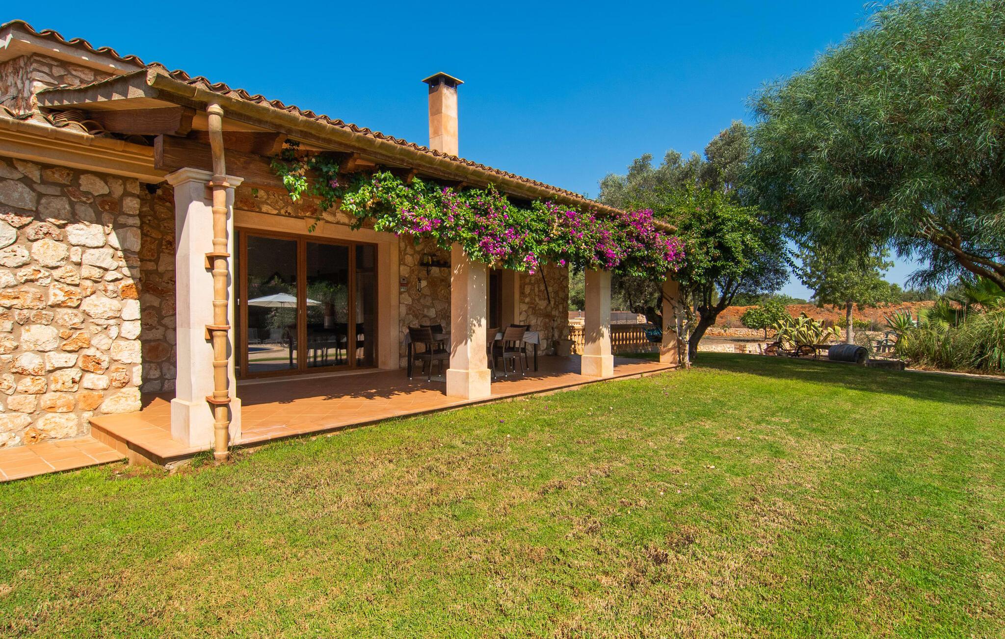 Er I Mallorca-fan og leder efter fred og ro? Eller vil I være det? Under alle omstændigheder, læs videre – det vil være det værd. Villa "Ailen" tilbyder et oase-lignende sted, hvor I kan nyde uforstyrret komfort og afslapning uden at skulle give afkald på forbindelsen til øens infrastruktur. Ejendommen, spækket med mandel- og oliventræer, ligger i landlige omgivelser, omgivet af marker og store åbne vidder. I vil ikke kunne vente med at tage plads i den smukke have, prydet af en smuk grøn græsplæne, hvor I kan sidde, læne jer tilbage eller se børnene lege. Den store pool i sin oprindelige form er flisebelagt med smukke, dybblå mosaikker og inviterer jer til at tage en lang svømmetur på varme dage. Den er over 11 m lang og varierer i dybden fra behagelige 1,2 m til 1,7 m En halvcirkelformet trappe fører jer nemt til poolen, hvor der også er et fantastisk spabad. På den omkringliggende terrasse, som er udstyret med liggestole og parasoller, vil enhver soltilbeder finde et sted efter deres smag. De omkringliggende træer skaber en vidunderlig idyllisk og malerisk atmosfære, hvor I nemt kan slappe af og give slip. Ønsker I en overdækket siddeplads ved et bord, finder I den perfekte plads lige ved siden af huset. Sid foran naturstensfacaden med elegante fliser under fødderne og et synligt bjælkeloft ovenover - I vil opdage, at dette er et fremragende sted til måltider og mere. Der er plads nok til alle ved spisebordet. En anden overdækket plads nær poolen danner grillpladsen - perfekt til at mødes på en lun aften og smide noget på grillen. Rent praktisk har udendørsarealet også et lille toilet. En behagelig lys atmosfære præger villaens indre. Naturfarvede lofter, vægge og gulve, suppleret med nøje udvalgte møbler, skaber en behagelig, harmonisk atmosfære. Det store, moderne køkken med sine magentafarvede bordplader udgør husets hjerte. Det er fuldt udstyret, så I kan få mest muligt ud af alle fordelene ved selvforplejning. Både en amerikansk og en italiensk kaffemaskine sikrer, at I ikke behøver at gå uden jeres yndlings varme drik under jeres morgenmorgenmad på terrassen. Det runde bord i køkkenet er også et hyggeligt sted at spise sammen indendørs. Et særligt kendetegn er det originale vindue til stuen, som også har en attraktiv spiseplads og et hyggeligt sofaområde til omfattende afslapningsstunder. Det store fladskærms-tv med satellitforbindelse opfylder alle medieunderholdningsbehov, mens pejsen skaber en hyggelig atmosfære på kølige aftener. Et soveværelse i moderne design med eget badeværelse og walk-in-closet giver plads nok; De to andre soveværelser har en munter, rustik atmosfære. De to badeværelser er udstyret i moderne stil og tilbyder plads nok til alle, der rejser med jer. Den elegante villa "Ailen" er beliggende i en vidunderlig rolig beliggenhed i den sydøstlige del af øen, cirka 8 km nordvest for den lille mallorcanske by Felanitx. Det er derfor nemt at nå til daglige indkøb eller caféer. Manacor, Mallorcas næststørste kommune, ligger kun 20 km væk. Strandene i Cala Gran, Cala Sa Nau og Cala d'Or ligger hver kun omkring 22 km væk.