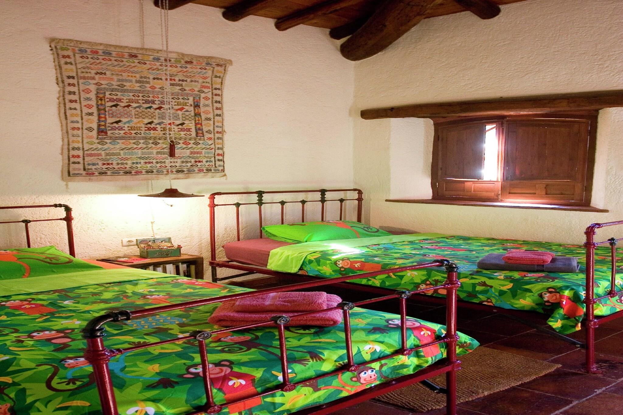 Feriehuset åbner ud til en terrasse med udsigt over den fredfyldte flod, der tilbyder et perfekt sted at slappe af og nyde den naturlige skønhed. Gæsterne har også adgang til et rummeligt, veludstyret køkken designet til at tilberede måltider til større grupper, som deles med besøgende, der bor i de mindre hytter i nærheden. En separat fælles opholdsstue tilbyder et hyggeligt samlingssted med komfortable stole ved pejsen, et tv og et lille bibliotek, der er specielt sammensat til gæster. Spisebordene her kan arrangeres individuelt eller kombineres til at være vært for gruppemiddage eller buffetmåltider, hvilket skaber en varm og social atmosfære. Beliggende under gamle egetræer er en privat swimmingpool udelukkende tilgængelig for gæster, åben fra midten af maj til midten af september. For en unik oplevelse kan guidede æselture udforske det smukke omkringliggende landskab. Kun en kort gåtur ned ad en charmerende landevej omkranset af stenmure fører til den maleriske landsby Alájar, hvor hvidkalkede huse, brostensbelagte gader, indbydende barer og hyggelige restauranter venter. Kæledyr er velkomne mod et ekstra gebyr på EURO20 pr. ophold, så pelsede venner også kan deltage i eventyret. Bemærk: Kun katte og ufarlige hunderacer, som defineret i spansk lov, accepteres.