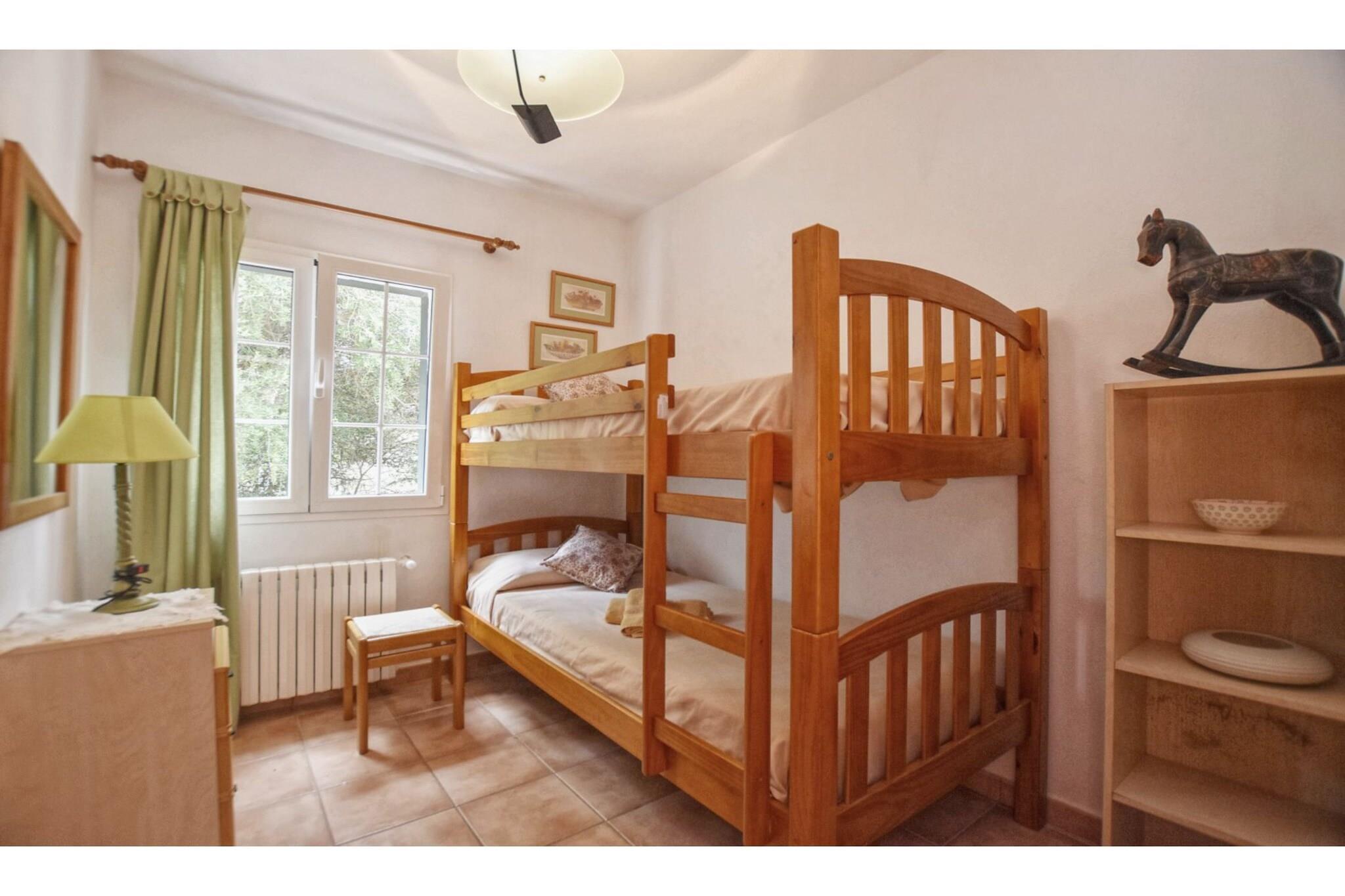 Fredelig Garden Escape Denne nyligt restaurerede villa i Alaior tilbyder et roligt tilflugtssted for op til seks gæster. Med tre soveværelser og et gennemtænkt udformet opholdsrum er det ideelt til familier eller små grupper, der søger komfort og ro. Træd udenfor til en privat swimmingpool eller slap af i den frodige have, hvor liggestole og en parasol inviterer dig til at slappe af under middelhavssolen. Interiøret er lyst og praktisk, med aircondition og varme, der sikrer komfort hele året. Praktisk lokal adgang Villaen er perfekt placeret til daglige behov og lokale oplevelser. Få fat i det nødvendige kun 2 km væk, eller nyd traditionelle spanske retter på nærliggende restauranter kun 4 km fra dit dørtrin. For sol og sand er stranden en kort 6 km kørsel, mens eventyrlystne besøgende kan udforske vandsport 8 km væk. Tennisbaner og en golfbane er også inden for rækkevidde, som tilbyder aktive aktiviteter for enhver gæst. Hjemmekomfort inkluderet Indenfor finder du et fuldt udstyret køkken, spisepladser og hyggelige siddepladser, der er perfekte til fælles måltider og afslapning. To badeværelser plus en udendørs bruser gør familieophold bekvemt, mens privat parkering tilføjer ekstra lethed. Villaens indhegnede, overdækkede terrasse og have giver trygge og indbydende rum til at nyde stille stunder eller samles. Bemærk: Af hensyn til roen er villaen ikke tilgængelig for grupper under 25 år, og kæledyr er ikke tilladt.