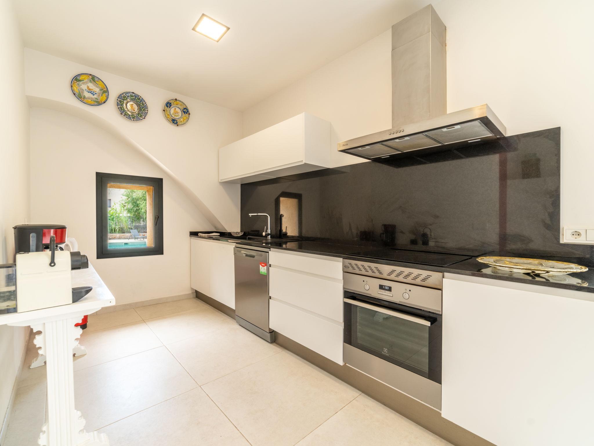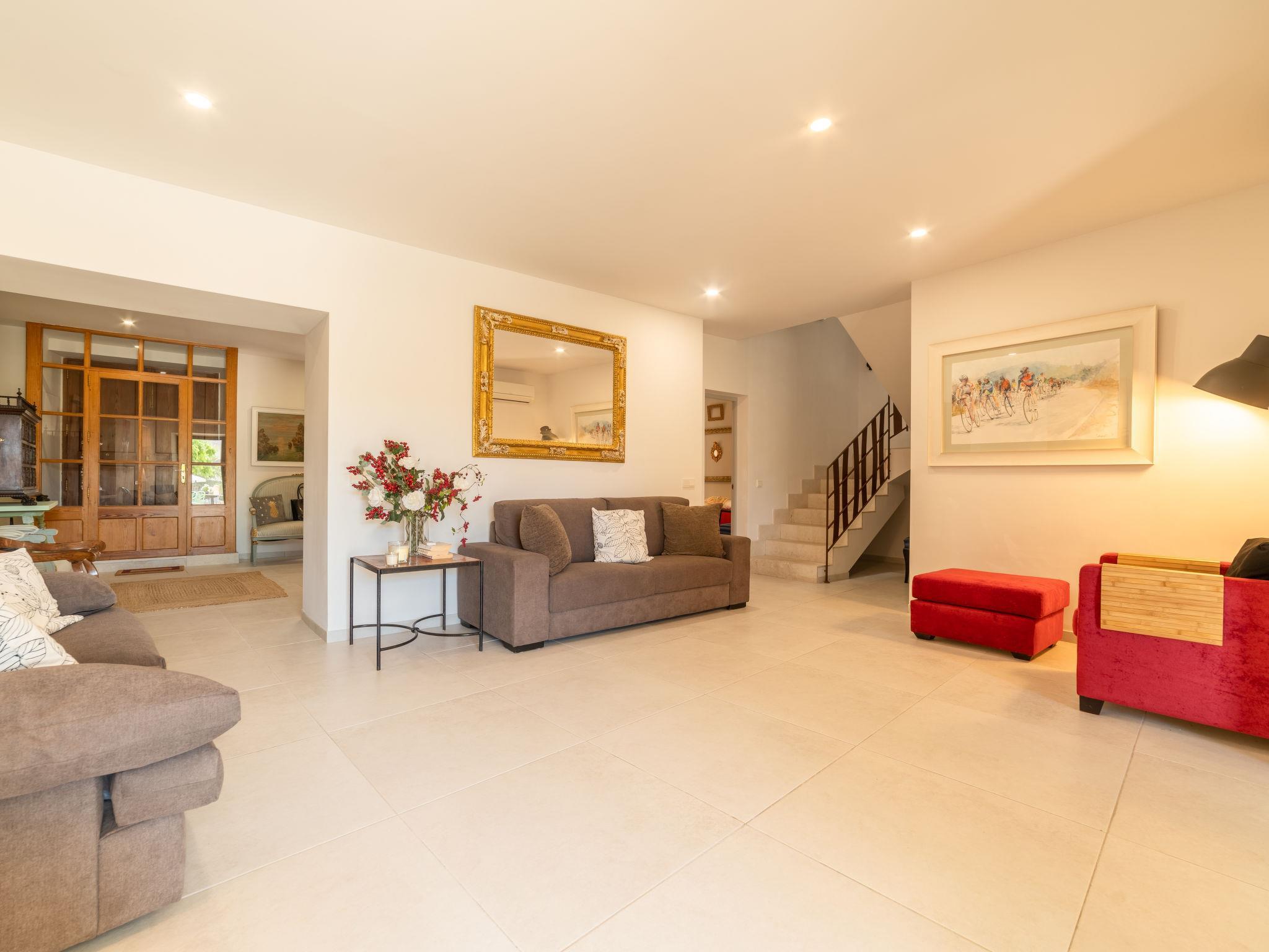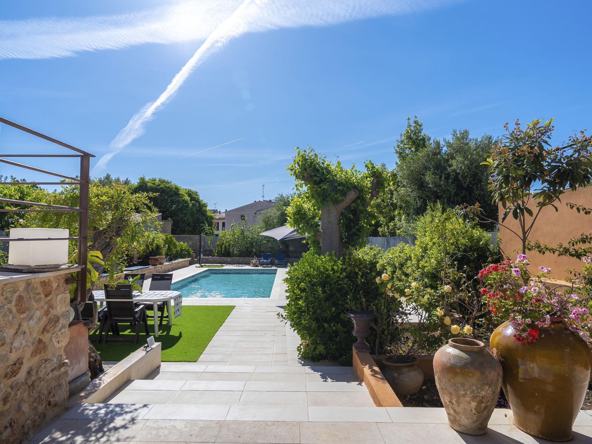 Alaro 31 km from Flughafen: Large, modern, beautiful villa "Can Rochet", 3 storeys. 200 m from the centre of Alaro, in a quiet position, 30 km from the sea, 30 km from the beach. Private: property 600 m2 (fenced), well-kept garden (fenced) wildlife garden and trees, swimming pool (10 x 4 m, seasonal availability: 01.Jan. - 31.Dec. pool opening hours: 09:00-22:00). Outdoor shower, table tennis, terrace (50 m2), garden furniture, barbecue. In the house: WiFi, air conditioning, washing machine, tumble dryer. Roofed, parking (for 2 cars) on the premises. Grocery, restaurant, café 200 m, 5 minute walk to the centre, bus stop 300 m, sandy beach 30 km. Nearby attractions: Castillo Alaro 5 km. Please note: car recommended. Groups of teenagers on request only.
