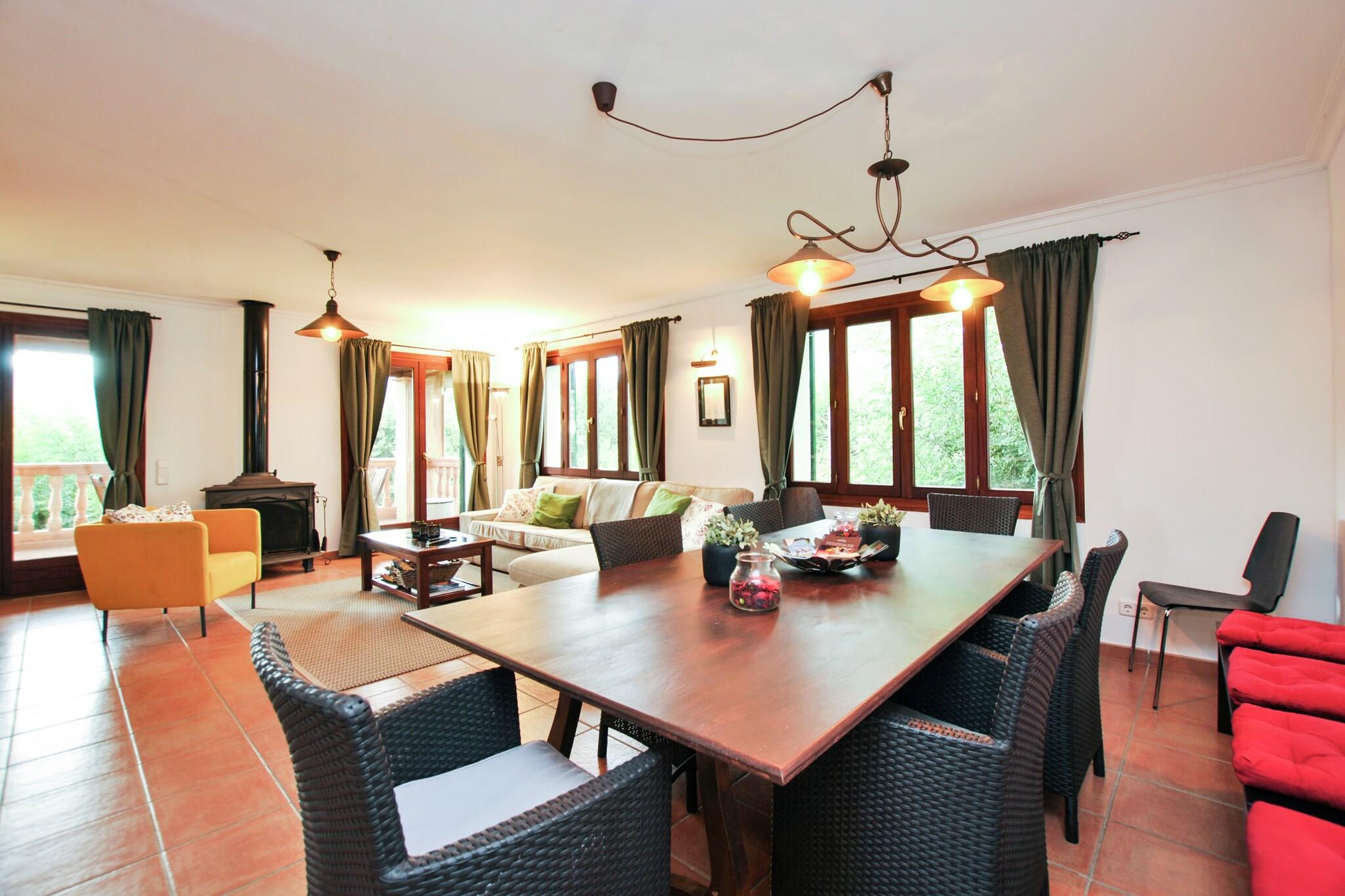 Rummeligt Mansion Retreat Beliggende i Alarós naturskønne landskab tilbyder dette elegante palæ med seks soveværelser plads og komfort til op til 12 gæster. Med to etager designet til afslapning omfatter ejendommen luftige stuer med pejse, moderne køkkener og indbydende terrasser. En privat swimmingpool sidder i hjertet af den anlagte have, perfekt til at køle af efter en dag med udforskning. Familier vil også sætte pris på børnenes senge, høje stole og åbne områder til at samles. Udforsk Alaró & Beyond Kun 5 km væk byder den historiske by Alaró dig velkommen med smalle gader, lokale butikker og ugentlige markeder. En kort køretur bringer dig til Inca, kendt for sine lædervarer og travle bymidte, mens strandelskere kan tage til Playa el Molinar, kun 30 km væk. Friluftsentusiaster kan vandre op til Castell d'Alaró for at få panoramaudsigt eller nyde at cykle gennem nærliggende stier. Golfentusiaster vil finde Son Termes-banen inden for 30 minutters rækkevidde, hvilket gør dette hjem til et alsidigt valg for forskellige interesser. Lokale smagsoplevelser i nærheden Madelskere kan udforske det traditionelle mallorcanske køkken i Alaró og nærliggende Santa María del Camí, hvor rustikke restauranter og vinkældre serverer autentiske smagsoplevelser. Festival Park-outlet, kun 17 km væk, kombinerer shopping med spisning til en heldagsudflugt. Tilbage i villaen kan aftenen tilbringes omkring grillen eller nyde måltider på balkonen, mens du ser solnedgangen over bjergene, hvilket gør hver dag til en mindeværdig oplevelse.
