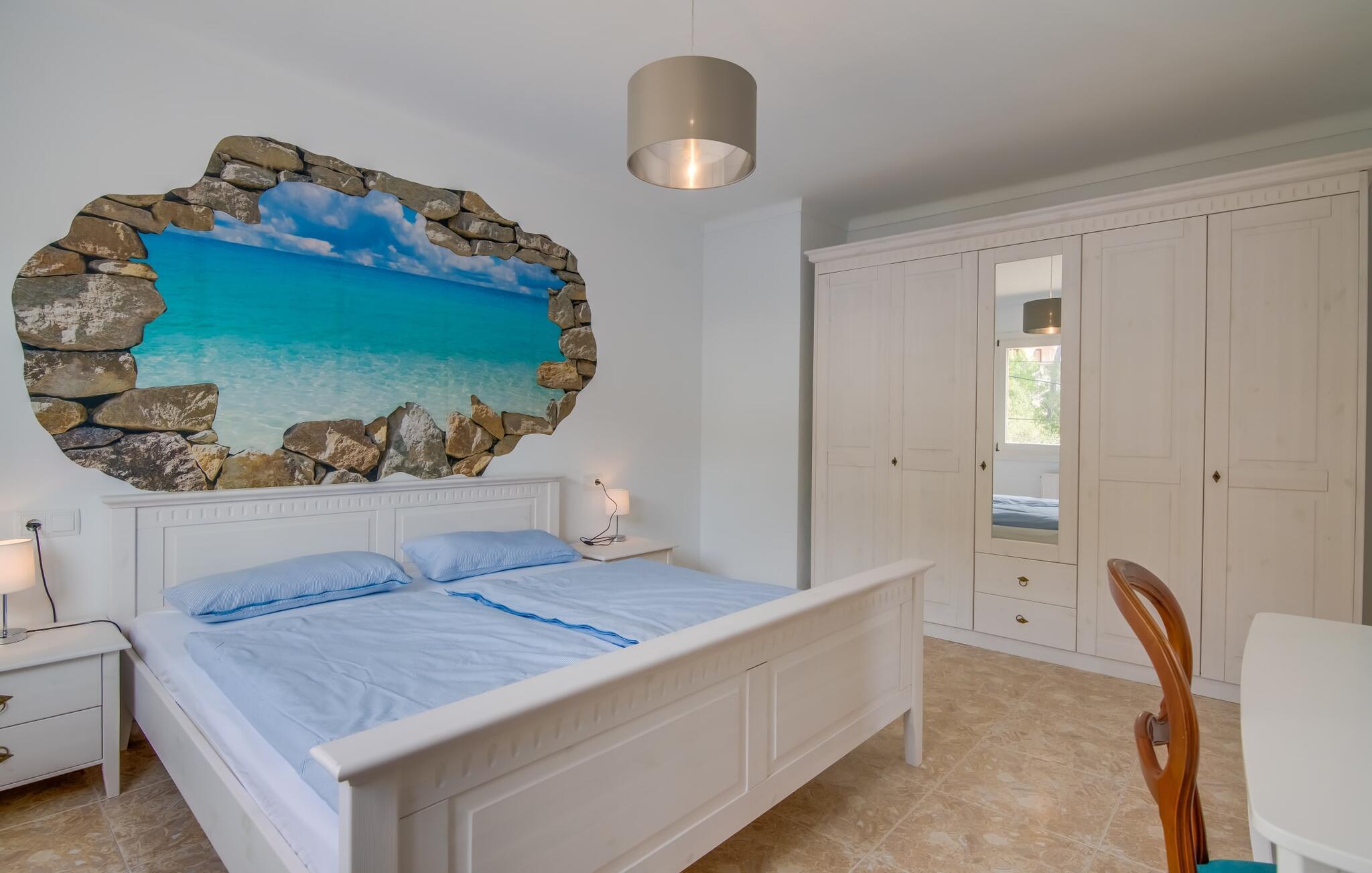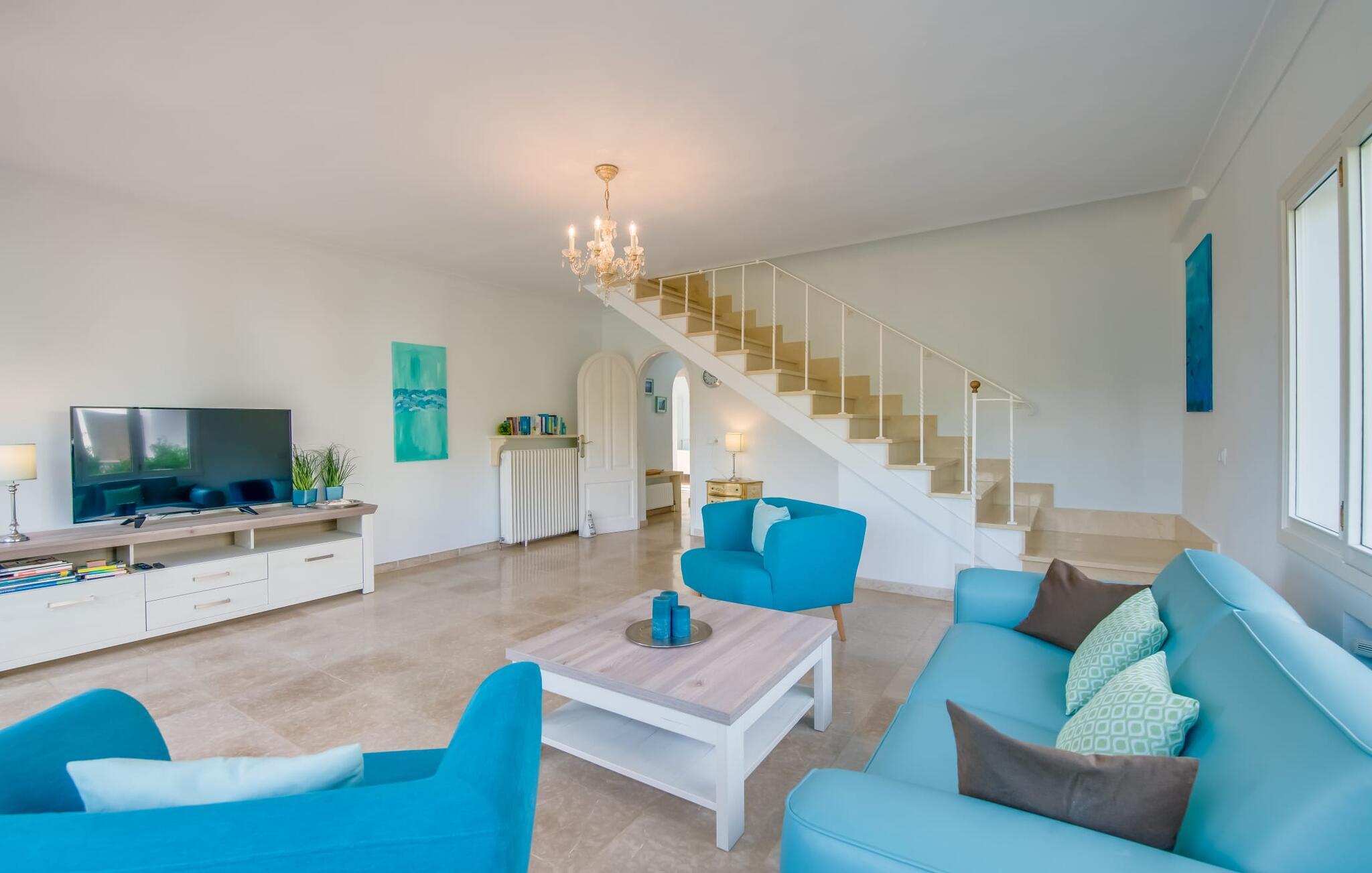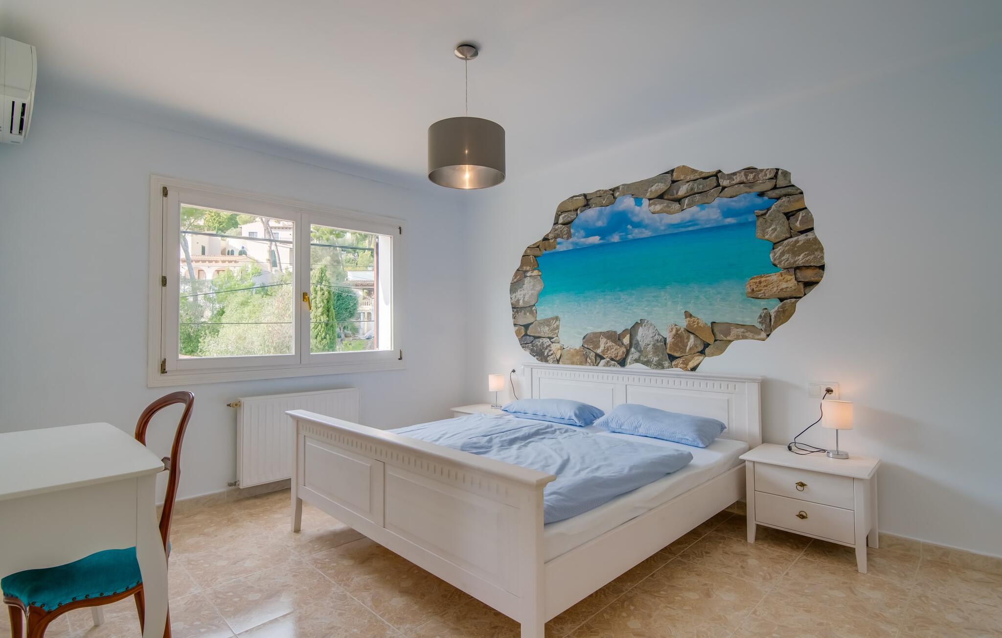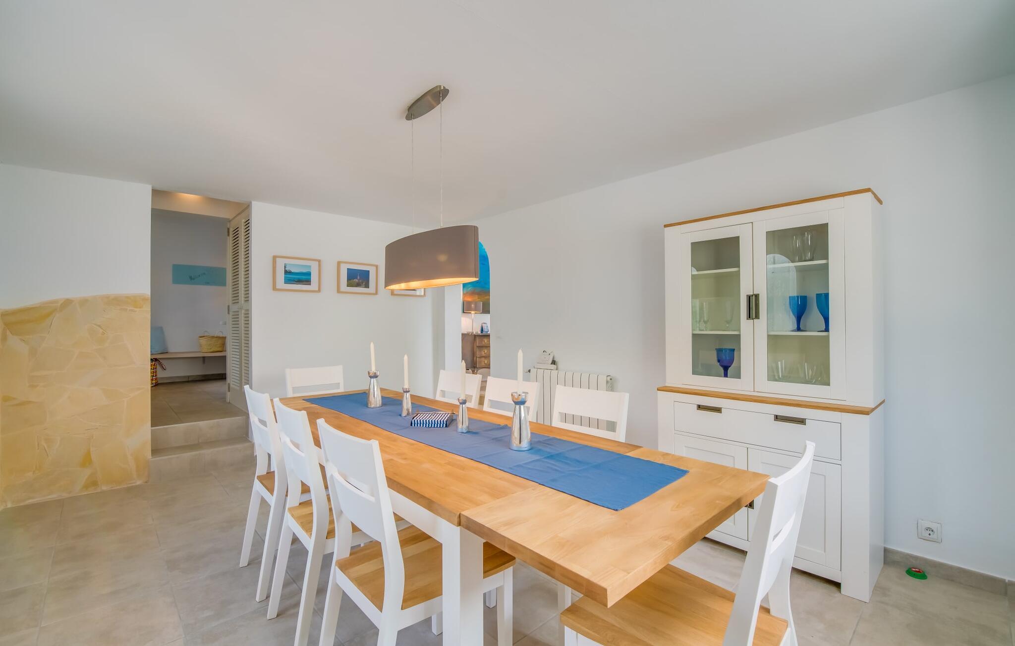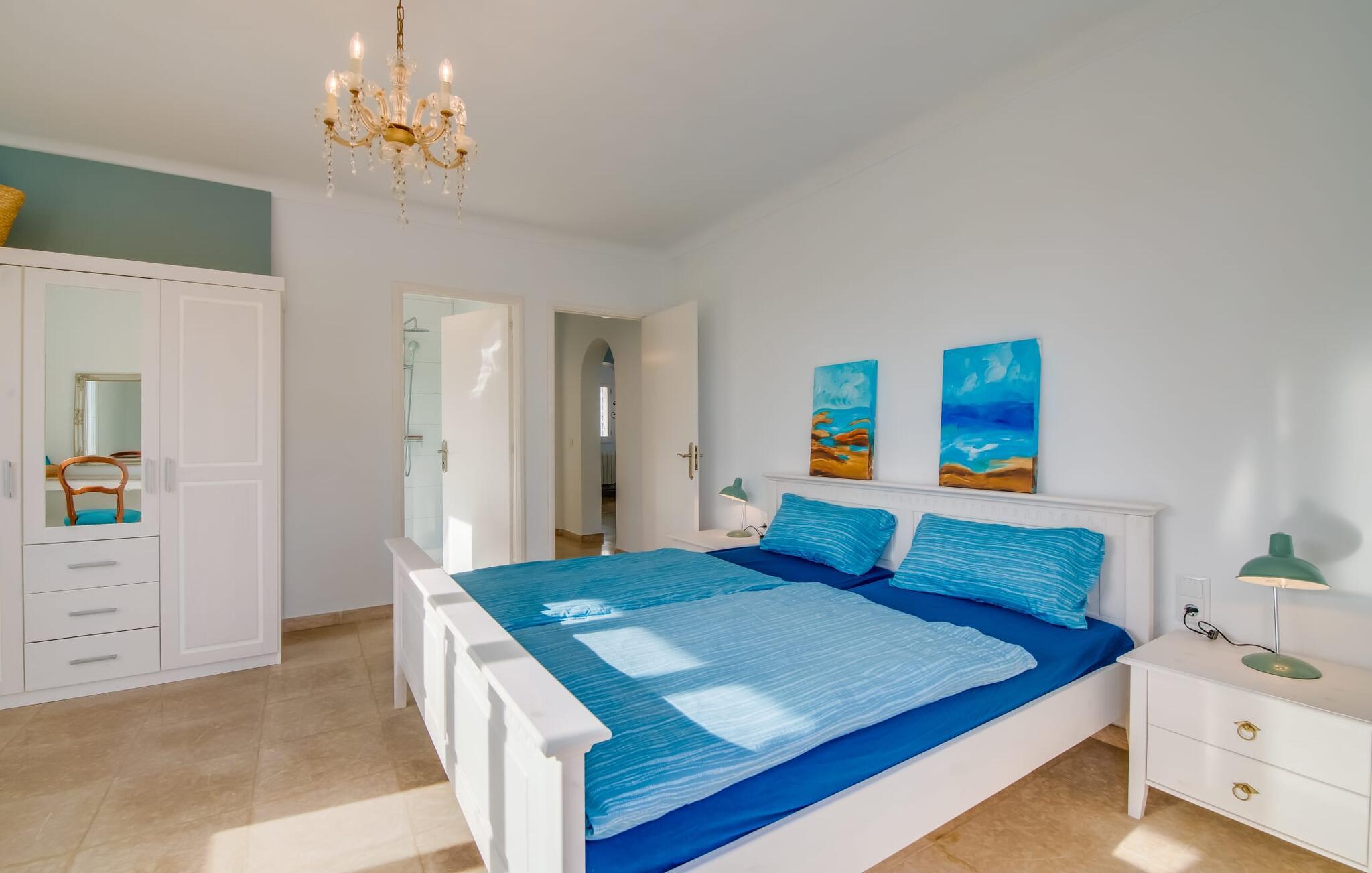 Villa “Albatros” nær Canyamel i det østlige Mallorca er en smukt renoveret ejendom på en grøn bakke med en betagende udsigt over Middelhavet. Lige under 2 km fra den nærmeste by tilbyder denne villa et perfekt tilflugtssted for feriegæster. Den store pool foran den flisebelagte terrasse med sandsten inviterer jer til at tage en forfriskende svømmetur, mens komfortable liggestole er et perfekt sted at slappe af. På den overdækkede terrasse kan gæsterne spise al fresco ved et rustikt træbord, suppleret med en hyggelig vægbænk og havestole. Villaens indre har en frisk maritim æstetik med lyse hvide farver, rig turkis og bløde sandtoner, der fremkalder en strandatmosfære. Moderne møbler beriger opholdsrummene, som omfatter et elegant køkken, en spisestue og en stue med en imponerende lysekrone. I stueetagen er der to soveværelser med dobbeltsenge med et fælles badeværelse en suite, mens den øverste etage kan bruges helt separat: den byder også på to soveværelser med dobbeltsenge og et badeværelse, et lille køkken og en stue, hvilket gør den ideel til familier, der rejser sammen. Den rummelige villa "Albatros" putter sig harmonisk i en grøn bakke og ligger kun 1,7 km fra det afslappende feriested Canyamel på det østlige Mallorca. Gå ikke glip af en tur til den smukke by Artà, kun 10,2 km væk. Den nærliggende Playa de Canyamel-strand er virkelig smuk, men gåturen til den smukke lille bugt Cala Rotja er endnu kortere - kun omkring 400 m. Aircondition er inkluderet i prisen, når det bruges korrekt. I sjældne tilfælde vil I blive opkrævet gebyret kontant på stedet.