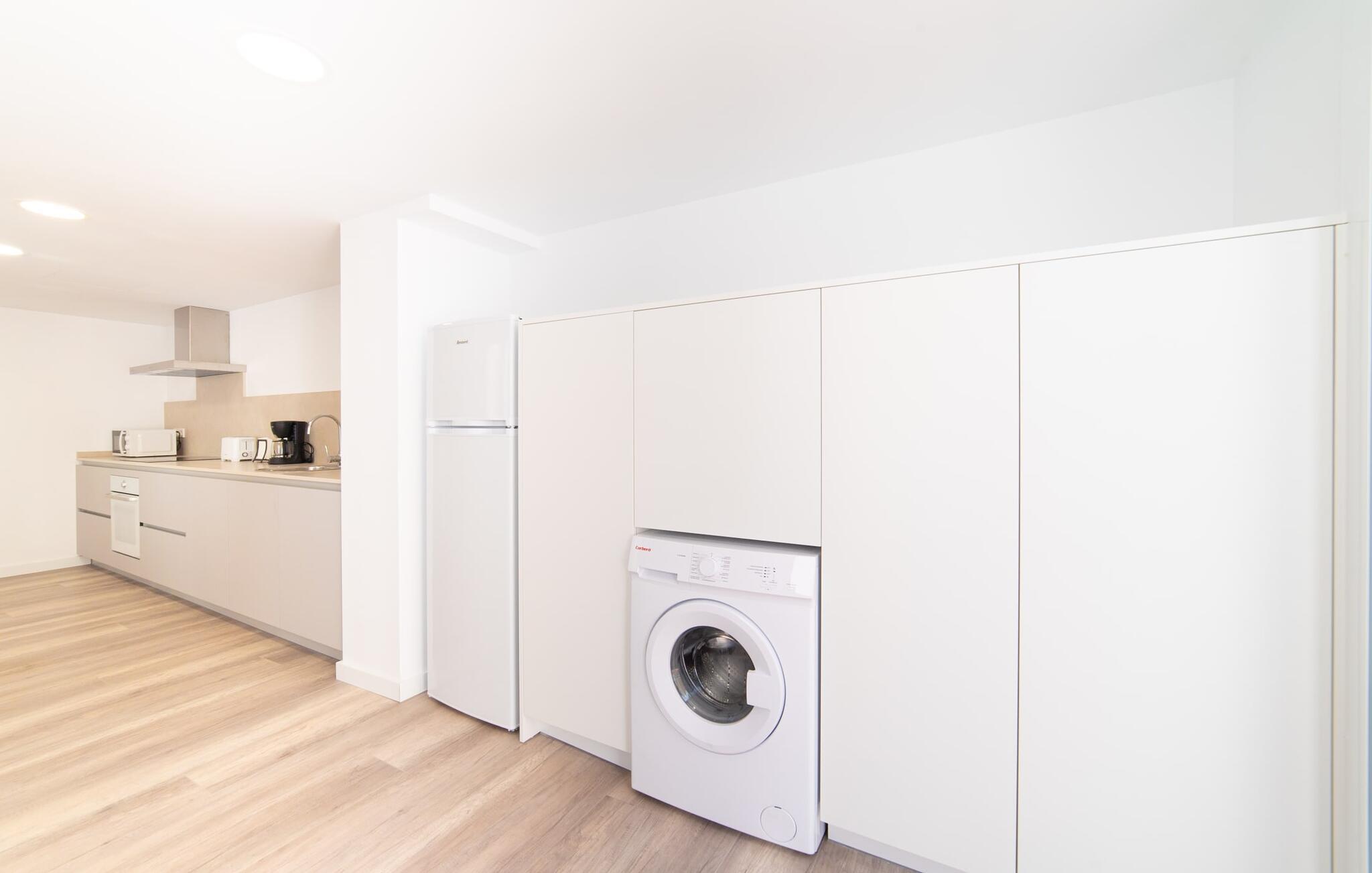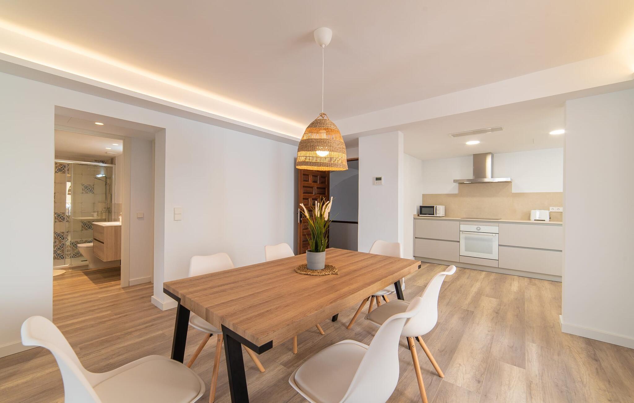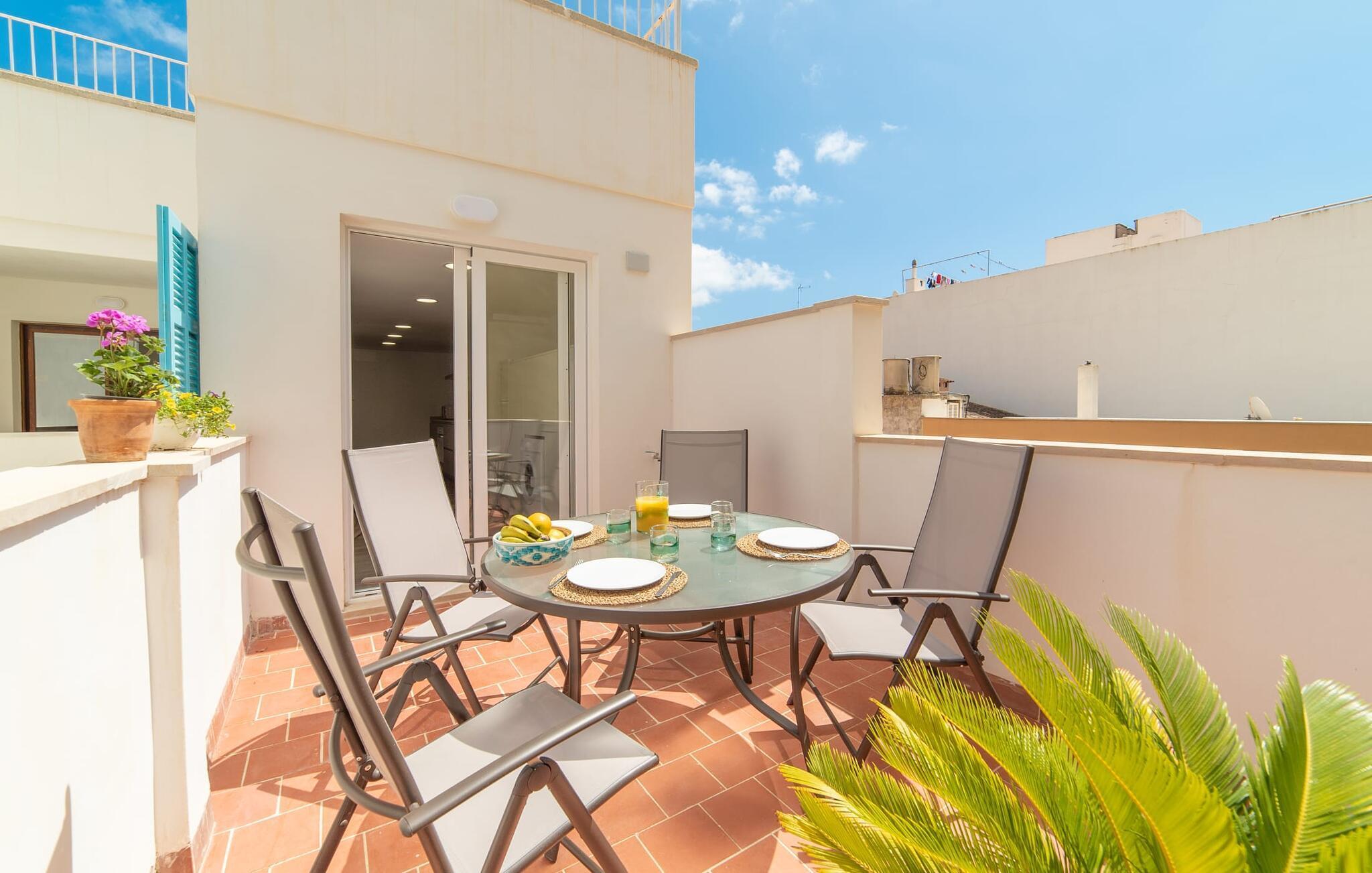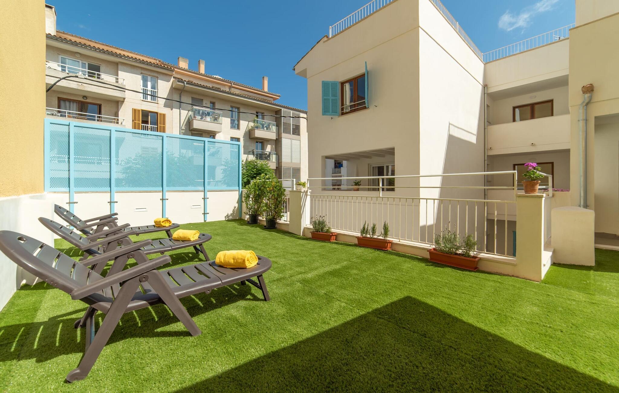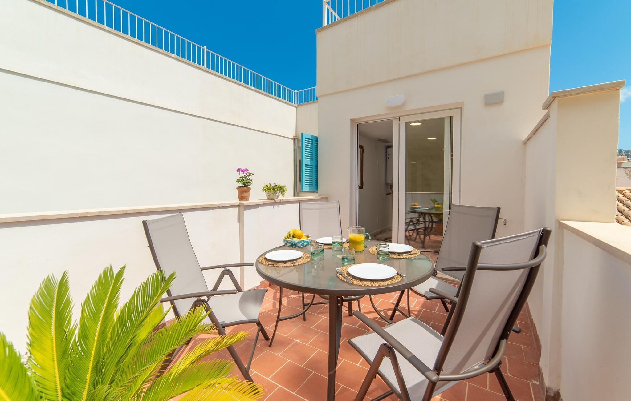 Hvis du rejser med en stor gruppe og leder efter både privatliv og moderne komfort, er rækkehuset "Albercutx Pollentia" et fremragende valg. Dette er et Fincallorca feriehus. Denne rummelige ejendom på Mallorca kan rumme op til 22 gæster og har tre selvstændige lejligheder. Hver lejlighed har indbydende terrasser og balkoner på forskellige niveauer, hvilket giver private udendørs rum til afslapning og socialt samvær. Når varmen kalder på en forfriskende svømmetur, er de nærliggende strande kun en kort gåtur væk. Indvendigt er lejlighederne designet med harmoniske farver og trendy møbler, hvilket skaber en indbydende atmosfære. Hver lejlighed har komfortable opholds- og spiseområder, fuldt udstyrede køkkener og to badeværelser, nogle med eget bad. Denne facilitet er ideel for familier, der ønsker at nyde tiden sammen og samtidig bevare personlige retreater. Med en lejlighed til op til seks personer og de to andre til op til otte personer hver tilbyder "Albercutx Pollentia" en unik og alsidig ferieoplevelse, som er sjælden på Mallorca. Du er meget tæt på havet i megagodset “Albercutx Pollentia”, som ligger i et rækkehus i centrum og er omgivet af naboer. Når det kommer til tilgængelighed, er dette feriehus på Mallorca simpelthen perfekt: restauranter, barer, butikker og strandene i Platja de Port de Pollença og Albercutx er inden for gåafstand. Den tilstødende gade giver fremragende forbindelser til forskellige destinationer. Søndag morgen er det værd at besøge det ugentlige marked i Pollença (ca. 7 km).