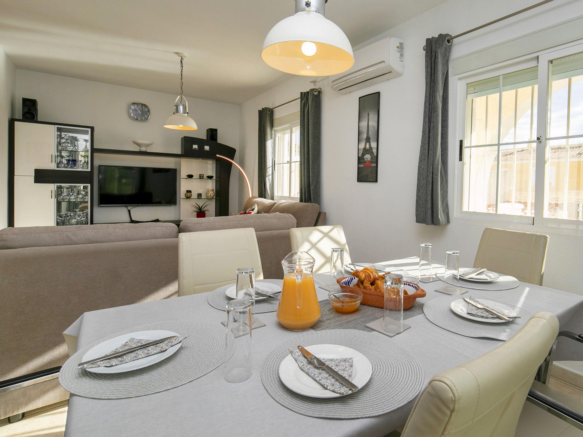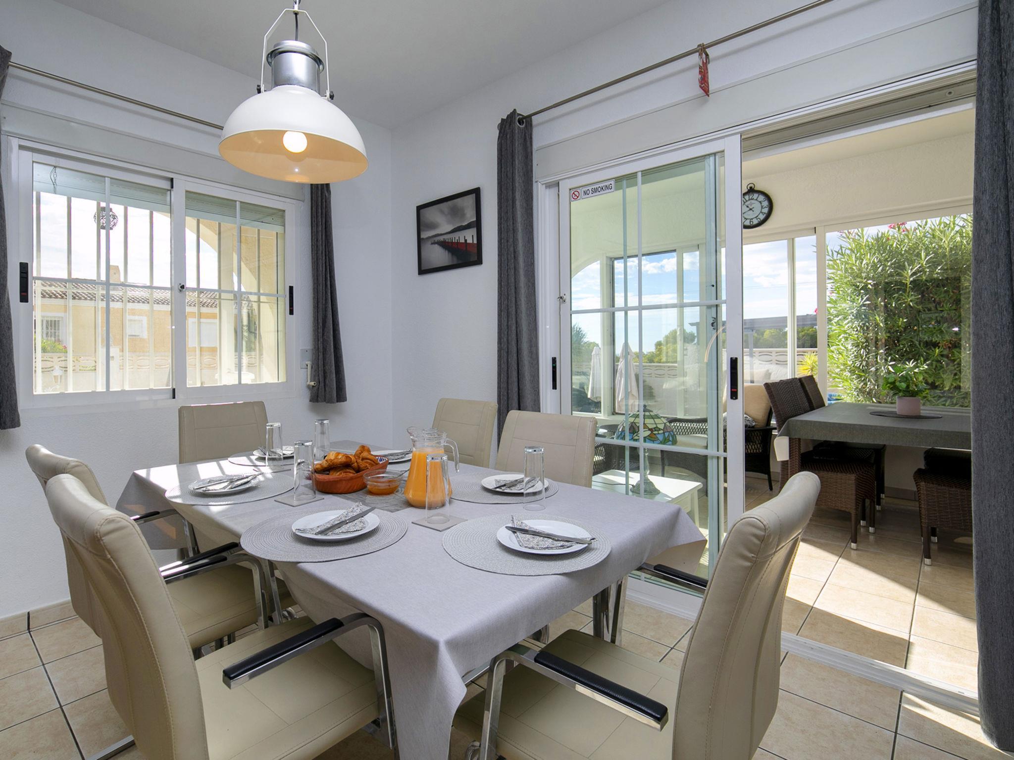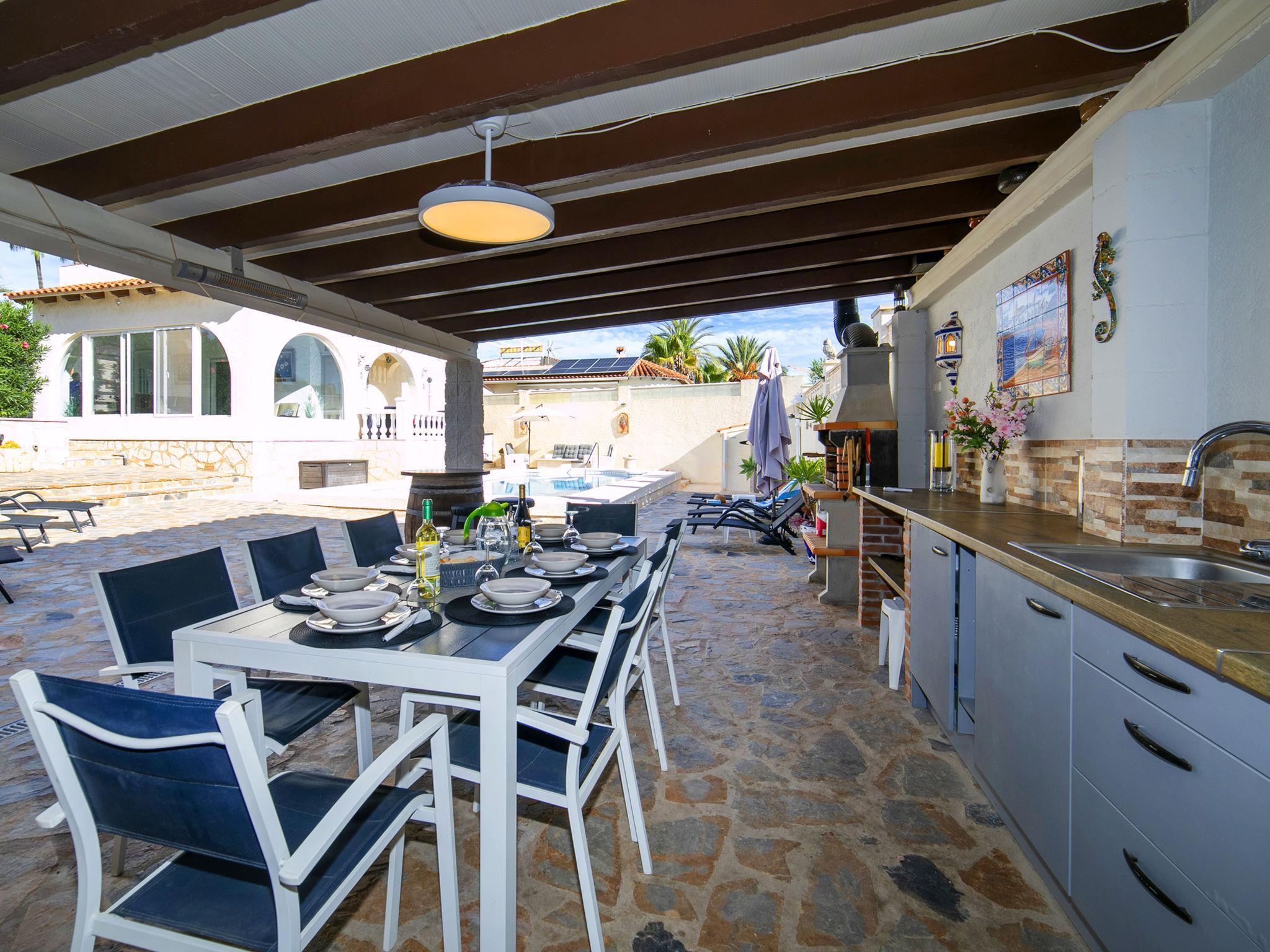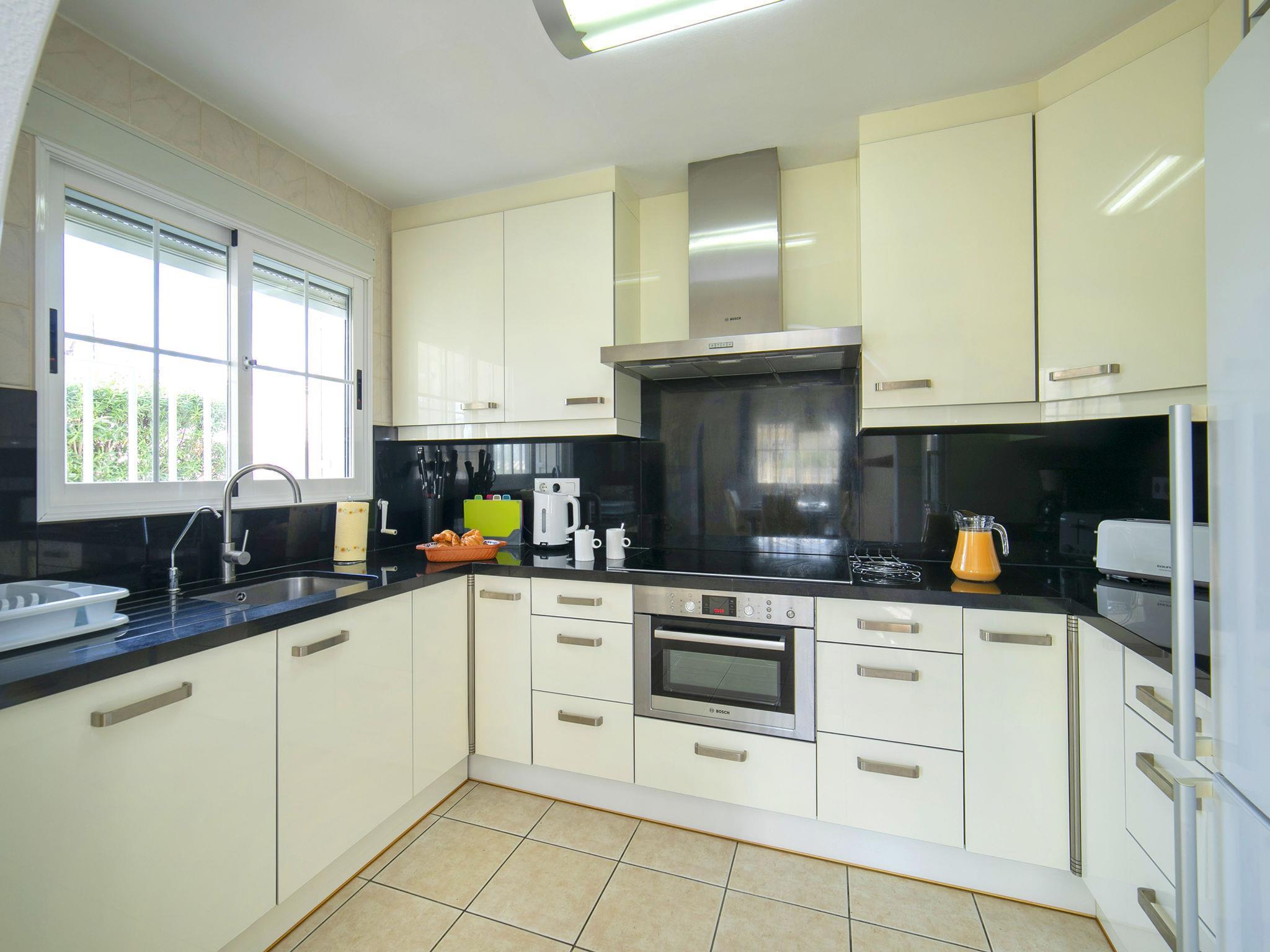 Alfaz del Pi: Very large, comfortable terraced house "Villa Rosallia", 2 storeys. On the outskirts, 9 km from the centre of Benidorm, outside the resort, 2 km from the centre of Alfaz del Pi, in a quiet, sunny position, 6 km from the sea, 6 km from the beach. Private: property (fenced), terraced garden, swimming pool (8 x 4 m, depth 122 - 180 cm, seasonal availability: 01.Jan. - 31.Dec.). Outdoor shower, patio, arbour, garden furniture, barbecue, public parking on the road. Supermarket 2 km, restaurant 2 km, bar 2 km, bus stop "Alfaz del Pi" 1 km, ferry "Denia" 49 km, sandy beach "Benidorm (Levante)" 9 km, shingle beach "El Albir (Alfaz del Pi)" 6 km. Golf course (18 hole) 6 km. Nearby attractions: Aqualandia Benidorm 9 km, Mundomar Benidorm 9 km, Terra Mitica Benidorm 9 km, Terra Natura Benidorm 8 km, Alicante 48 km, Aeropuerto Alicante 62 km. Please note: car recommended. The owner does not accept any youth groups. After 11 p.m., guests should be considerate of neighbours and keep noise to a minimum.