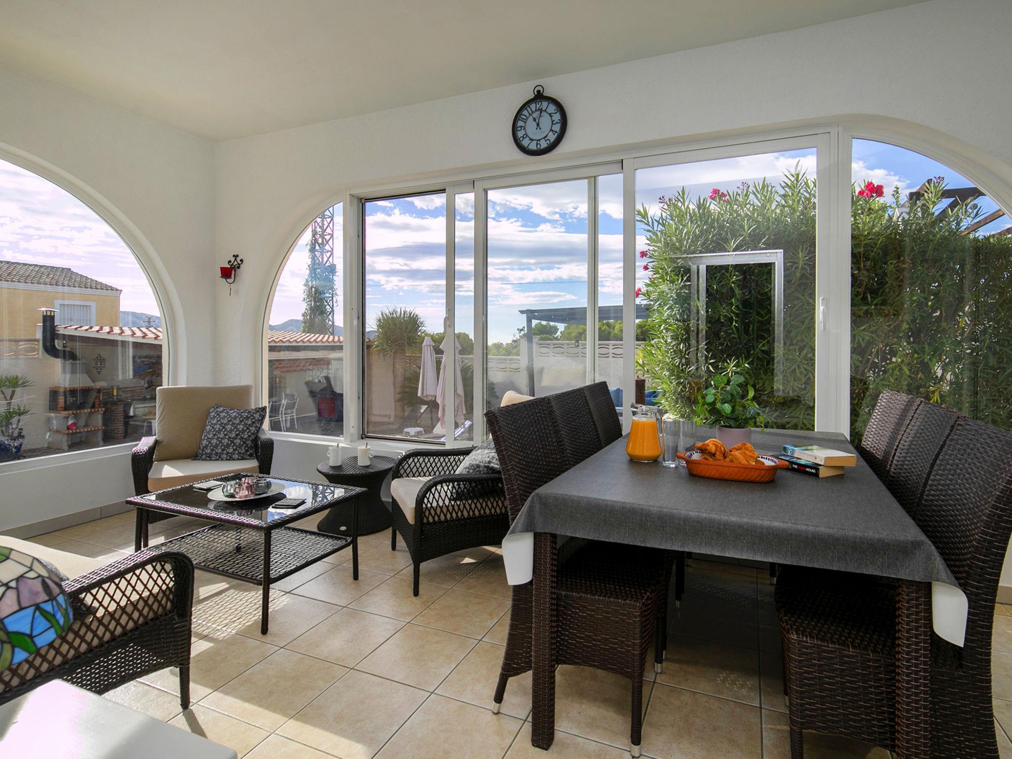"Villa Rosallia", 5-room terraced house 140 m2 on 2 levels. Object suitable for 8 adults. Spacious and bright, comfortable and tasteful furnishings: living/dining room 20 m2 with digital TV, air conditioning and forced-air heating. Exit to the terrace, to the swimming pool. 1 room 9 m2 with 2 beds (90 cm, length 190 cm), bath/WC, air conditioning, fan and forced-air heating. 1 room 9 m2 with 2 beds (90 cm, length 190 cm), air conditioning, fan and forced-air heating. Open kitchen 8 m2 (oven, dishwasher, 4 induction hot plates, toaster, kettle, microwave, freezer, electric coffee machine). Exit to the patio, to the swimming pool. Sep. WC. Upper floor: lounge 6 m2. 1 room 9 m2 with 2 beds (90 cm, length 200 cm), air conditioning, fan and forced-air heating. 1 room 12 m2 with 1 french bed (150 cm, length 190 cm), air conditioning, fan and forced-air heating. Exit to the terrace. Bath/shower. Terrace 8 m2, terrace 12 m2, large patio 200 m2. Terrace furniture, barbecue, deck chairs (8), covered balcony, sitting area. View of the swimming pool, the garden and the countryside. Facilities: washing machine, iron, hair dryer. Internet (WiFi, free). EGTV 593-A After 11 p.m., guests should be considerate of neighbours and keep noise to a minimum. VT-487392-A // Reg. Nr.: ESFCTU00000303000016868100000000000000000VT-487392-A0