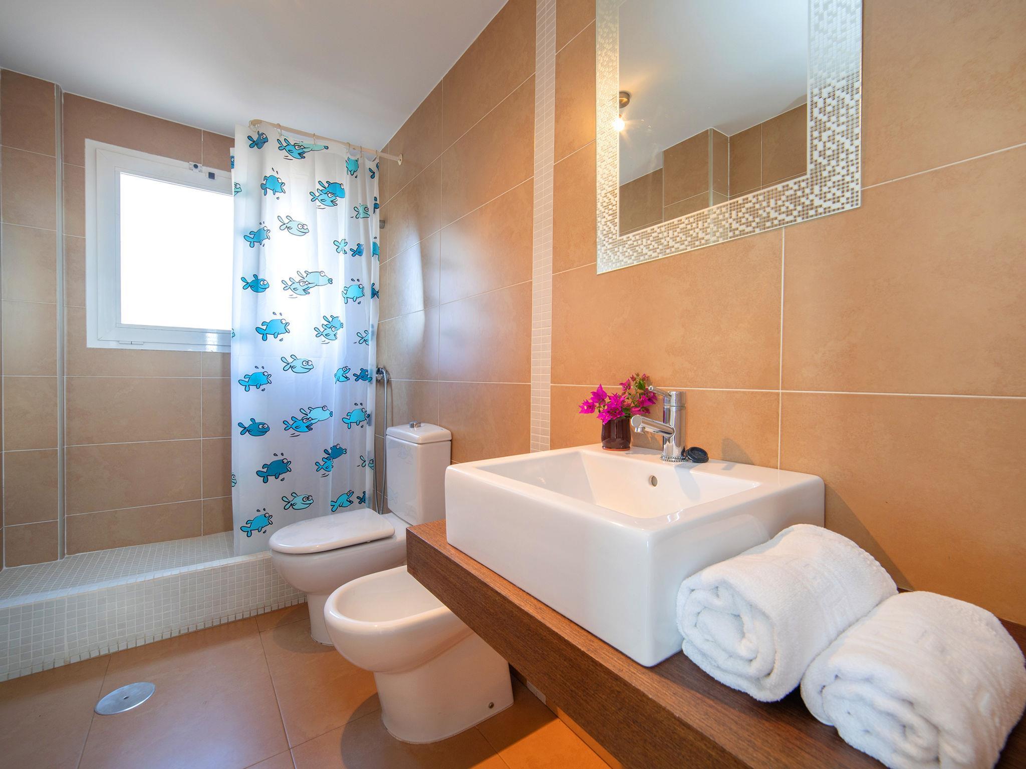 "Casa Viena", 4-room house 190 m2 on 2 levels. Object suitable for 6 adults. Simple and practical furnishings: living/dining room 28 m2 with digital TV, air conditioning and forced-air heating. Exit to the patio, to the swimming pool. Large kitchen 12 m2 (oven, dishwasher, 4 ceramic glass hob hotplates, toaster, kettle, microwave, freezer, electric coffee machine). Sep. WC. Upper floor: 1 room 9 m2 with 1 french bed (1 x 150 cm, length 200 cm), hip bath/bidet/WC and fan. Exit to the balcony. 1 room 8 m2 with 2 beds (90 cm, length 190 cm), fan. 1 room 6 m2 with 1 french bed (1 x 135 cm, length 190 cm), fan. Exit to the balcony. Shower/bidet/WC. Terrace 40 m2. Terrace furniture, deck chairs (2). Distant view of the sea, the countryside and the resort. Facilities: washing machine, iron, hair dryer. Internet (WiFi, free). 1 small pet/ dog allowed. EGTV593-A. VT-505437-A // Reg. Nr.: ESFCTU00000303000047493500000000000000000VT-505437-A5
