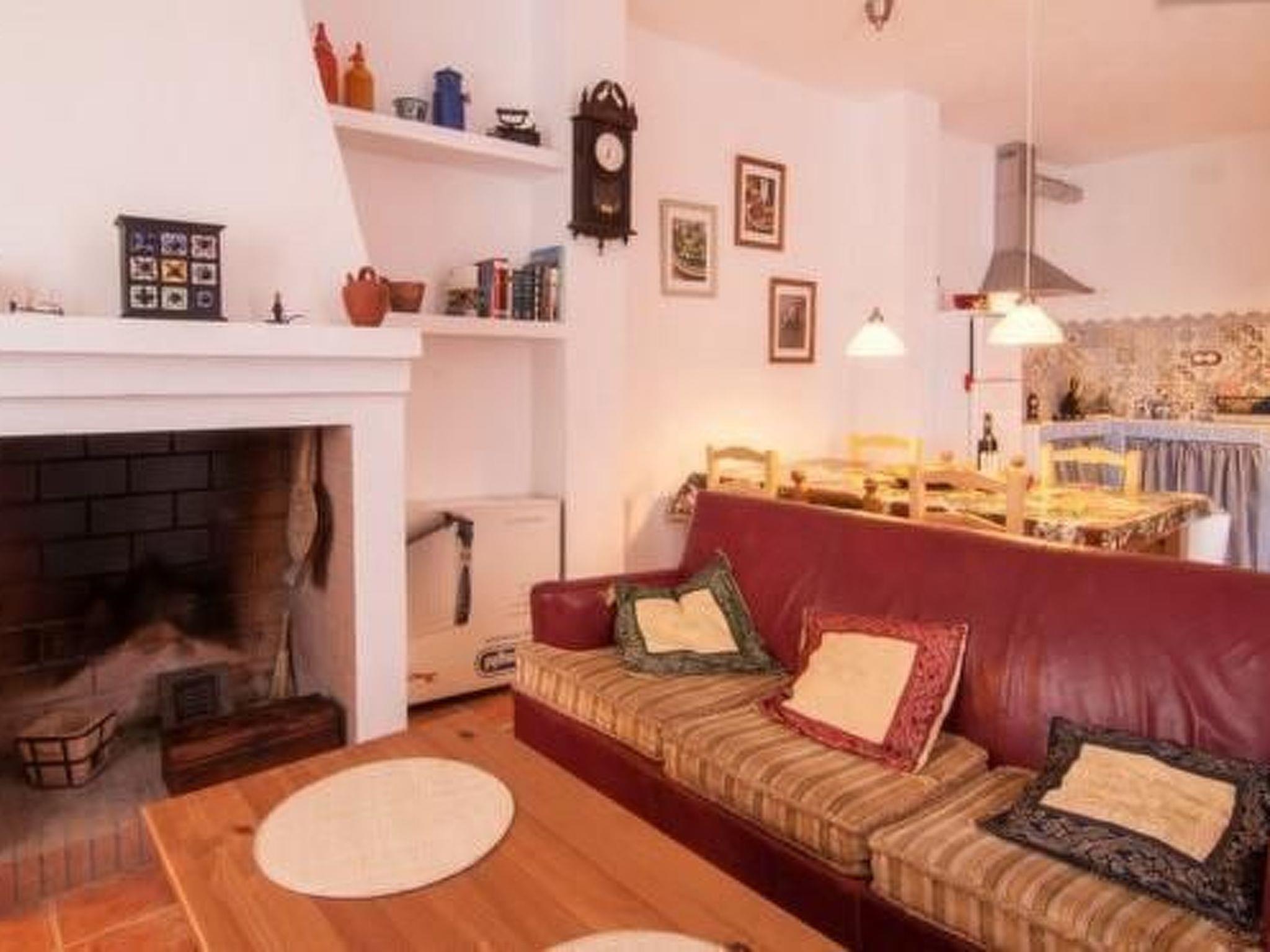 The house has 140 m² spread over three floors and can accommodate up to seven people. On the upper floor there is a bathroom with bathtub and a bedroom with double bed (1,35m x 1,90m), ceiling fan, wardrobe and shelves. On this floor there is also a partly covered terrace with chairs and table, as well as sun loungers. There is also a small room with washing machine and iron at your disposal. On the middle floor there is a bathroom with shower and three bedrooms, one with a double bed (1.35 m x 1.90 m), a double room with two single beds (each 0.90 m x 1.90 m) and a single room with a single bed (0.90 m x 1.90 m), in which an additional extra bed (0.80 m x 1.90 m) can be provided. All bedrooms also have a wardrobe. On the ground floor there is a fully equipped kitchen, which includes an induction hob, a fridge with freezer compartment, a Nespresso coffee machine, a kettle and a microwave. Here you will also find a large table for ten people. In the adjoining living room, you will find two large sofas in front of the fireplace, as well as a ceiling fan and a flat-screen television with DVD player and digital connection. You can access the internet via an internet device. This has a maximum data volume of 10 GB. On the ground floor of the house there is also a bathroom.