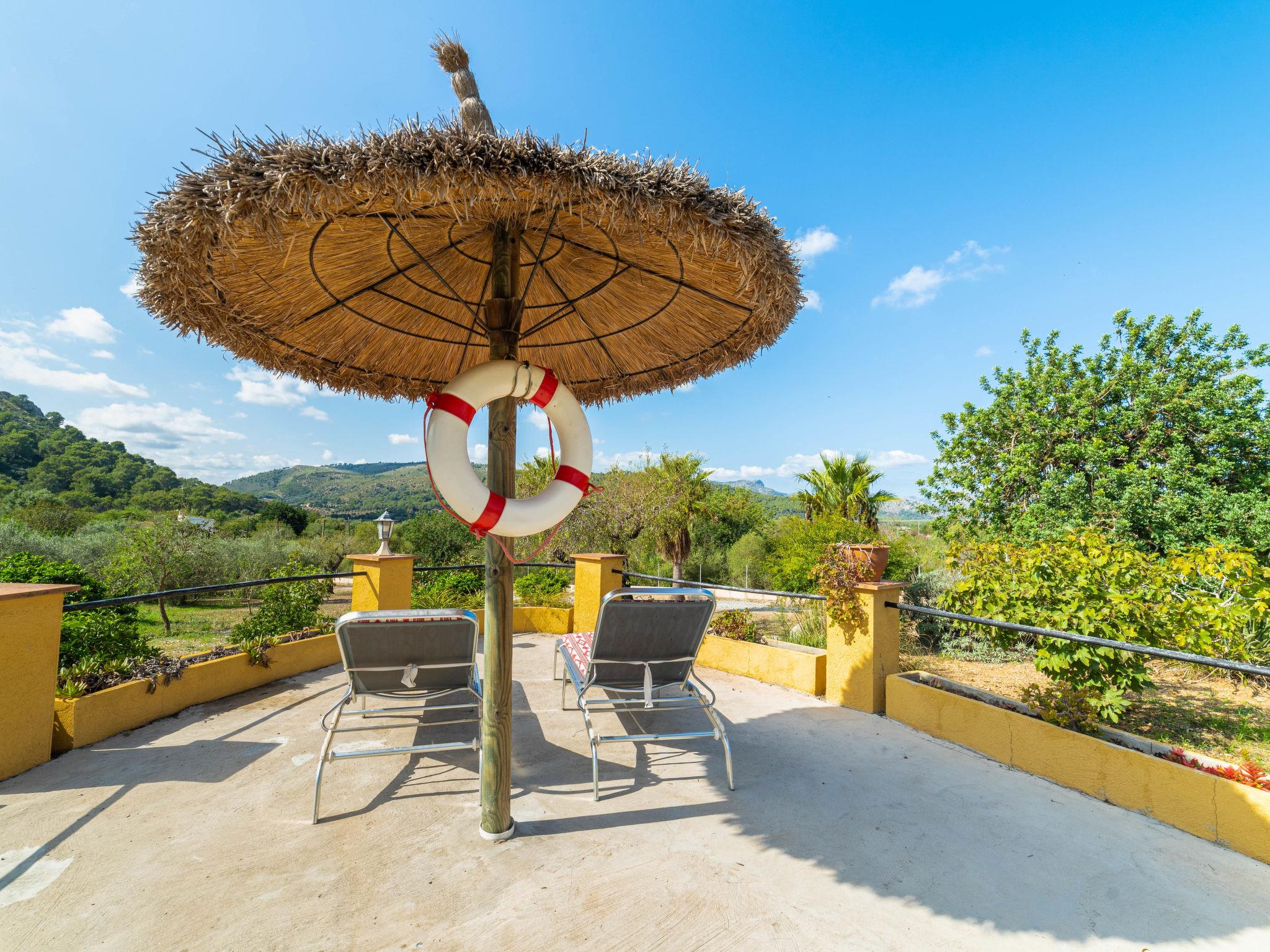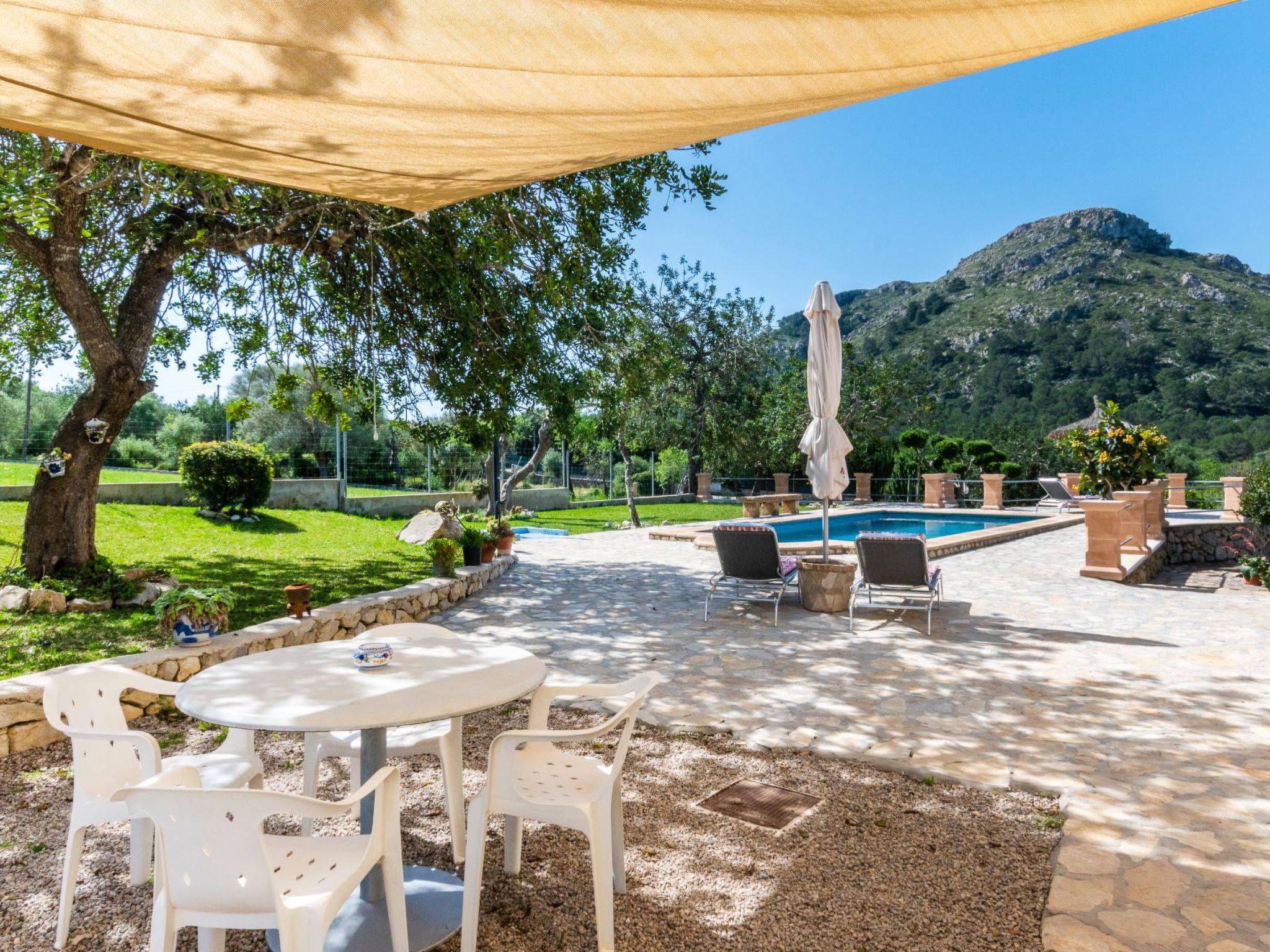 3 km from Alcúdia: Very rustic, comfortable farm estate "Villa Lavanda", 2 storeys, renovated in 2004, surrounded by trees and fields. Outside the resort, 4.5 km from the centre of Alcudia, in a quiet, sunny position residential area (villas), 500 m from the edge of the forest, 4 km from the sea, 4 km from the lake, 4 km from the beach, 4 km from the canal, in the countryside. Private: large, beautiful garden with lawn and trees, orchard, swimming pool angular (3 x 6 m, seasonal availability: 01.Apr. - 01.Nov.). Outdoor shower, patio, pergola, garden furniture, barbecue. In the house: internet access, WiFi, air conditioning, washing machine. Parking at the house on the premises. Shop 4 km, grocery 4 km, supermarket 4 km, restaurant 4 km, bar 4 km, bakery 4 km, café 4 km, internet café 4 km, pedestrian zone 4 km, bicycle rental 4 km, pub garden 4 km, 25 minute walk to the centre, bus stop 4 km, sandy beach 4 km pebble beach 5 km, shingle beach 5 km, rocky beach 5 km, 4 km, diving center 5 km. Sports harbour 4.5 km, marina 4.5 km, golf course (18 hole) 5 km, surf school 3.9 km, sailing school 4.5 km, tennis 4 km, minigolf 4 km, riding stable 4 km, sports centre 4.5 km, walking paths from the house 3 km, cycle lane 3 km, children's playground 4 km. Nearby attractions: Ciudad Romana de Pollentia (Alcúdia). S'Albufera de Mallorca, Parque Aquático Hidropark. Hiking paths: Puig de Sant Martí, Sa Talaia d'Alcúdia. Please note: car recommended, no lift. Suitable for families, suitable for seniors. Object suitable for 6 adults groups of teenagers on request only. Loading and unloading of baggage is possible at the holiday house. The owner lives on the same property. Airfield 60 km from the property.