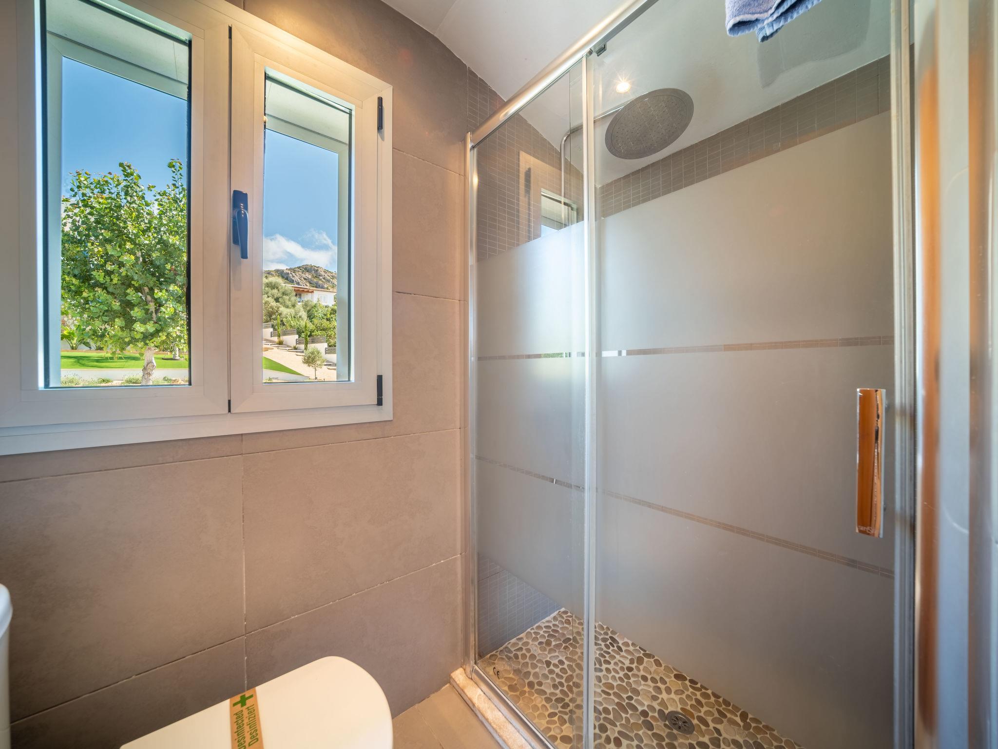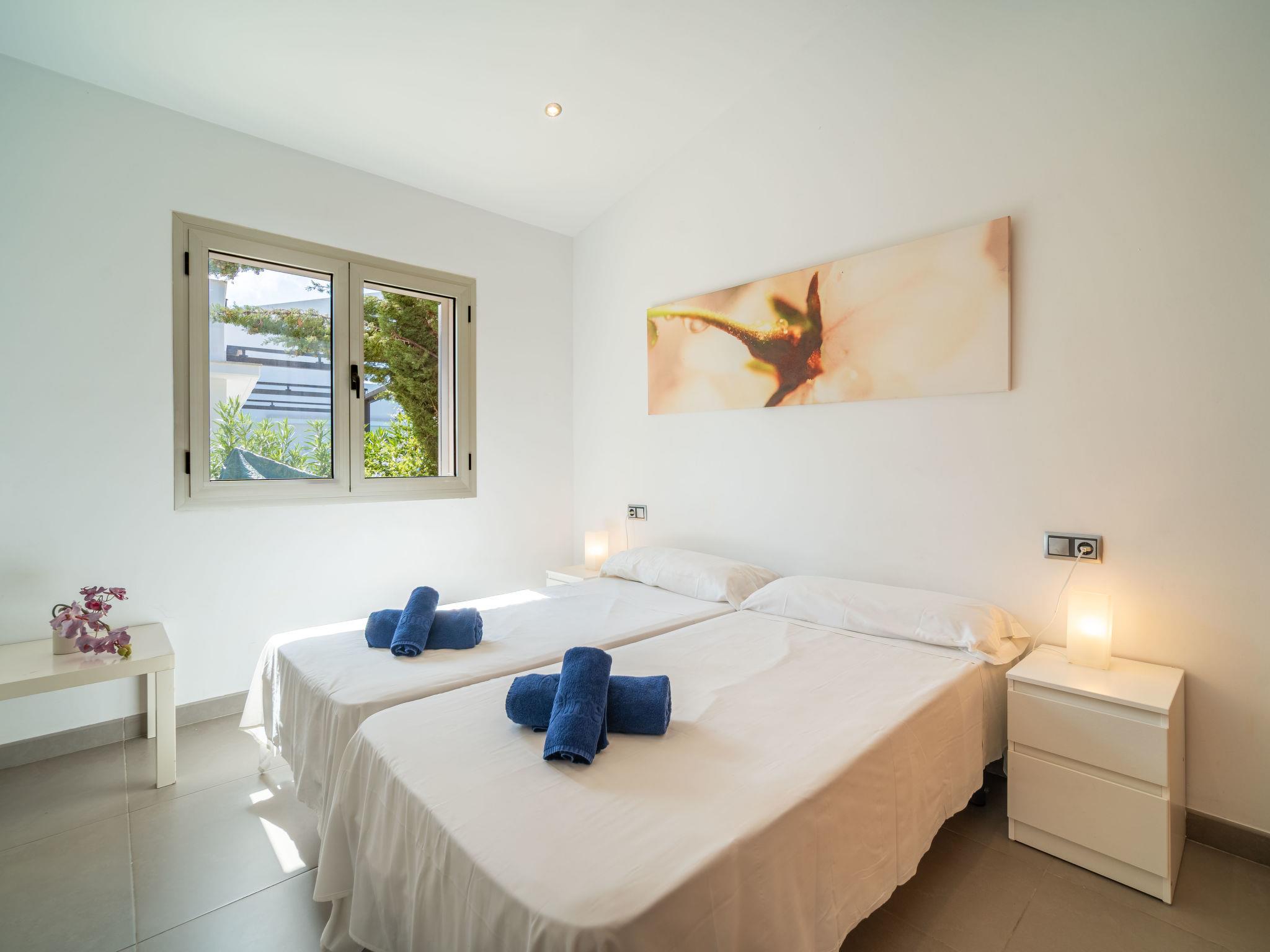"Amanecer", 4-room villa 157 m2 on 2 levels. Object suitable for 6 adults. Spacious and bright, modern and cosy furnishings: open large living/dining room with sliding door, panoramic window with dining table, TV, satellite TV, flat screen, air conditioning and forced-air heating. Exit to the patio, to the swimming pool. 1 large double bedroom with panoramic window with 2 beds (90 cm, length 190 cm), bath/WC. 1 large double bedroom with panoramic window with 2 beds (90 cm, length 190 cm). Kitchen (oven, dishwasher, 4 ceramic glass hob hotplates, microwave, freezer, electric coffee machine). Exit to the garden. Bath/shower/WC. Upper floor: 1 large double bedroom with sliding door, panoramic window with 1 french bed (180 cm, length 200 cm), bath/shower/WC, air conditioning and forced-air heating. Exit to the terrace. Large terrace, patio, lawn, porch. Terrace furniture, balcony furniture, barbecue, deck chairs, covered balcony. Partial view of the sea and the mountains. Facilities: washing machine, iron, hair dryer. Internet (WiFi, free). ETV/2273 // Reg. Nr.: ESFCTU00000704300005100200000000000000000000ETV/22730