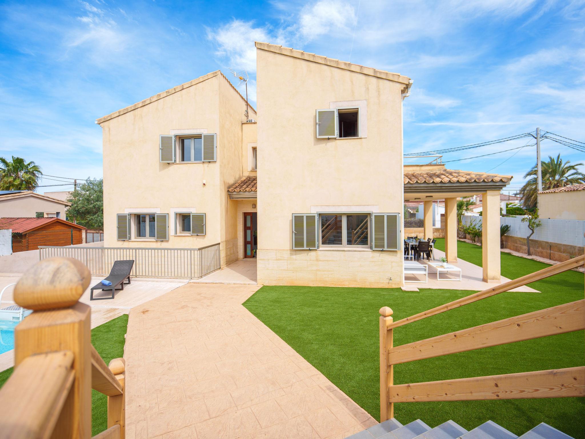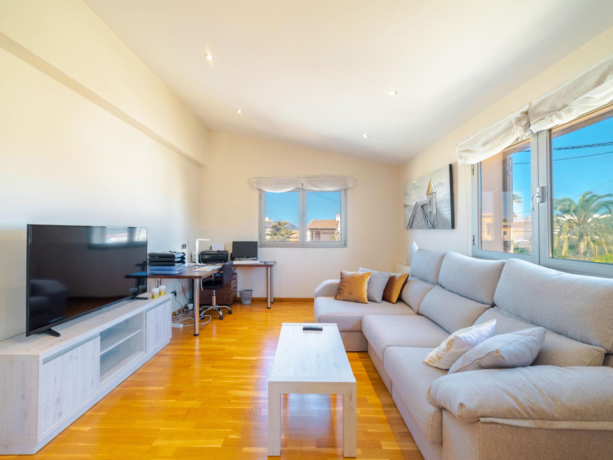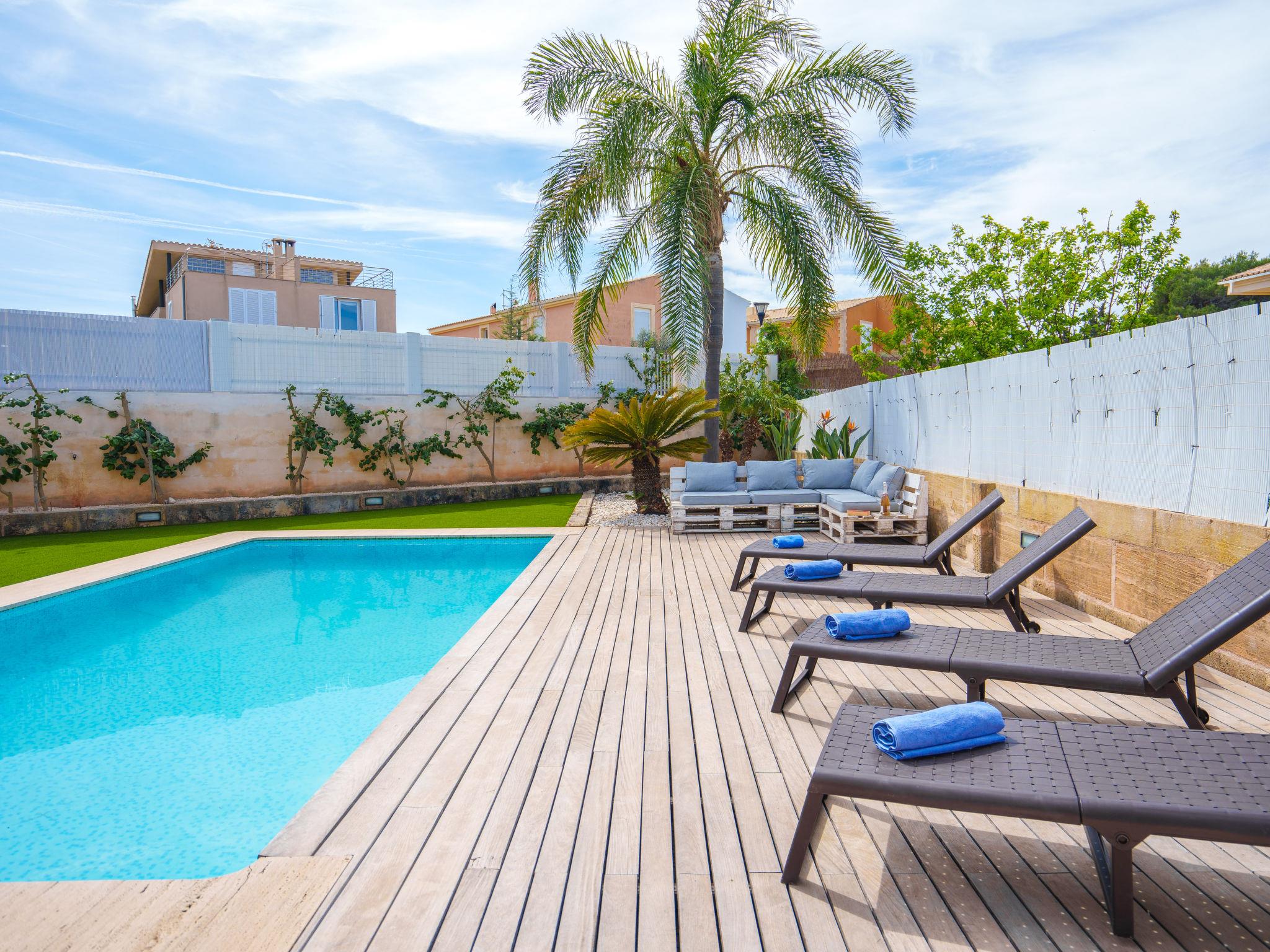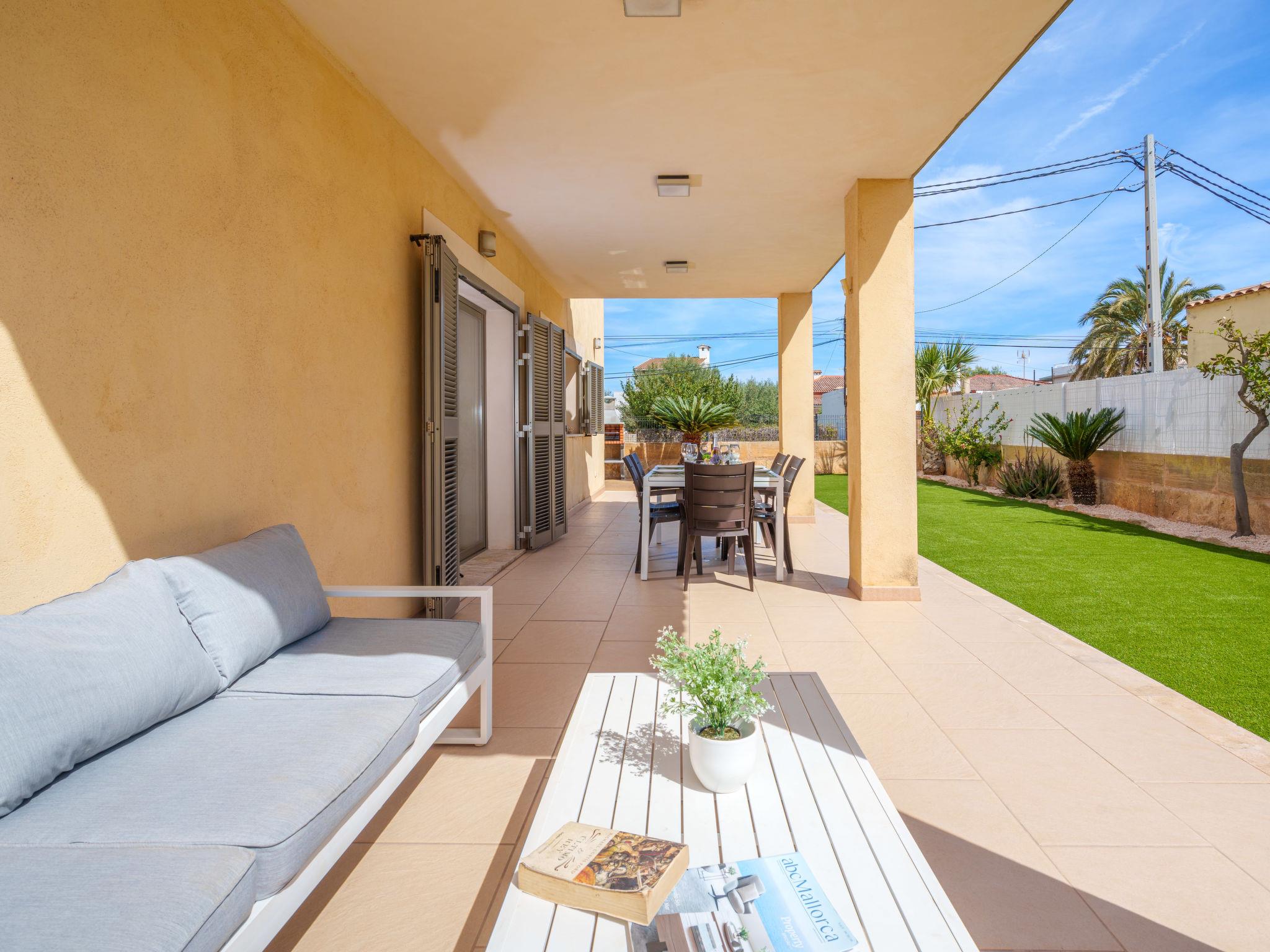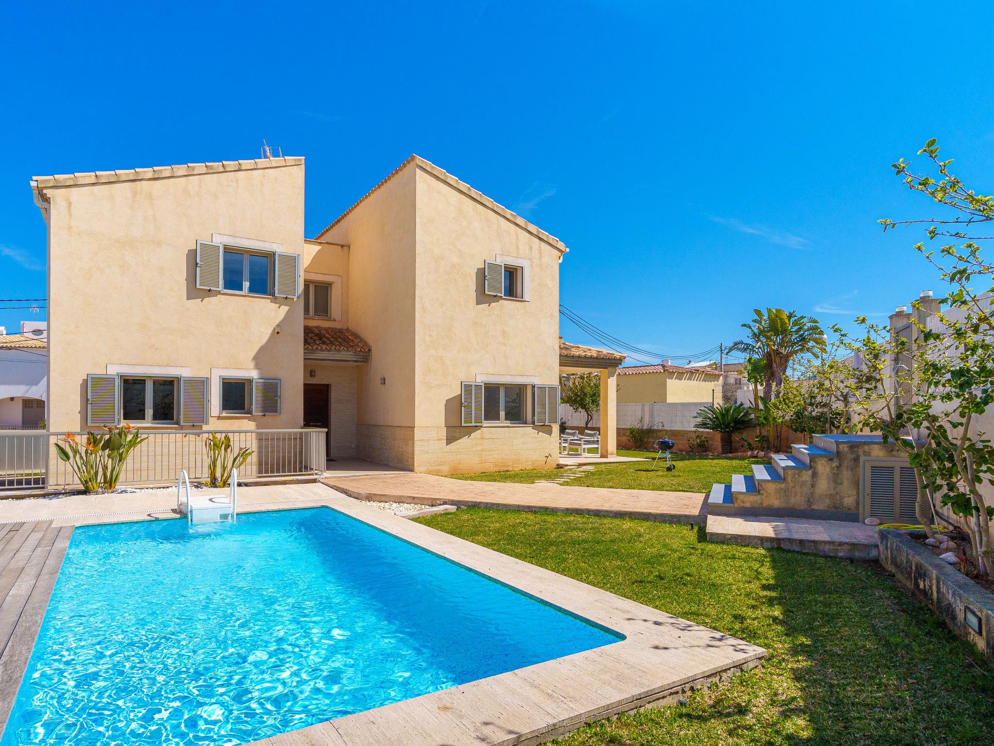 Barcarés 1 km from Alcúdia: Very large, very modern villa "Son Jil", 2 storeys, detached, built in 2005. In a quiet, sunny position residential area (villas), 2 km from the edge of the forest, 60 m from the sea, road to cross. Private: large, well-kept garden with lawn and wildlife garden, swimming pool angular (8 x 4 m, depth 150 - 150 cm, seasonal availability: 01.Jan. - 31.Dec.) with salt-electrolysis pool-cleaning system. Outdoor shower, patio, arbour, pergola, garden furniture, barbecue. In the house: internet access, WiFi, central heating system, air conditioning, washing machine. Public car park, public parking on the road. Shop 1 km, supermarket 1.2 km, shopping centre 45 km, restaurant 160 m, bar, pedestrian zone 50 m, 15 minute walk to the centre, bus stop 1.5 km, ferry 3 km, sandy beach "Platja Es Morer Vermell" 550 m, rocky beach "Platja Es Barcarés" 60 m. Sports harbour 250 m, marina 3 km, golf course (18 hole) 6 km, tennis 2.5 km, riding stable 2.5 km, sports centre 2.5 km, walking paths from the house 1 km, cycle lane 700 m, children's playground 500 m. Nearby attractions: Ermita de la Victoria, Barcarés, Manresa, Sa Marina, Es Malpas. Ciutat Romana de Pollentia, Alcudia. Port d'Alcúdia, Port de Pollença - Pollença, North Beaches. Hiking paths: Sa Talaia, Es Puig de Sant Martí, Serra Tramuntana Pollença. Please note: suitable for families, suitable for seniors. Object suitable for 8 adults groups of teenagers on request only. Airfield 60 km from the property.