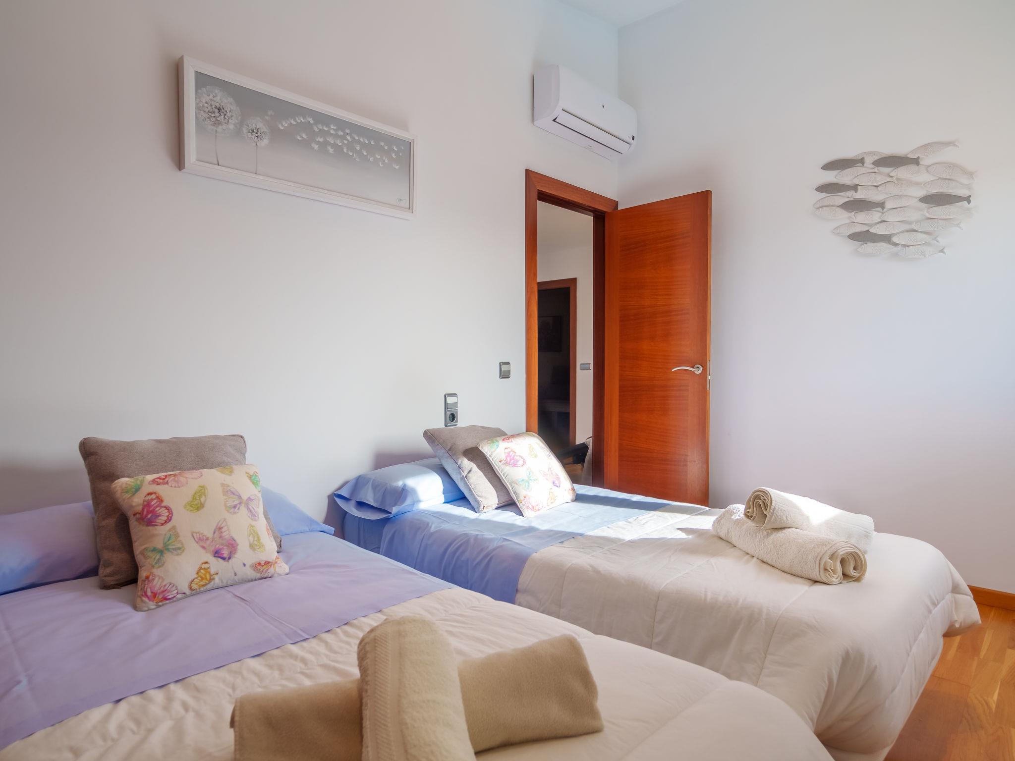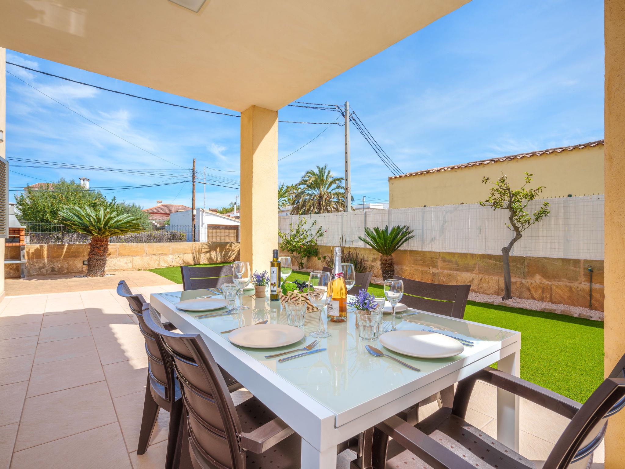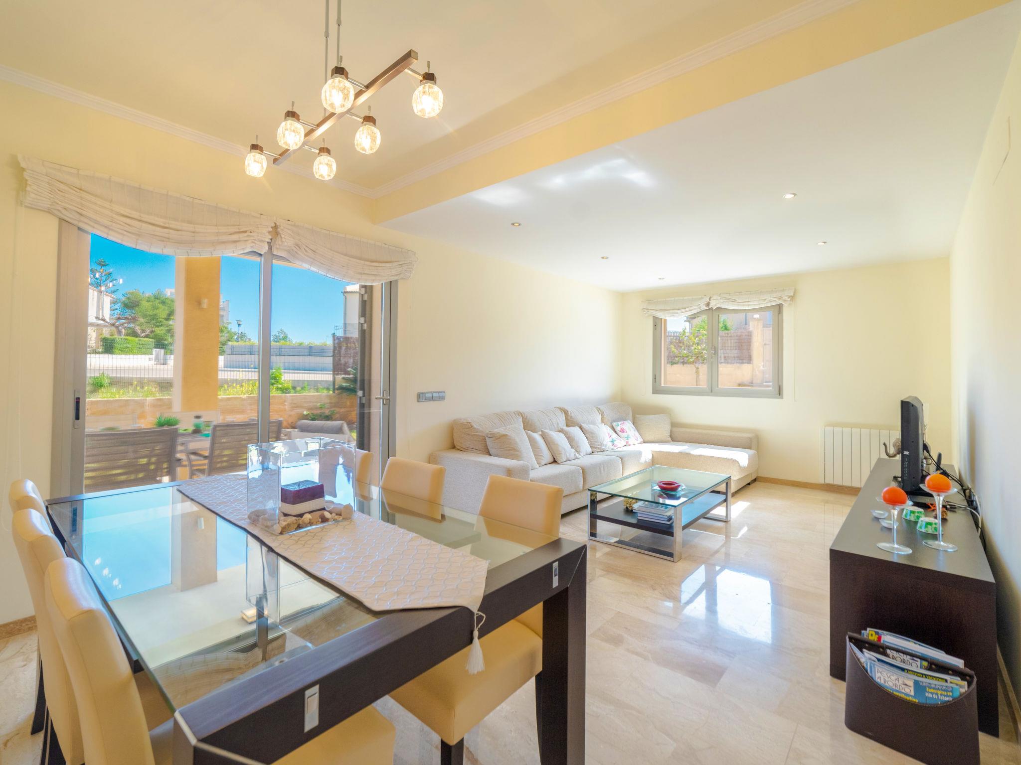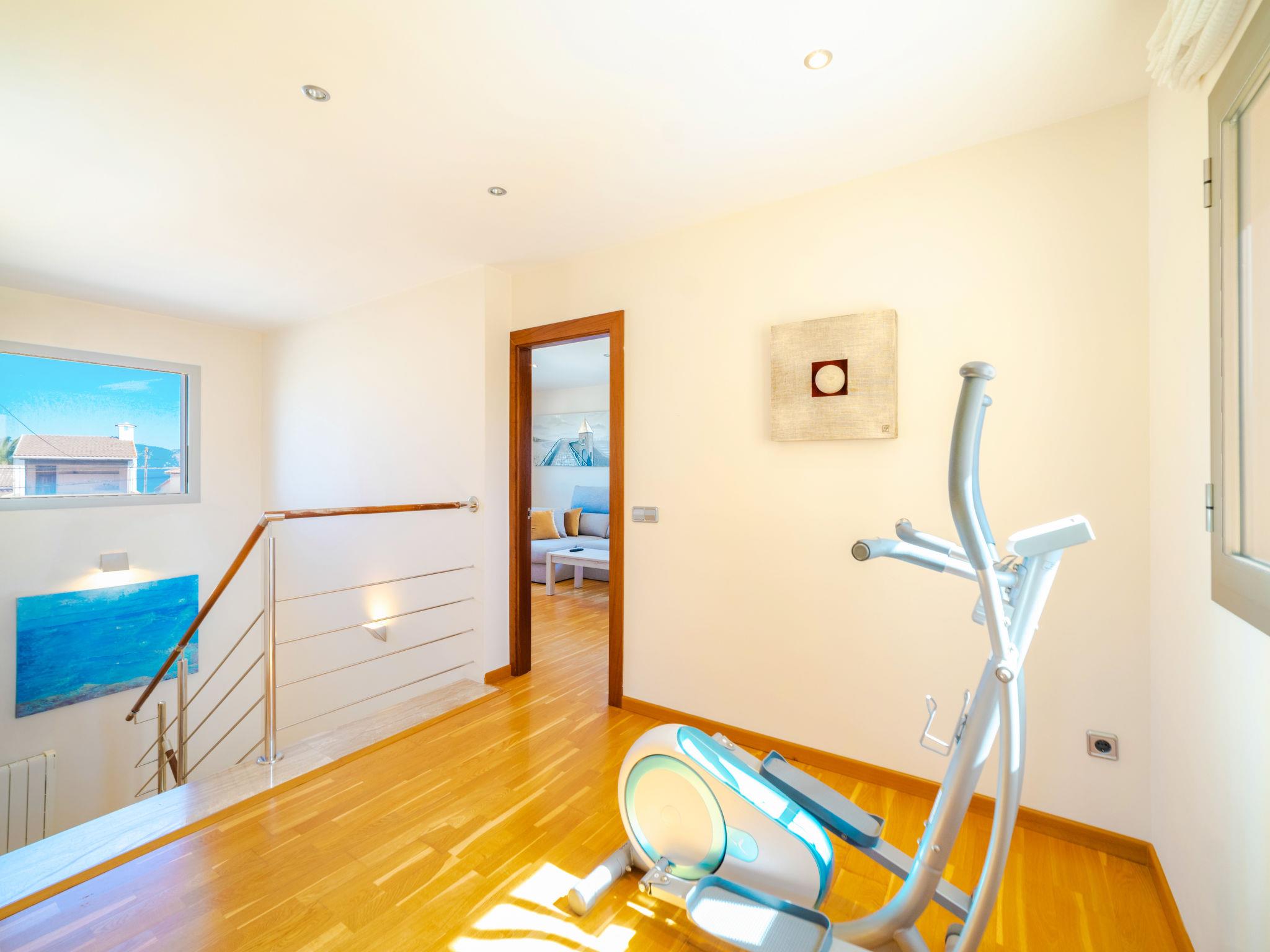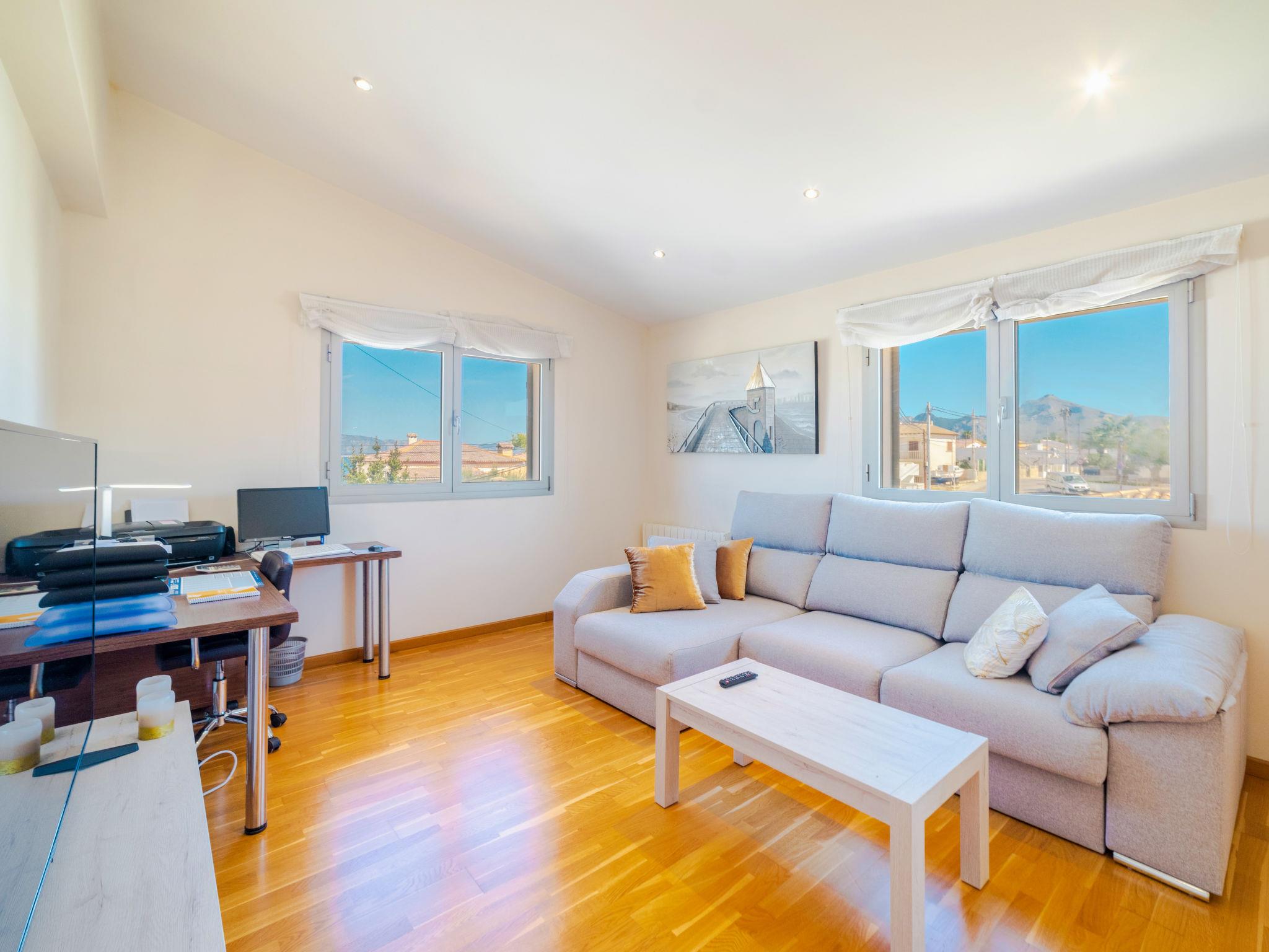 Barcarés 1 km from Alcúdia: Very large, very modern villa "Son Jil", 2 storeys, detached, built in 2005. In a quiet, sunny position residential area (villas), 2 km from the edge of the forest, 60 m from the sea, road to cross. Private: large, well-kept garden with lawn and wildlife garden, swimming pool angular (8 x 4 m, depth 150 - 150 cm, seasonal availability: 01.Jan. - 31.Dec.) with salt-electrolysis pool-cleaning system. Outdoor shower, patio, arbour, pergola, garden furniture, barbecue. In the house: internet access, WiFi, central heating system, air conditioning, washing machine. Public car park, public parking on the road. Shop 1 km, supermarket 1.2 km, shopping centre 45 km, restaurant 160 m, bar, pedestrian zone 50 m, 15 minute walk to the centre, bus stop 1.5 km, ferry 3 km, sandy beach "Platja Es Morer Vermell" 550 m, rocky beach "Platja Es Barcarés" 60 m. Sports harbour 250 m, marina 3 km, golf course (18 hole) 6 km, tennis 2.5 km, riding stable 2.5 km, sports centre 2.5 km, walking paths from the house 1 km, cycle lane 700 m, children's playground 500 m. Nearby attractions: Ermita de la Victoria, Barcarés, Manresa, Sa Marina, Es Malpas. Ciutat Romana de Pollentia, Alcudia. Port d'Alcúdia, Port de Pollença - Pollença, North Beaches. Hiking paths: Sa Talaia, Es Puig de Sant Martí, Serra Tramuntana Pollença. Please note: suitable for families, suitable for seniors. Object suitable for 8 adults groups of teenagers on request only. Airfield 60 km from the property.