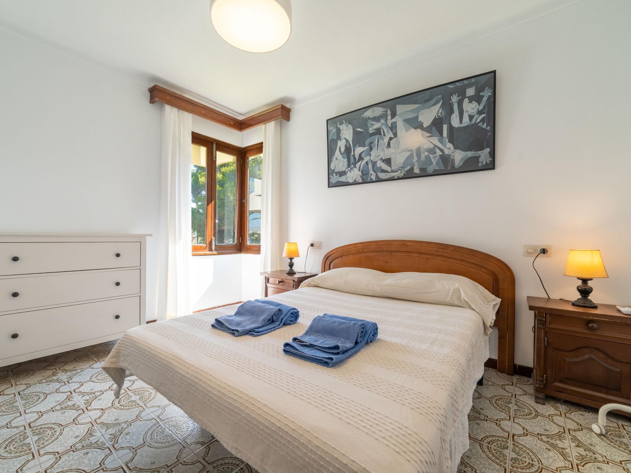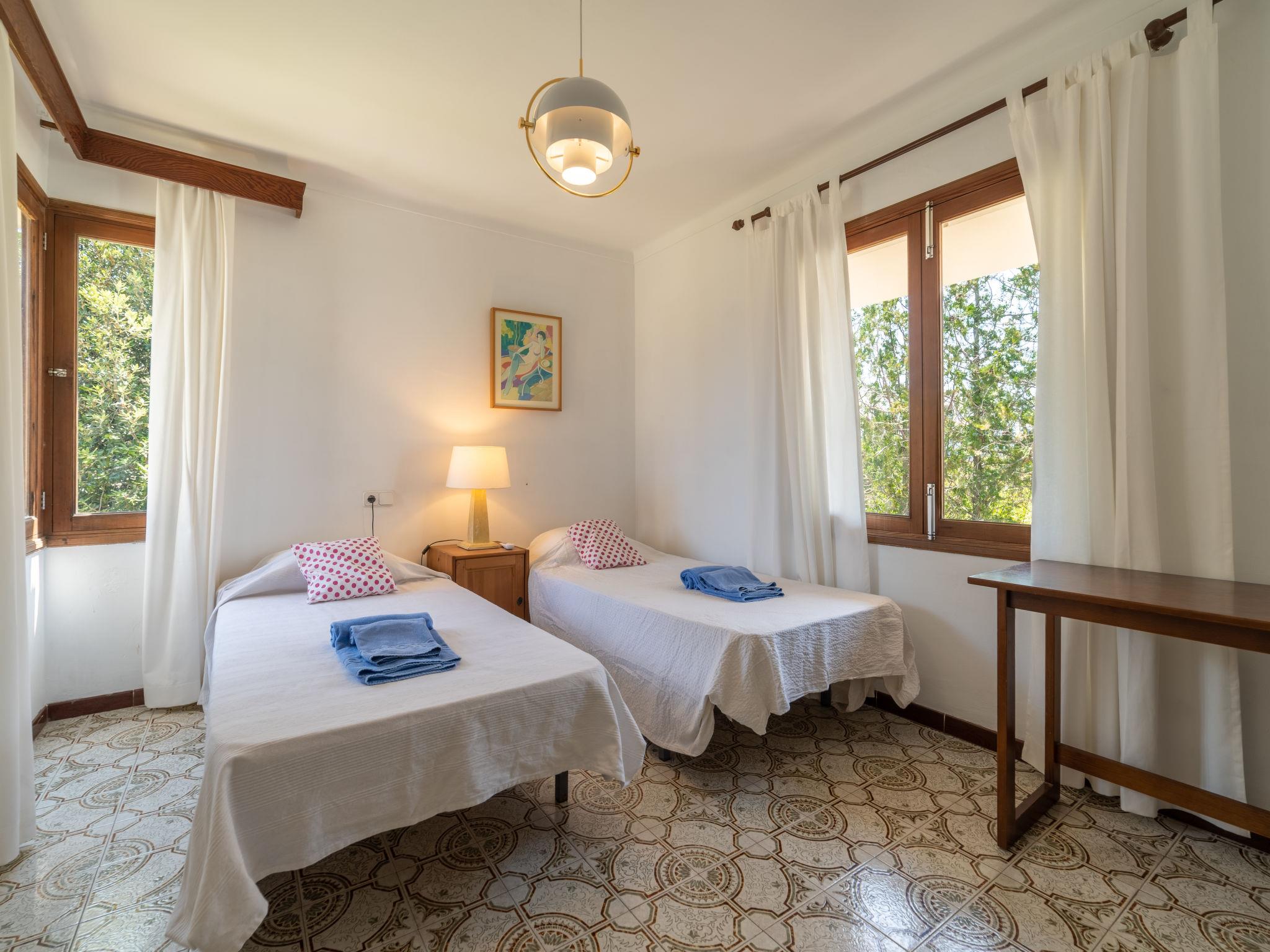 "Can Jeroni", 5-room house 163 m2 on 1st floor. Object suitable for. Spacious and bright: large living room with digital TV and flat screen. Exit to the balcony. Large dining room with panoramic window with dining table. Exit to the balcony. 1 large double bedroom with panoramic window with 1 french bed (150 cm, length 190 cm), air conditioning and forced-air heating. 1 large double bedroom with panoramic window with 1 french bed (135 cm, length 190 cm), air conditioning and forced-air heating. 1 large double bedroom with panoramic window with 2 beds (90 cm, length 190 cm), air conditioning and forced-air heating. 1 room with panoramic window with 1 bed (90 cm, length 190 cm). Kitchen-/living room (oven, dishwasher, 3 ceramic glass hob hotplates, toaster, kettle, microwave, freezer, electric coffee machine) with dining table. Exit to the patio. Bath/bidet/WC, shower/WC. Large balcony, large patio, lawn, porch. Terrace furniture, balcony furniture, barbecue, deck chairs, covered balcony, box-room. View of the resort. Facilities: washing machine, iron, children's high chair, baby cot for up to 2 year olds, hair dryer. Internet (WiFi, free). Parking. ETV11431 // Reg. Nr.: ESFCTU0000070430001068940000000000000000000ETV/114312