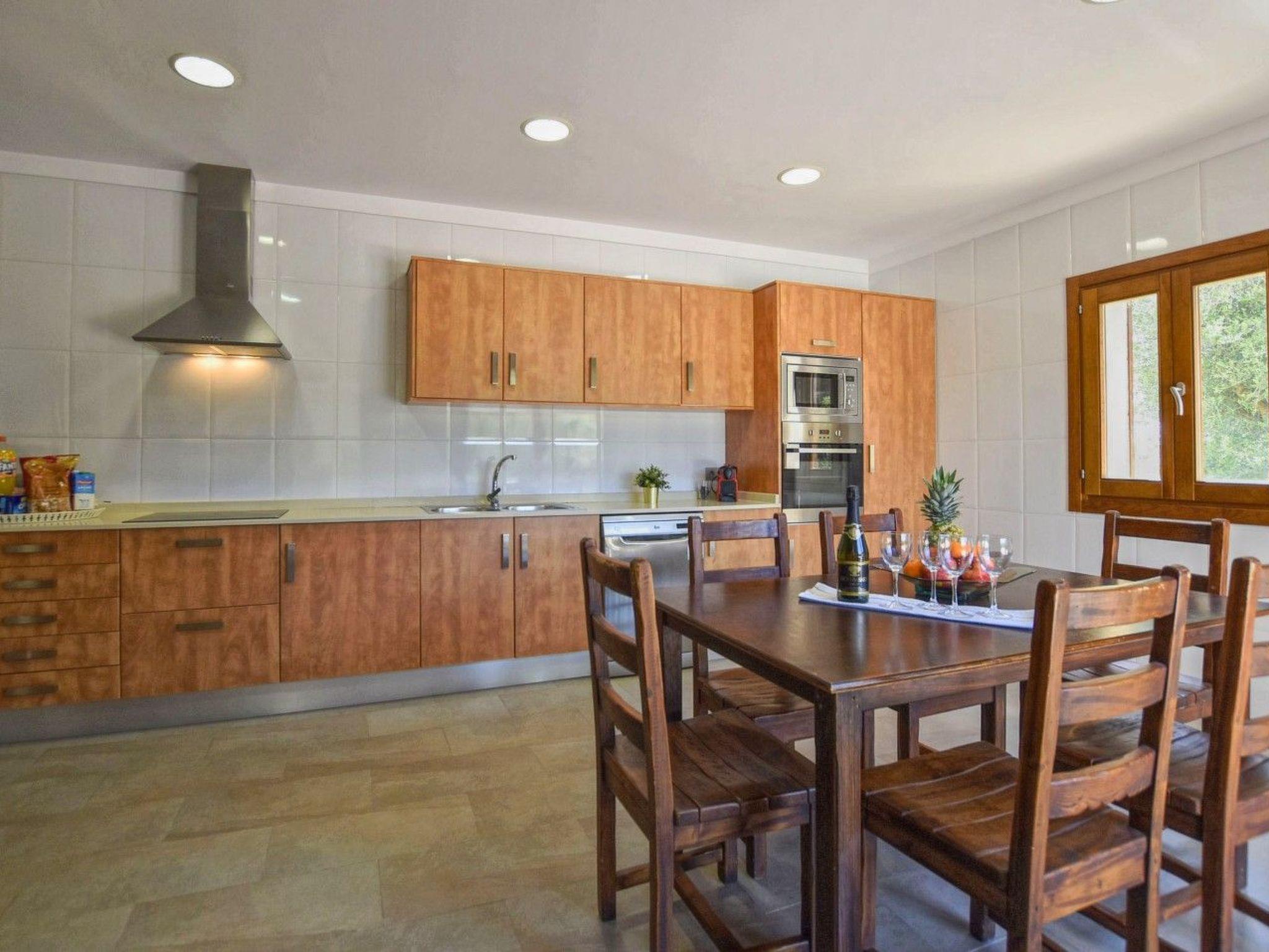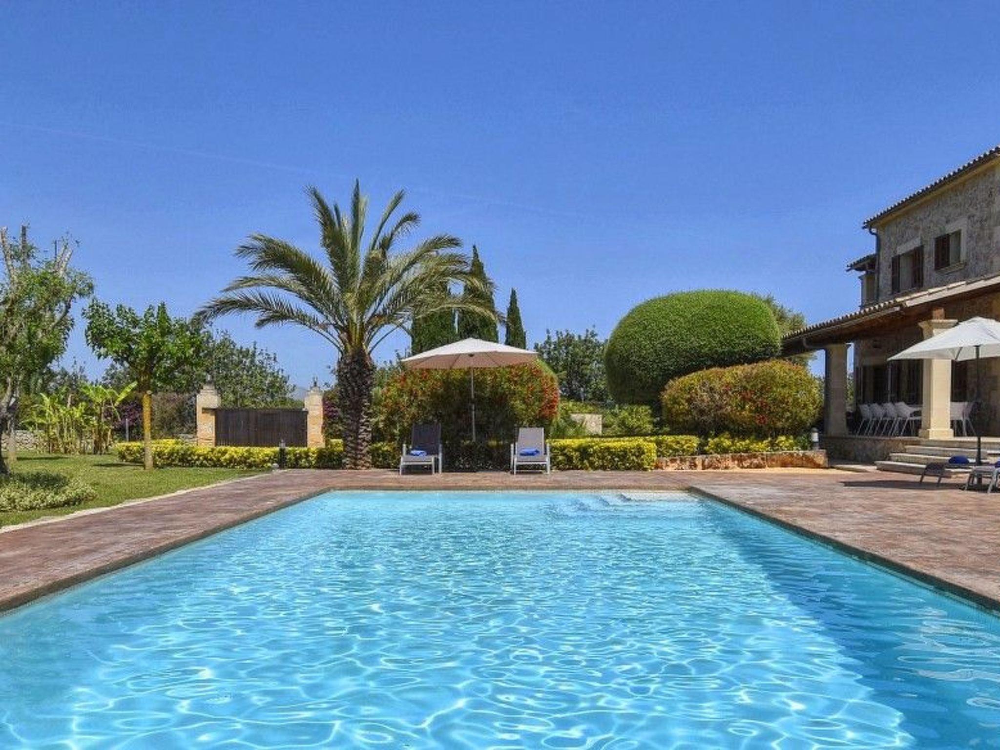 Modern country house lined in stone with a wonderful private swimming pool, very close to the town of Alcudia in the north of the island, with beautiful panoramic views to the countryside and the mountains and only a few kilometres away from its beautiful beaches. Built on 2 floors, with excellent finishings and well cared for interiors. The house is fully air-conditioned for winter and summer and is suitable for small children. It has 4 bedrooms (3 double and 1 twin), 4 complete bathrooms (all of them en suite and one with hydromassage bathtub). The kitchen is fully equipped and independent from the living-dining room with access to the porch and the swimming pool. It has several terraces and a furnished porch, as well as a wonderful solarium area with wooden decking around the swimming pool and terrace furniture and sun loungers. Situated in a quiet area but close to the village and all amenities, it is the ideal property to enjoy a great holiday with total privacy and all the comforts.