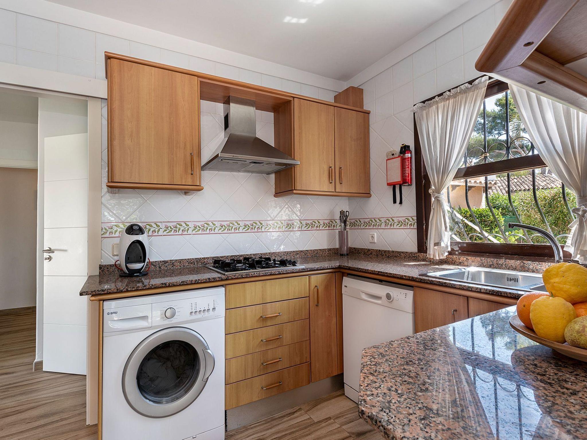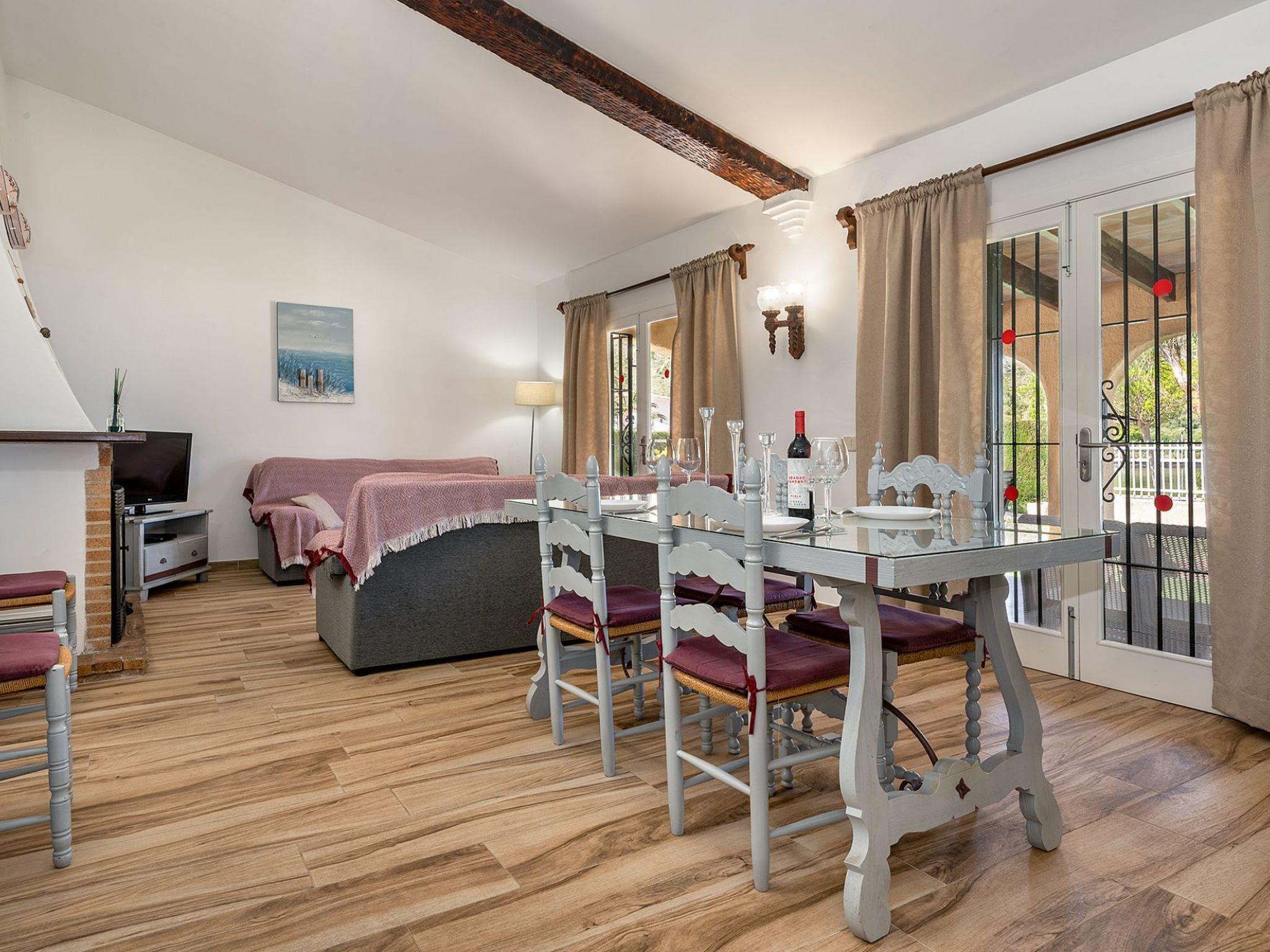 The fully equipped kitchen and spacious kitchenette make meal preparation easy and enjoyable. Enjoy casual dining or barbecue evenings on the wooden-beamed terrace, where the atmosphere captures the essence of a relaxing holiday.