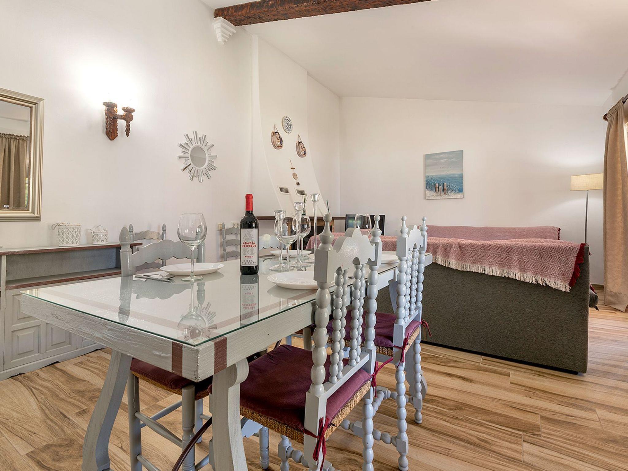 Clean and minimalist with a subtle touch of timeless charm, Villa Iris invites you into a warm earth-toned ambiance. Step inside and feel instantly drawn to relax, whether in the cozy living area or the inviting dining space that opens onto a covered terrace. Fresh air and peaceful views enhance your stay in this serene setting.