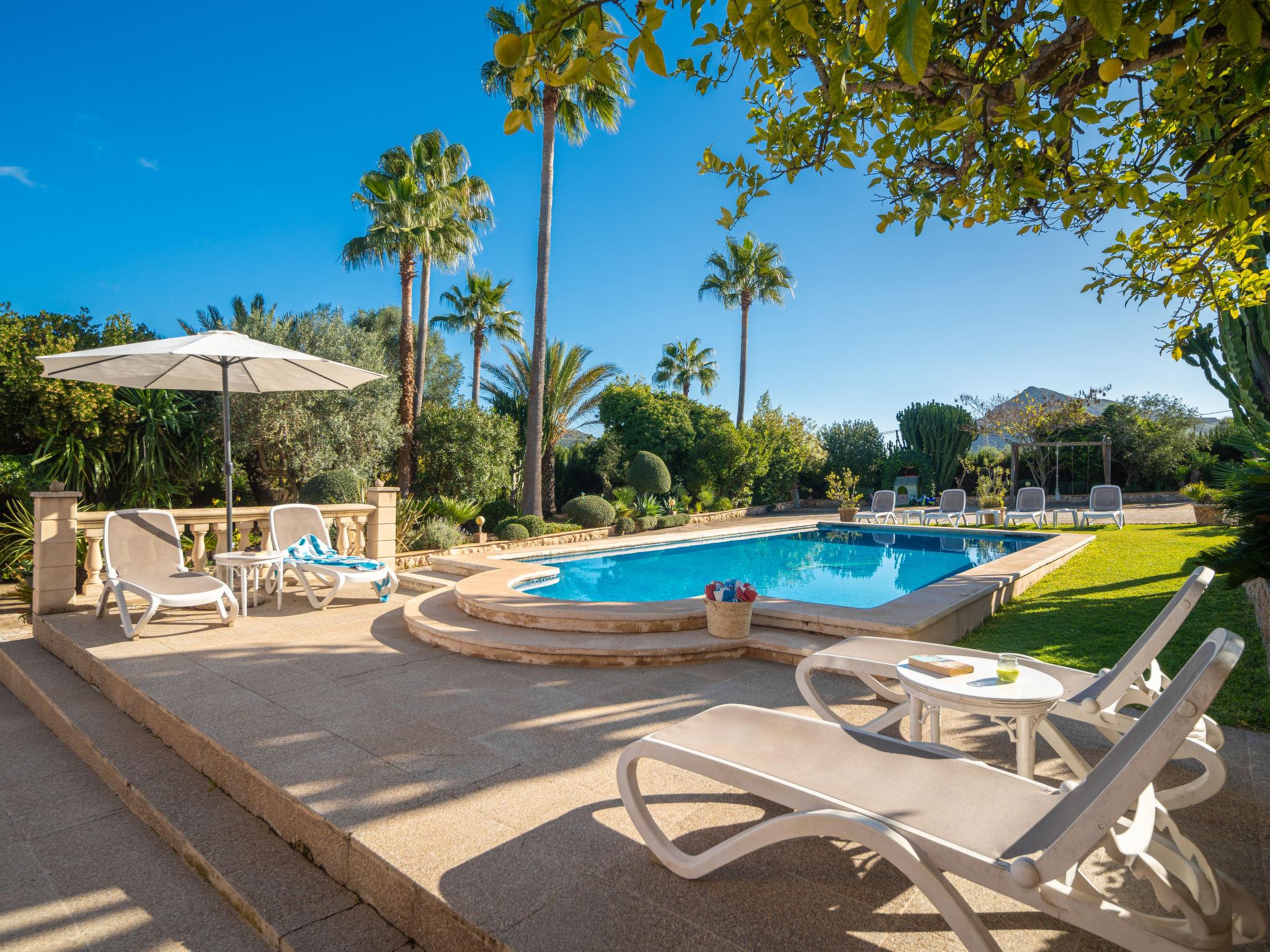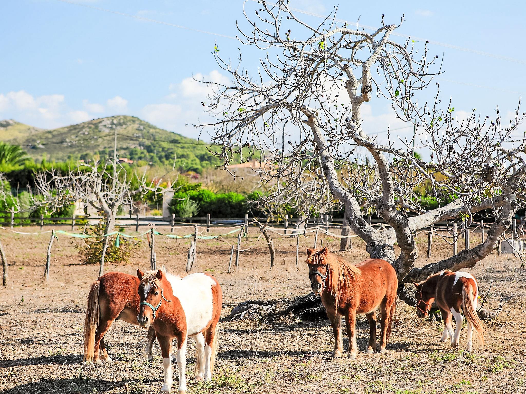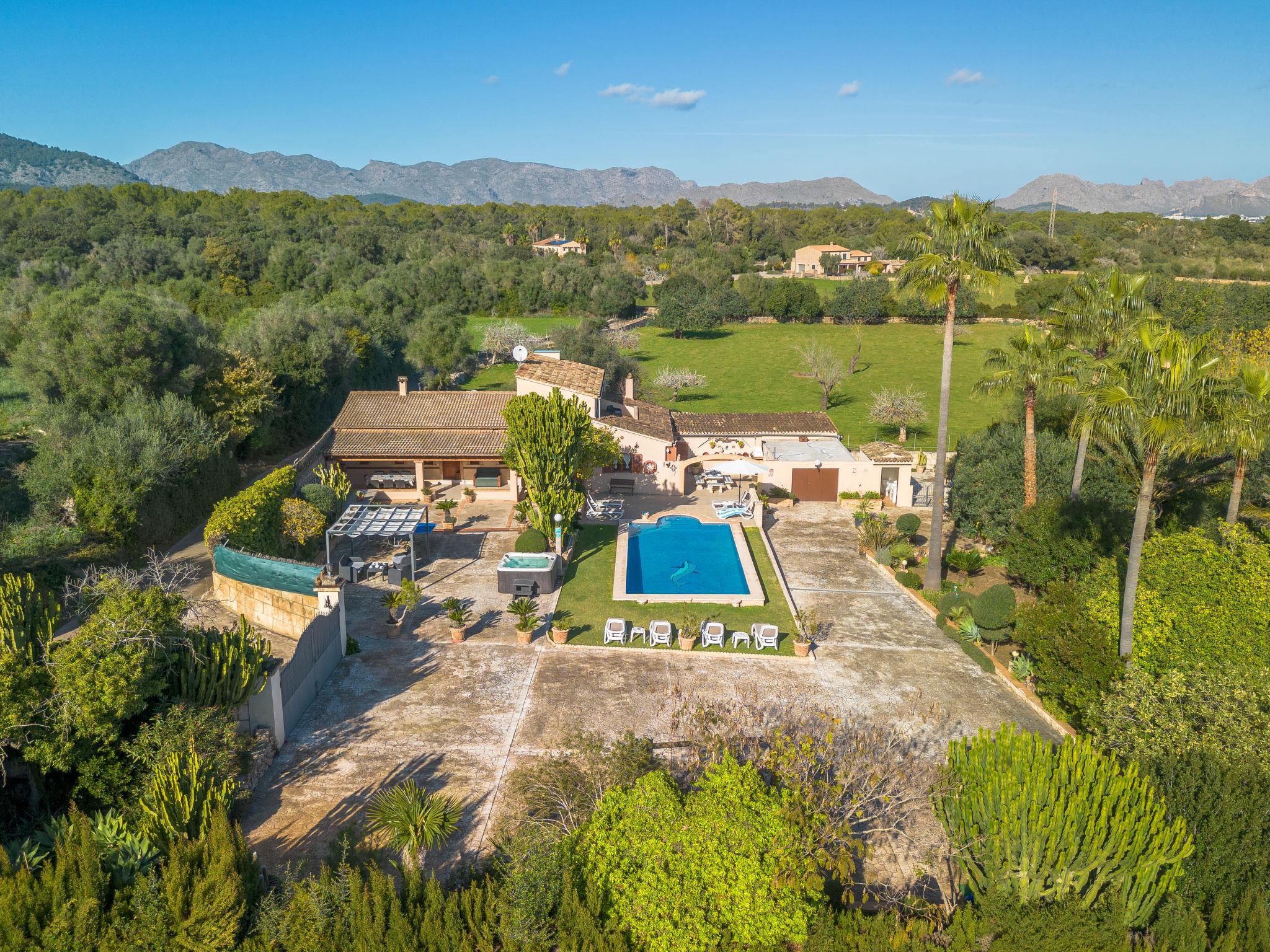 4 km from Alcúdia: Behind the house there is an enclosed area with direct access from the garden with 2 ponies. Rustic, comfortable farm estate "Ca Na Guerrera", 2 storeys, renovated in 2018, surrounded by trees and fields. Outside the resort, 4 km from the centre of Alcudia, in a quiet, sunny position, 7 km from the sea, located by a road. Private: property 13'000 m2 (fenced) with lawn and wildlife garden, orchard (fenced), beautiful garden to relax, swimming pool angular (9 x 4 m, seasonal availability: 20.Mar. - 07.Nov.). Shower/WC in the pool area, outdoor shower, hot tub, patio (500 m2), pergola (15 m2), garden furniture, barbecue (swing). In the house: internet access, WiFi, air conditioning, washing machine. Narrow motor access. Parking at the house on the premises. Shop 6 km, grocery 6 km, restaurant 6 km, bus stop "Alcudia" 6 km, railway station 10 km, sandy beach "Bahia de Alcudia" 7 km pebble beach 8 km, rocky beach 8 km. Sports harbour 6 km, marina 6 km, golf course (18 hole) 6 km, tennis 8 km, riding stable 5 km. Please note: car recommended. Suitable for families, suitable for seniors. Object suitable for 7 adults groups of teenagers on request only. Loading and unloading of baggage is possible at the holiday house.