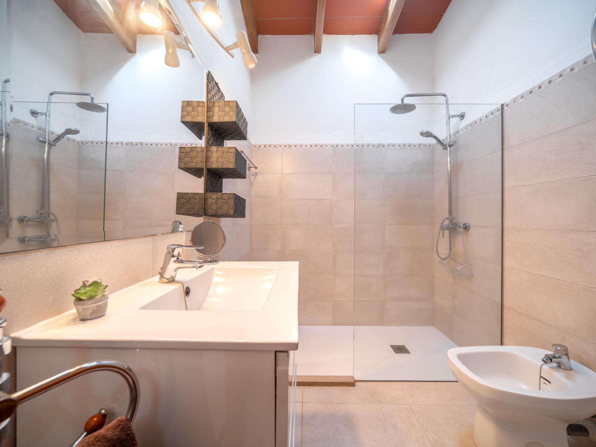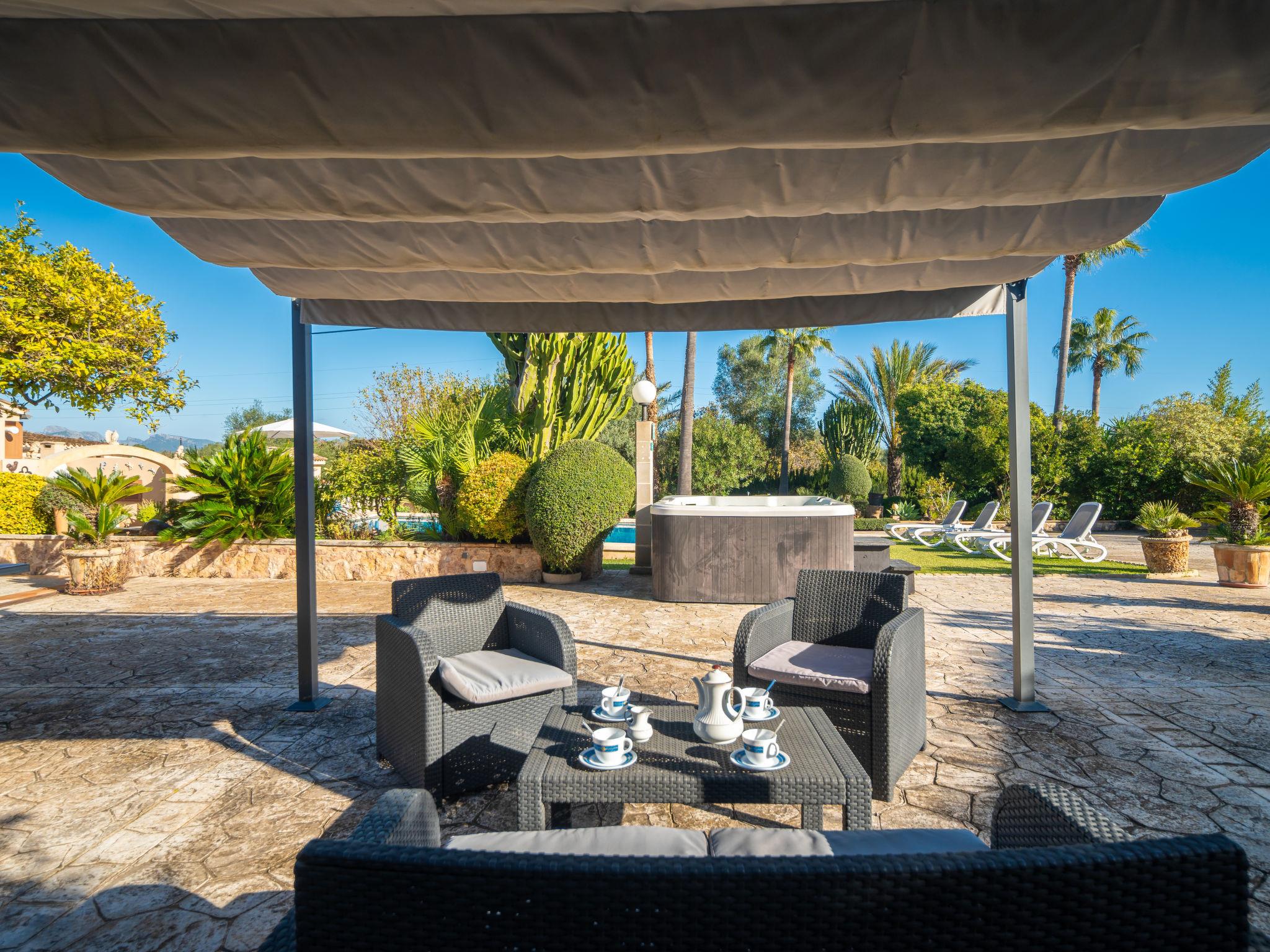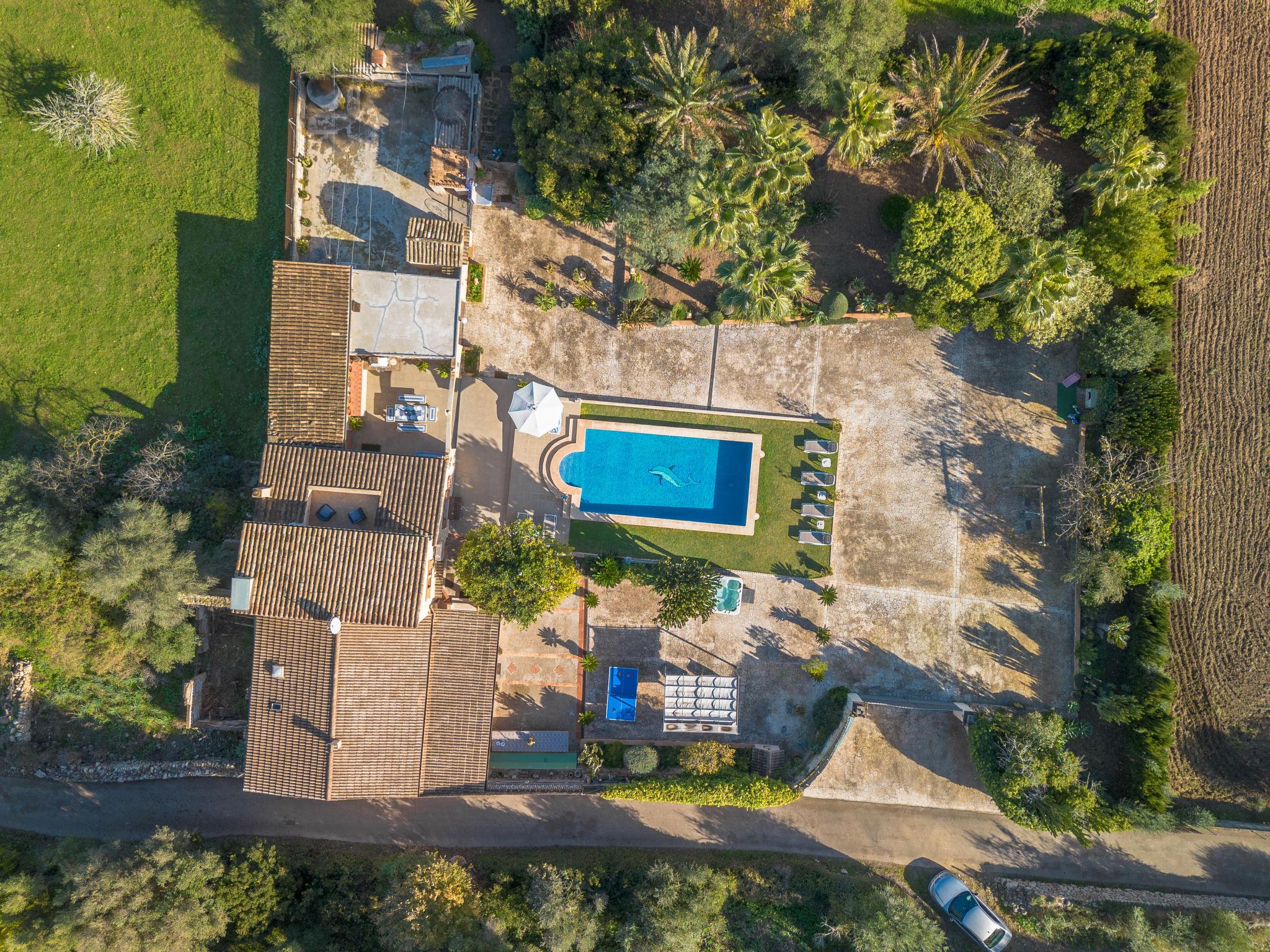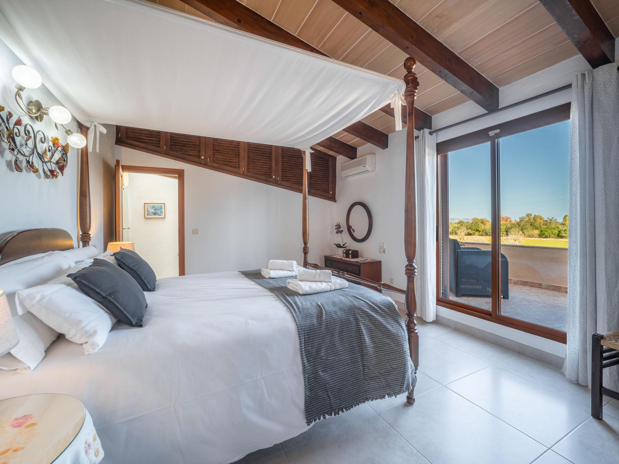 4 km from Alcúdia: Behind the house there is an enclosed area with direct access from the garden with 2 ponies. Rustic, comfortable farm estate "Ca Na Guerrera", 2 storeys, renovated in 2018, surrounded by trees and fields. Outside the resort, 4 km from the centre of Alcudia, in a quiet, sunny position, 7 km from the sea, located by a road. Private: property 13'000 m2 (fenced) with lawn and wildlife garden, orchard (fenced), beautiful garden to relax, swimming pool angular (9 x 4 m, seasonal availability: 20.Mar. - 07.Nov.). Shower/WC in the pool area, outdoor shower, hot tub, patio (500 m2), pergola (15 m2), garden furniture, barbecue (swing). In the house: internet access, WiFi, air conditioning, washing machine. Narrow motor access. Parking at the house on the premises. Shop 6 km, grocery 6 km, restaurant 6 km, bus stop "Alcudia" 6 km, railway station 10 km, sandy beach "Bahia de Alcudia" 7 km pebble beach 8 km, rocky beach 8 km. Sports harbour 6 km, marina 6 km, golf course (18 hole) 6 km, tennis 8 km, riding stable 5 km. Please note: car recommended. Suitable for families, suitable for seniors. Object suitable for 7 adults groups of teenagers on request only. Loading and unloading of baggage is possible at the holiday house.